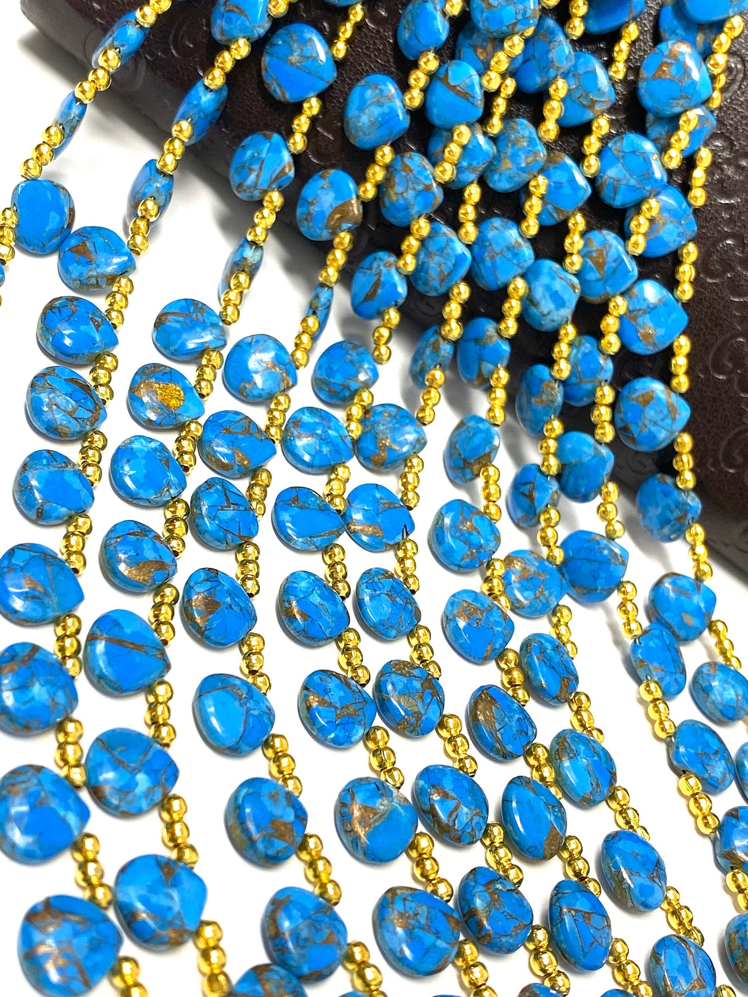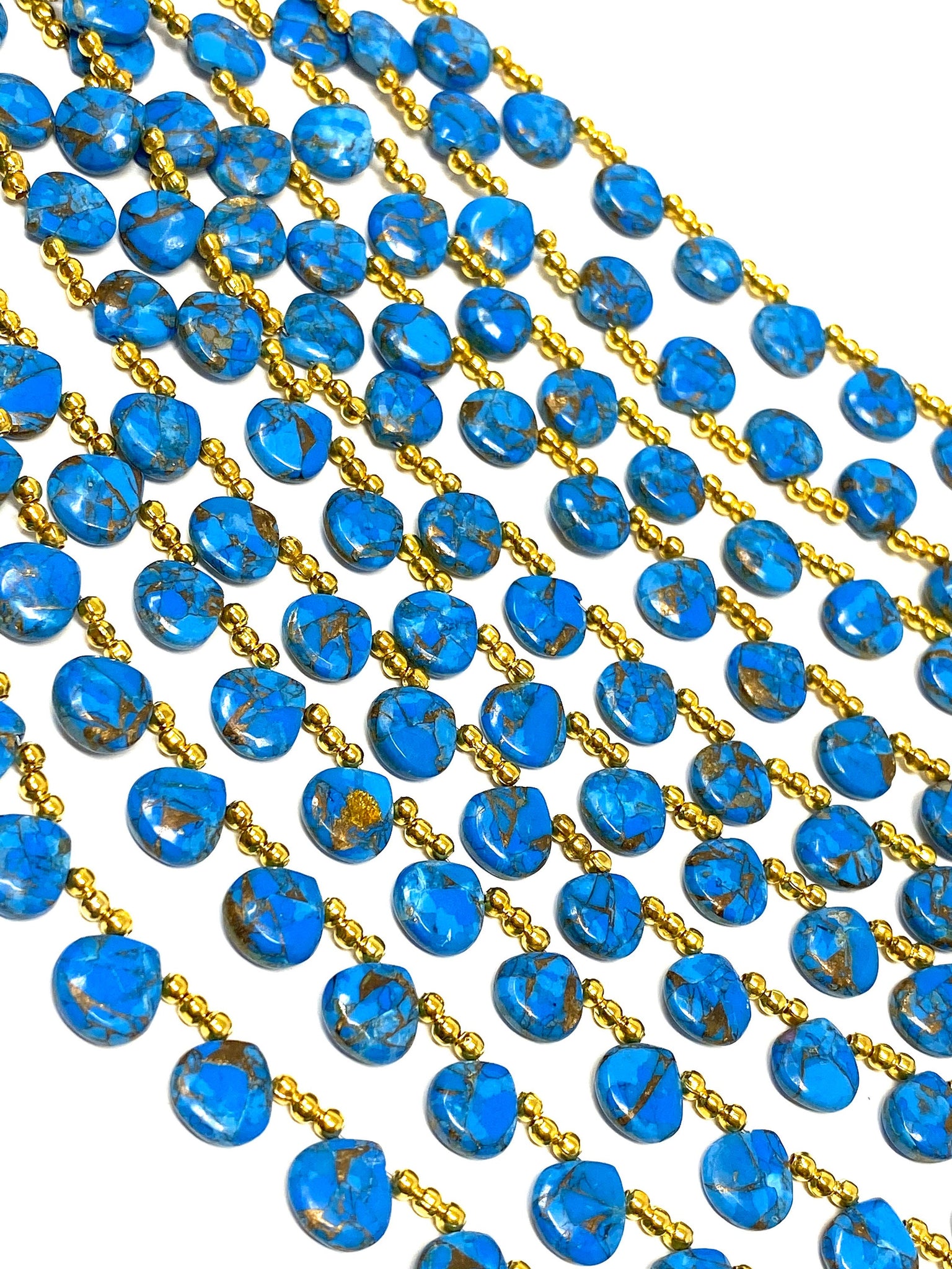 These Beautiful AAA Grade Smooth Mohave Blue Copper Turquoise Beads are great for making layered Necklace or can be used for bracelets or Beaded Earrings. These can be used in multiple ways to bring out the creativity of the maker.