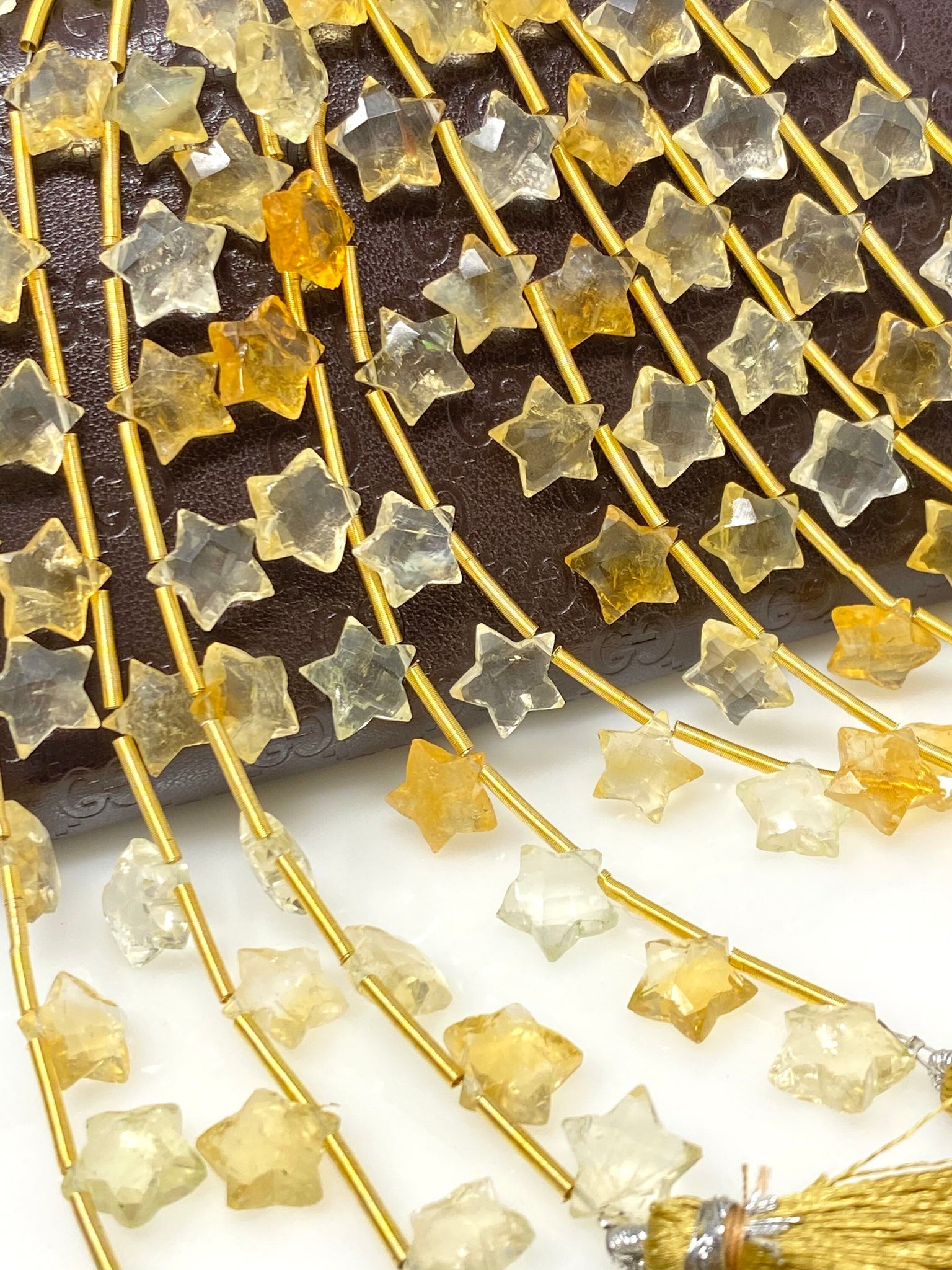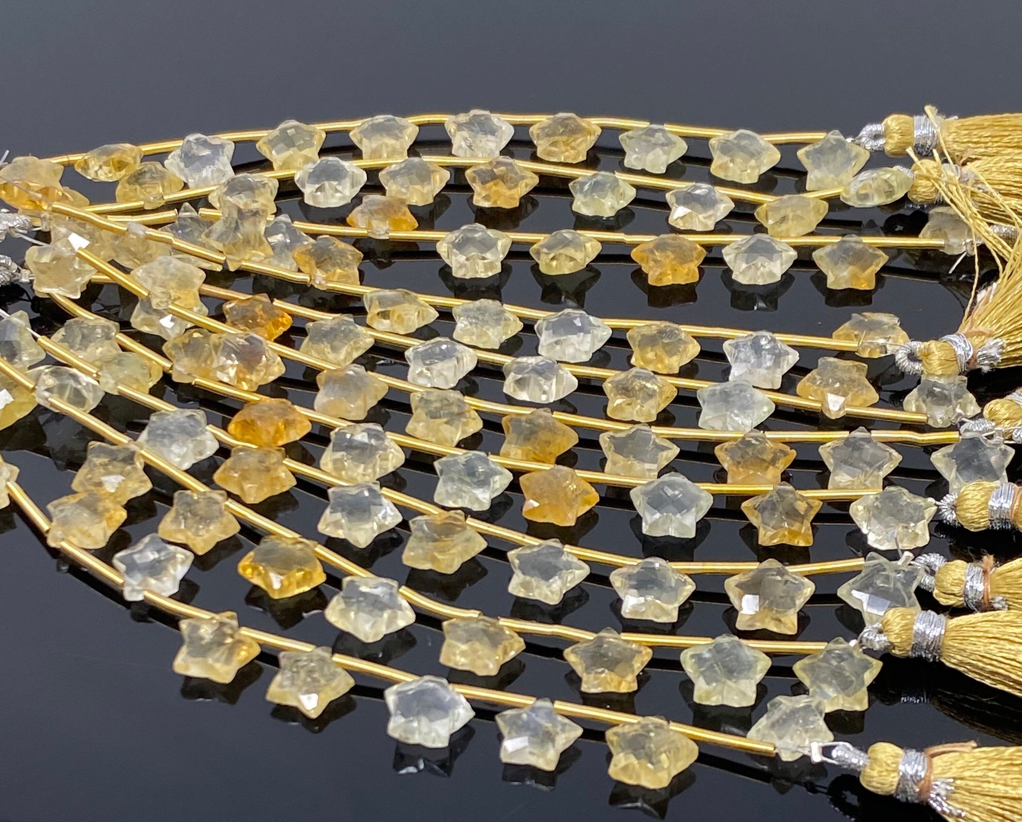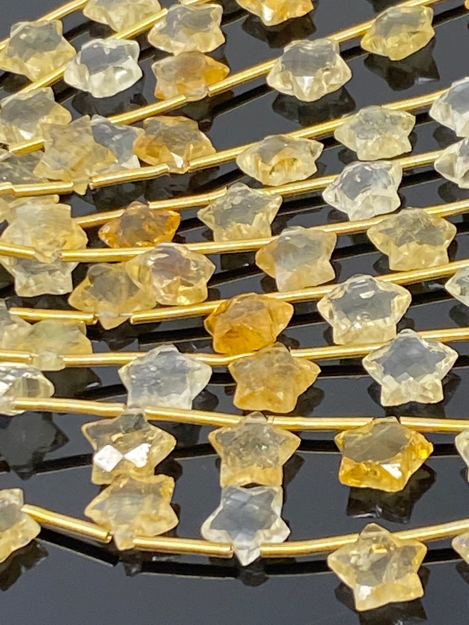 Citrine Gemstone Beads, Citrine Star Beads, Jewelry Supplies, Wholesale Bulk Beads, 10.5mm x 10.5mm , 5” Strand/ 10 Beads
