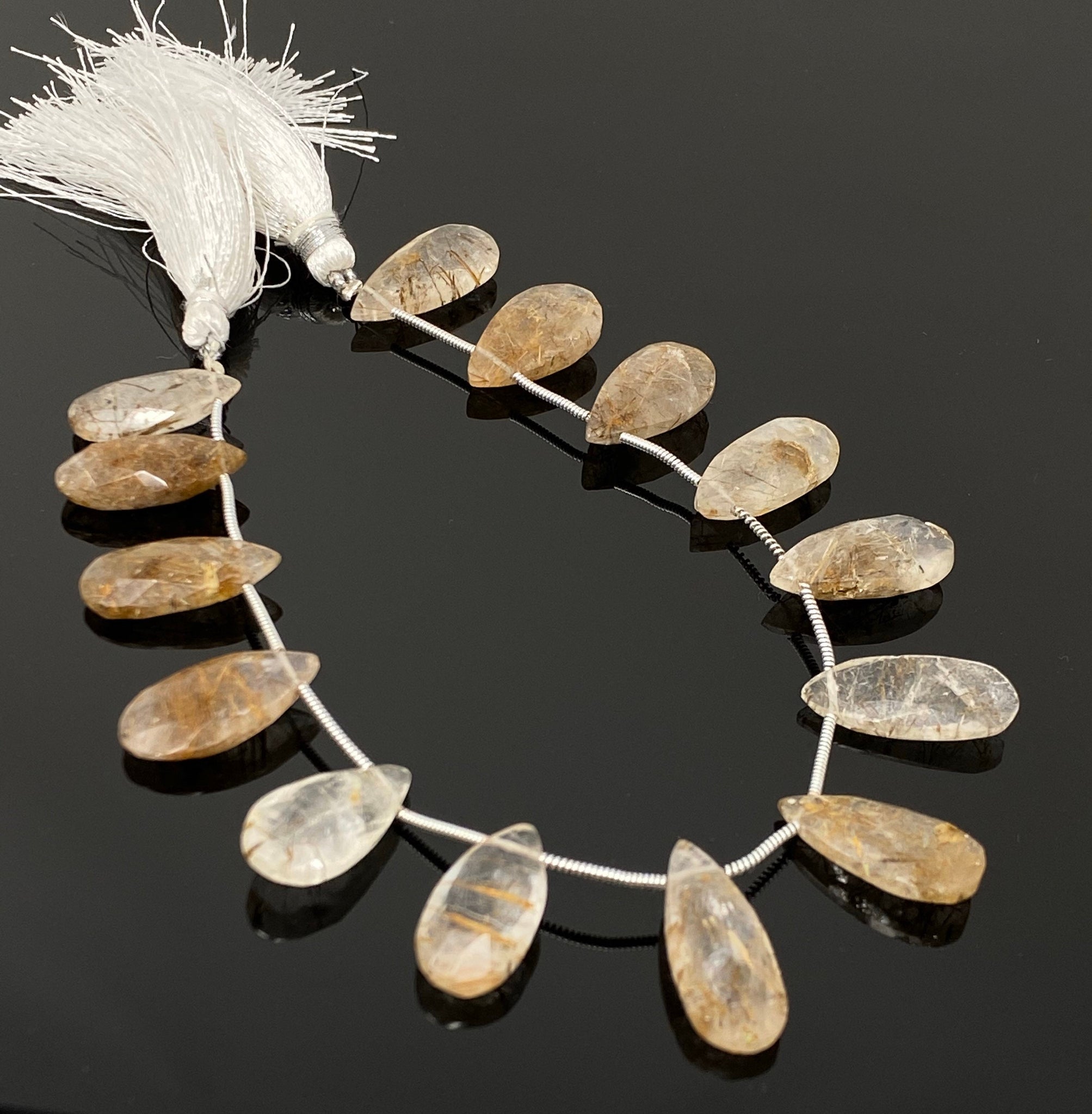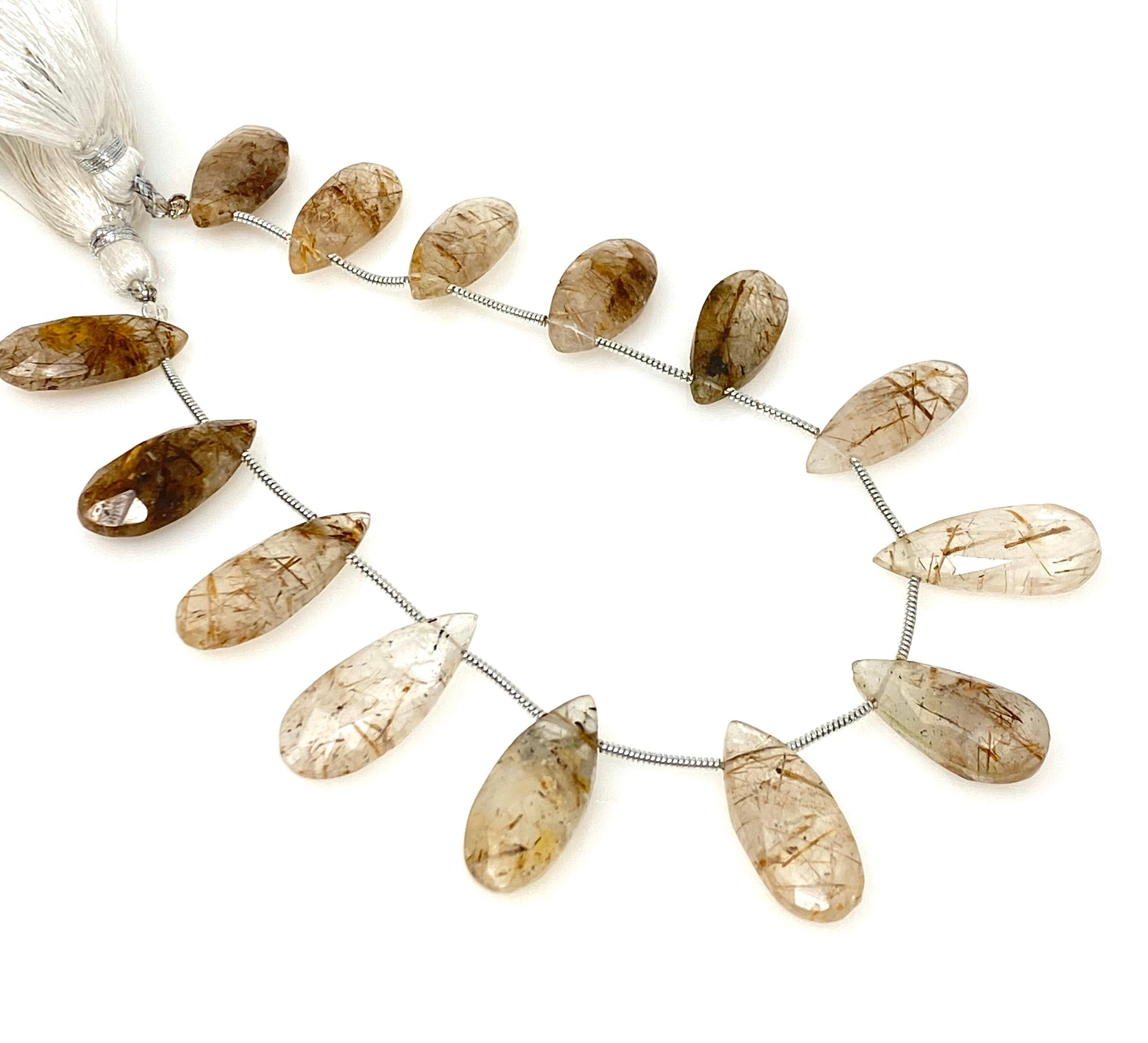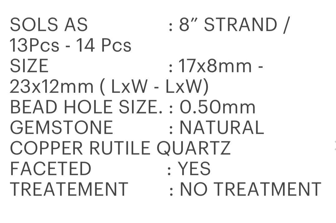 Copper Rutile Gemstone Beads, Copper Rutile Faceted Pear Briolette Beads,Jewelry Supplies Bulk Beads, 17- 23mm , 8” Strand/13-14 Pcs