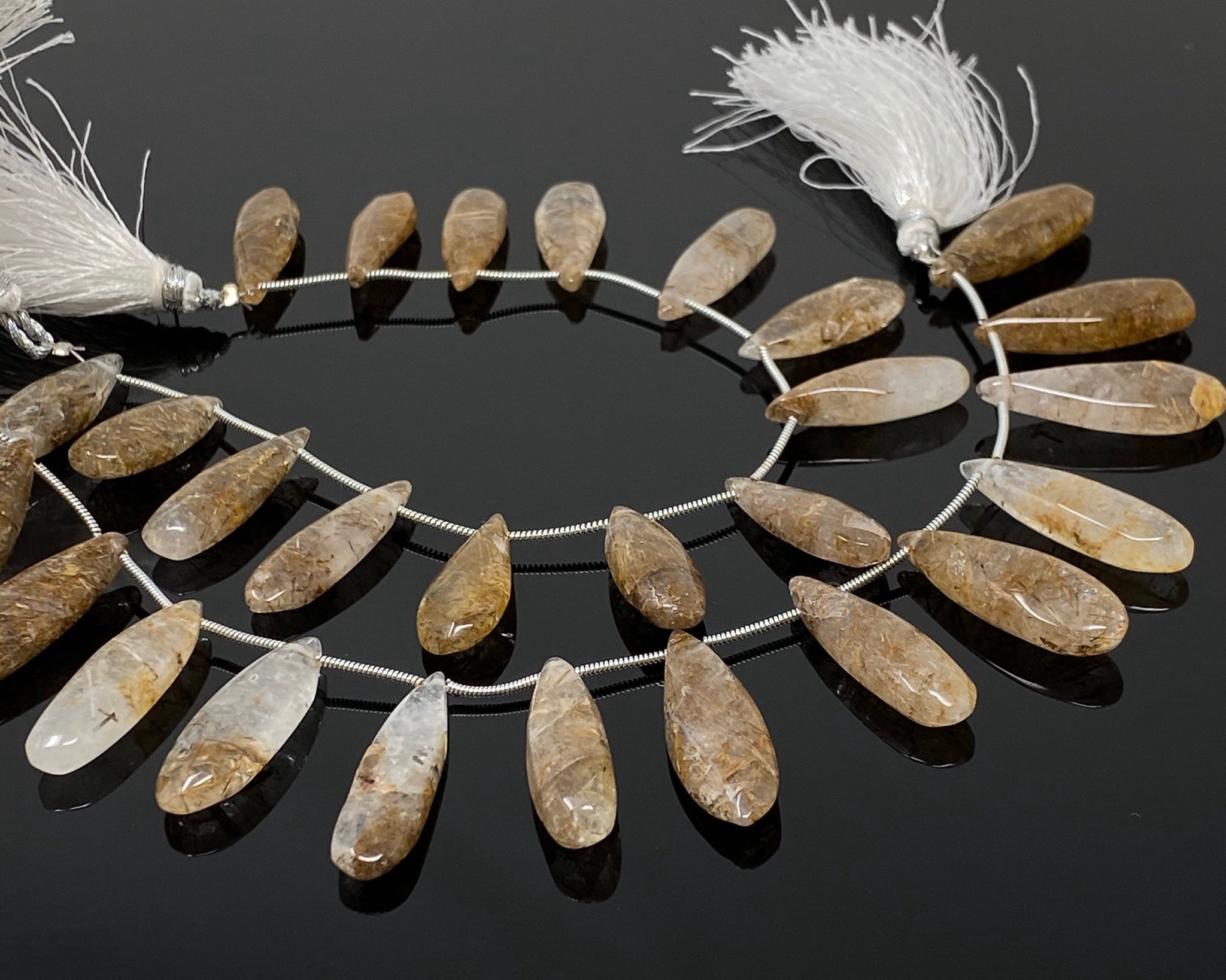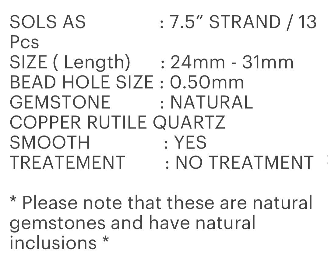 Copper Rutile Gemstone Beads, Jewelry Supplies, Wholesale Bulk Beads, 24mm- 31mm, 7.5” Strand/13 Pcs