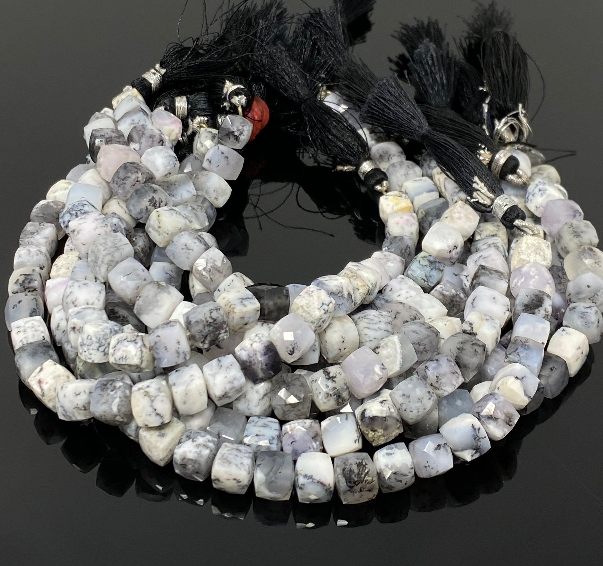 Dendrite Opal Gemstone Beads, Dendrite 3D Cube Box Beads, Bulk Wholesale Beads, 7mm - 8mm, 8” Strand