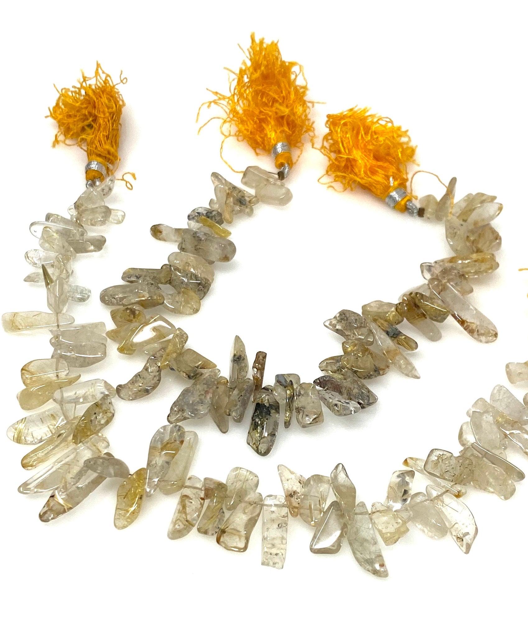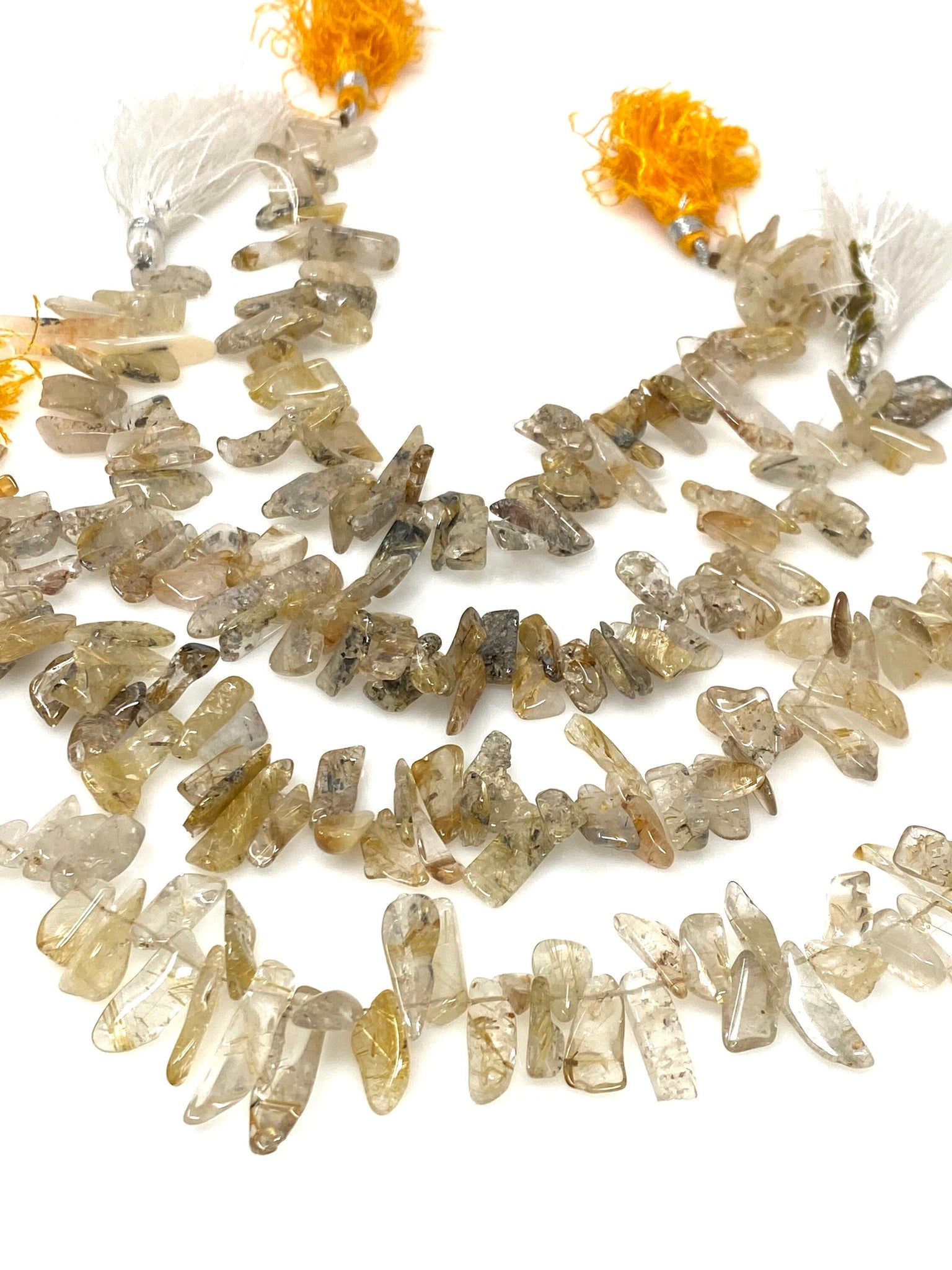 Golden Yellow Rutile Beads, Rough Polished Gemstone Beads, Jewelry Supplies, Rutilated Quartz Beads, Wholesale Beads, Bulk Beads, 8" Strand