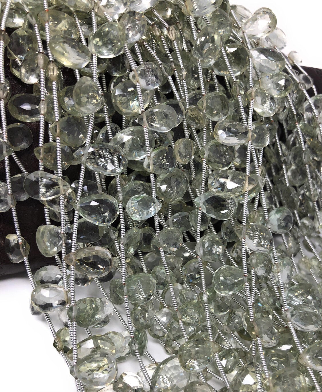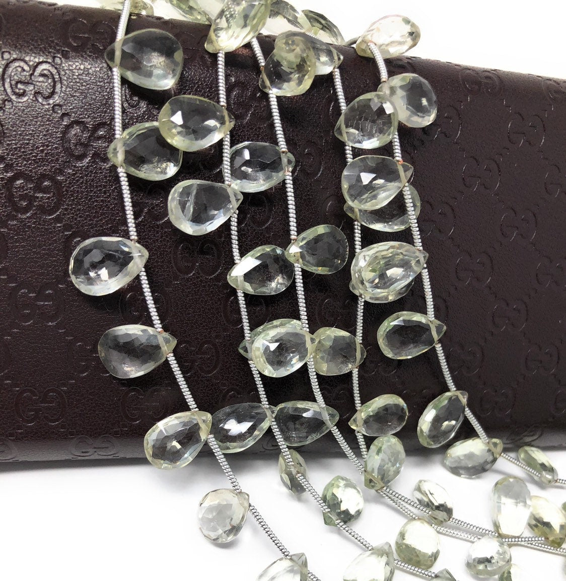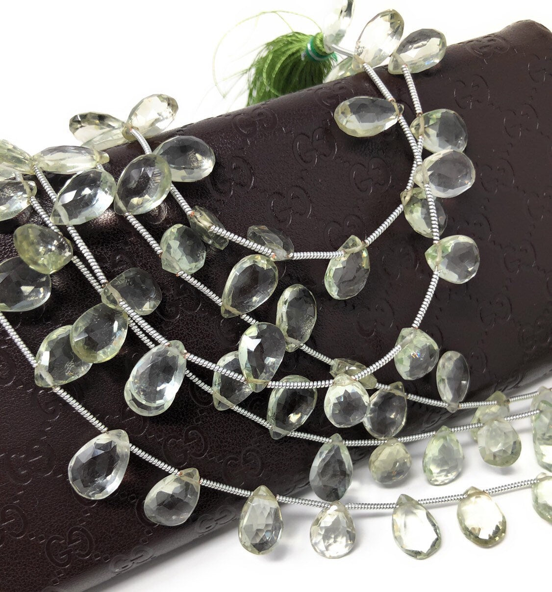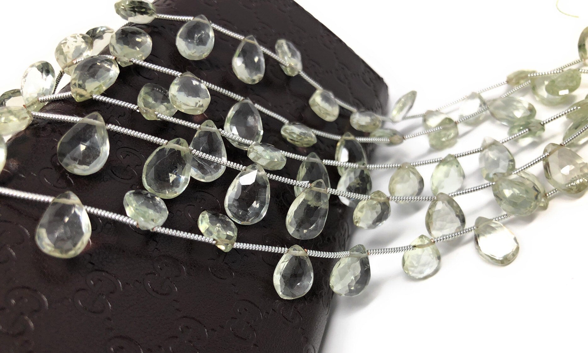 Green Amethyst Gemstone Beads, Prasiolite Beads, Natural Green Amethyst Briolette Beads, Bulk Wholesale Gemstone Beads, 8" Strand