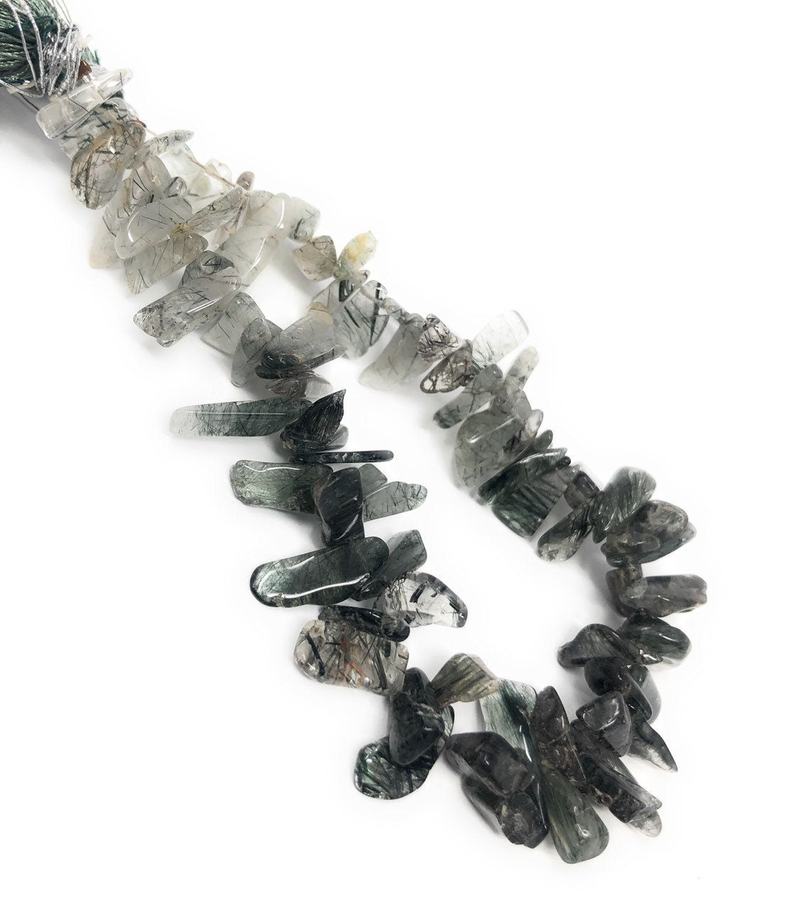 Green Rutile Beads - Rough Polished, Gemstone Beads, Jewelry Supplies for Jewelry Making, Wholesale Beads, Bulk Beads, 8" Strand