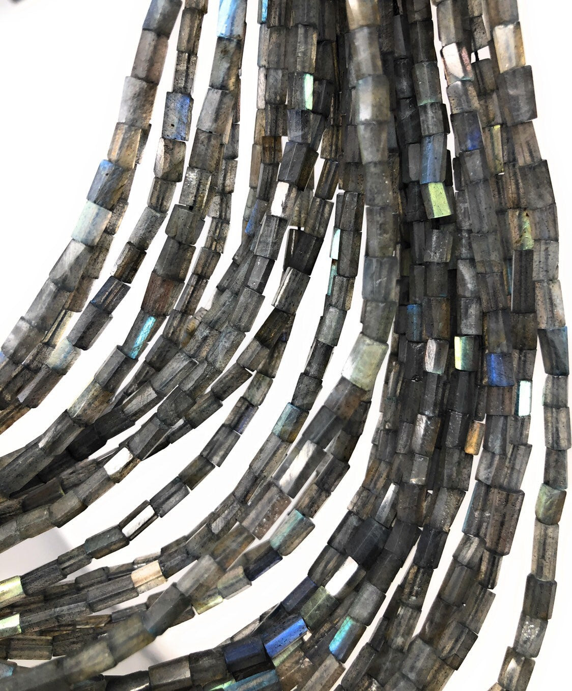 Natural Labradorite Gemstone Faceted Tube Beads Blue Flash Beading Supplies for Jewelry Making at Wholesale Price.