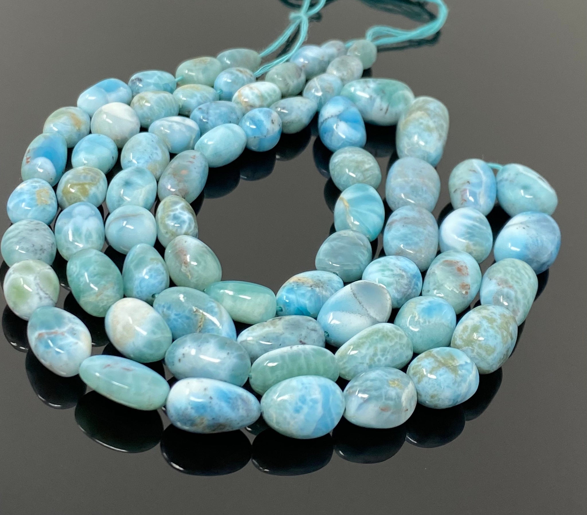 These Beautiful 100% Natural, Genuine Polished Smooth AAA Grade Smooth Nugget Blue Larimar Beads are great for making layered Necklace or can be used for bracelets or Beaded Earrings. These can be used in multiple ways to bring out the creativity of the maker.
