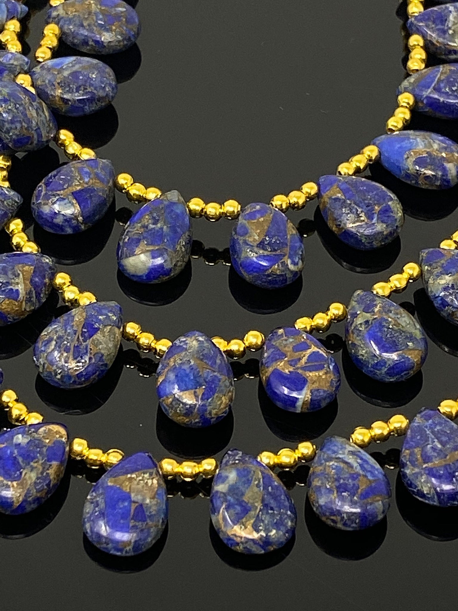 These Beautiful AAA Grade Smooth Mohave Lapis Lazuli Copper Beads are great for making layered Necklace or can be used for bracelets or Beaded Earrings. These can be used in multiple ways to bring out the creativity of the maker.