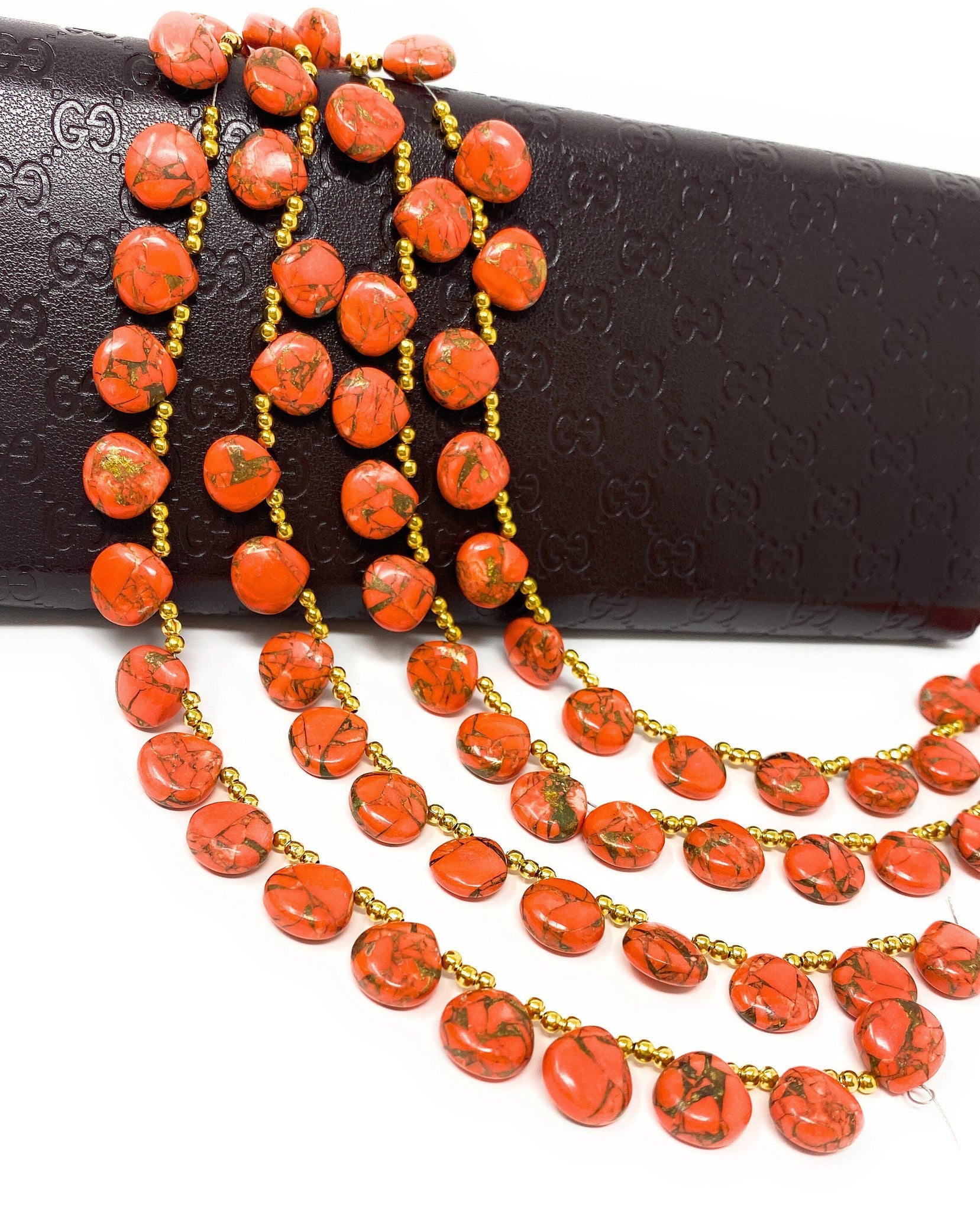 Natural Mohave Orange Copper Turquoise Gemstone Beads Jewelry Supplies for DIY Jewelry Making at Wholesale Price.