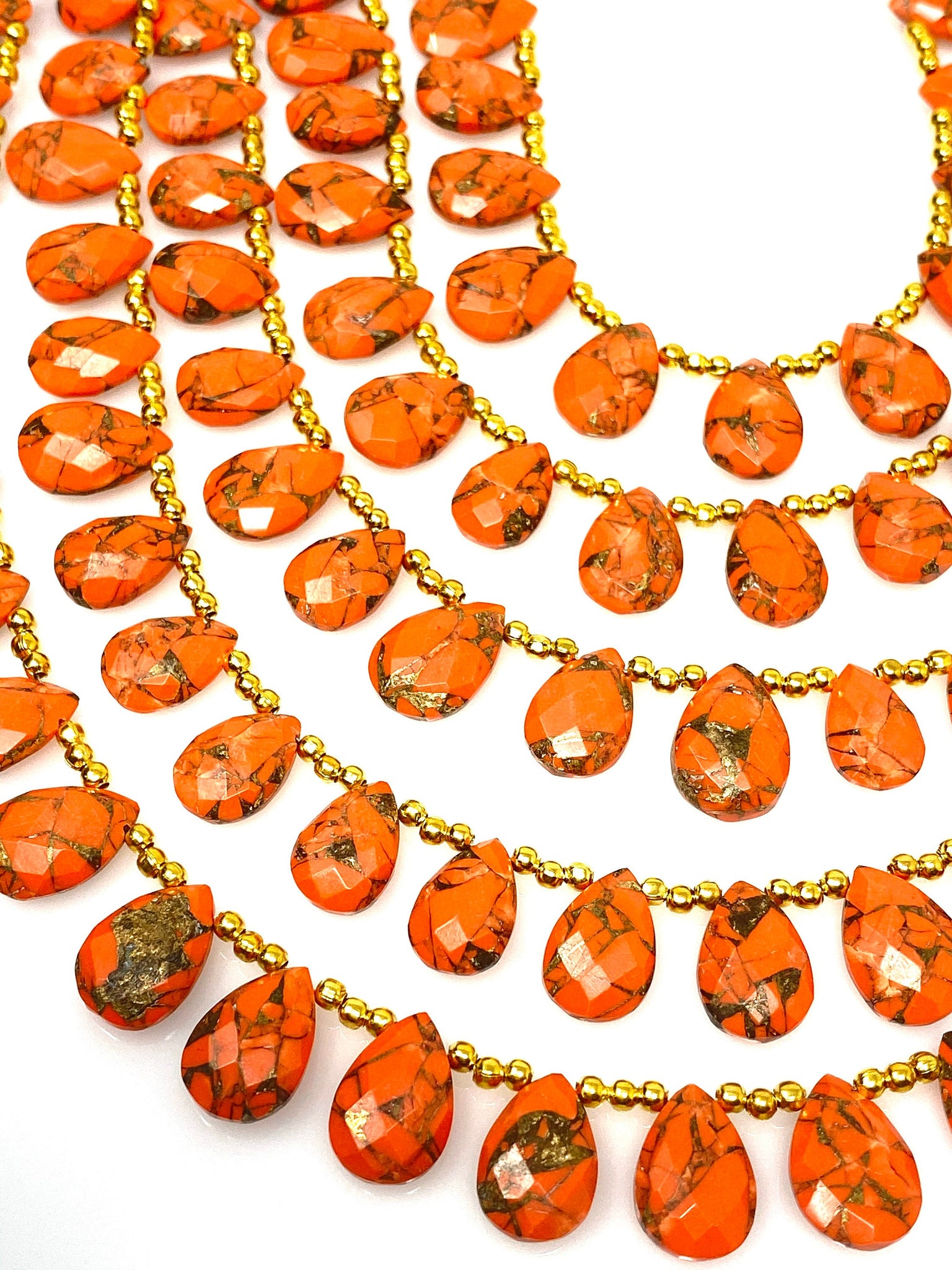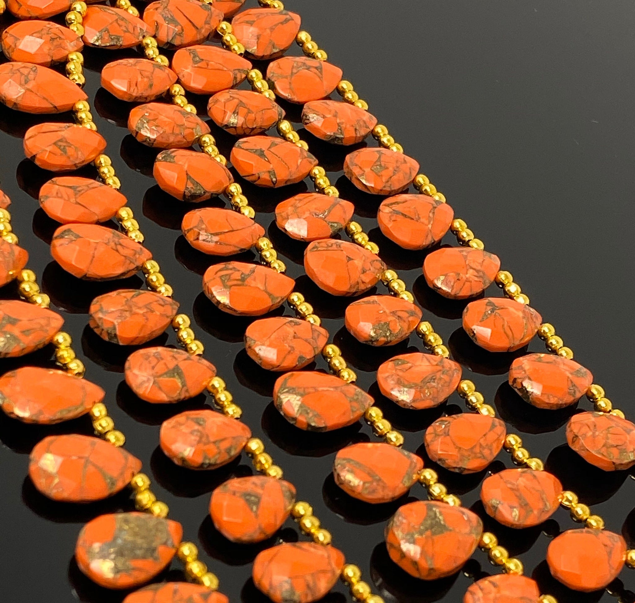 These Beautiful AAA Grade Faceted Orange Mohave Copper Turquoise Beads are great for making layered Necklace or can be used for bracelets or Beaded Earrings. These can be used in multiple ways to bring out the creativity of the maker.