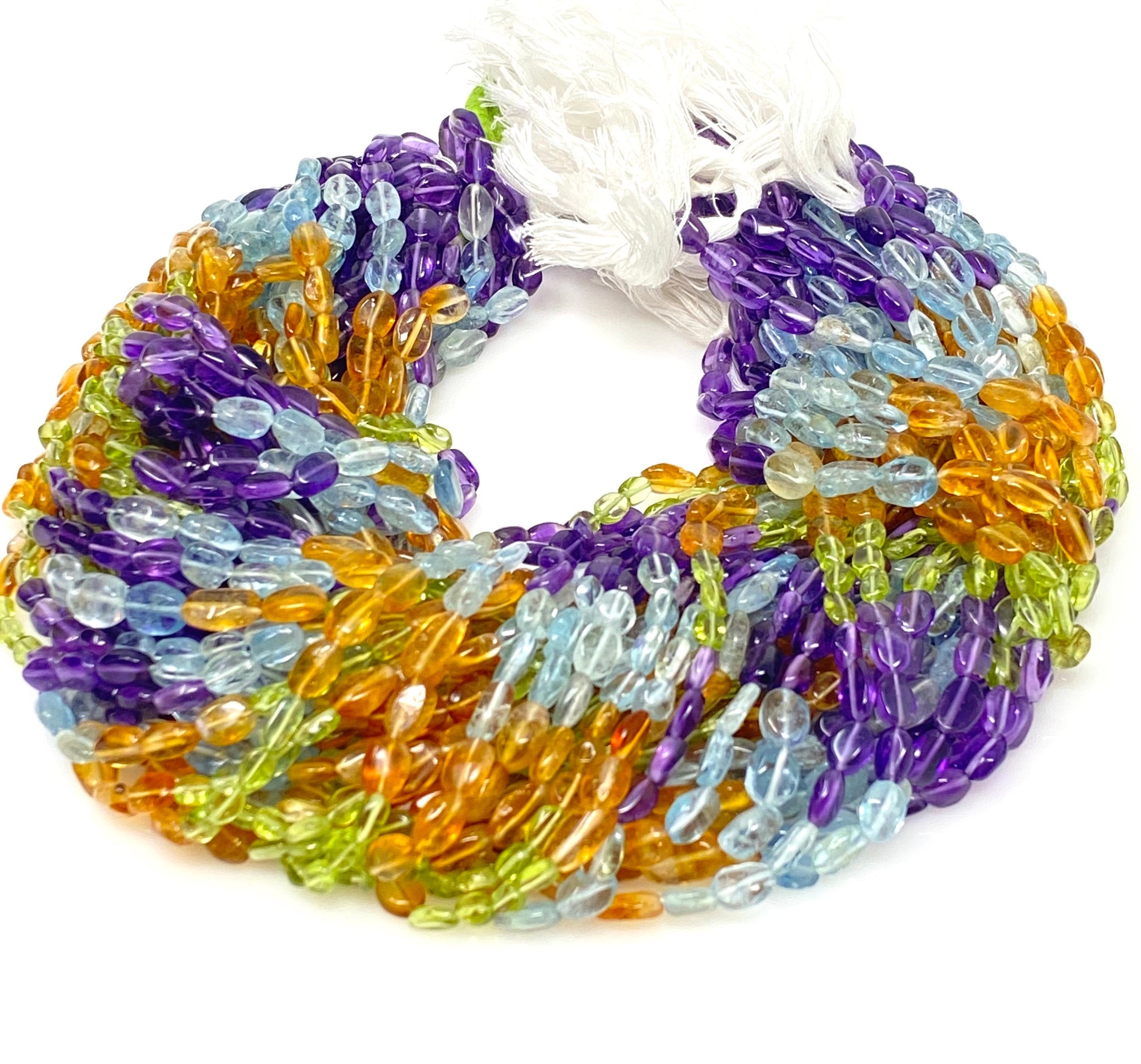 Multi Gemstone Oval Beads, Beads, Natural Gemstone Beads, Jewelry Supplies, Wholesale Bulk Beads , 13” Strand
