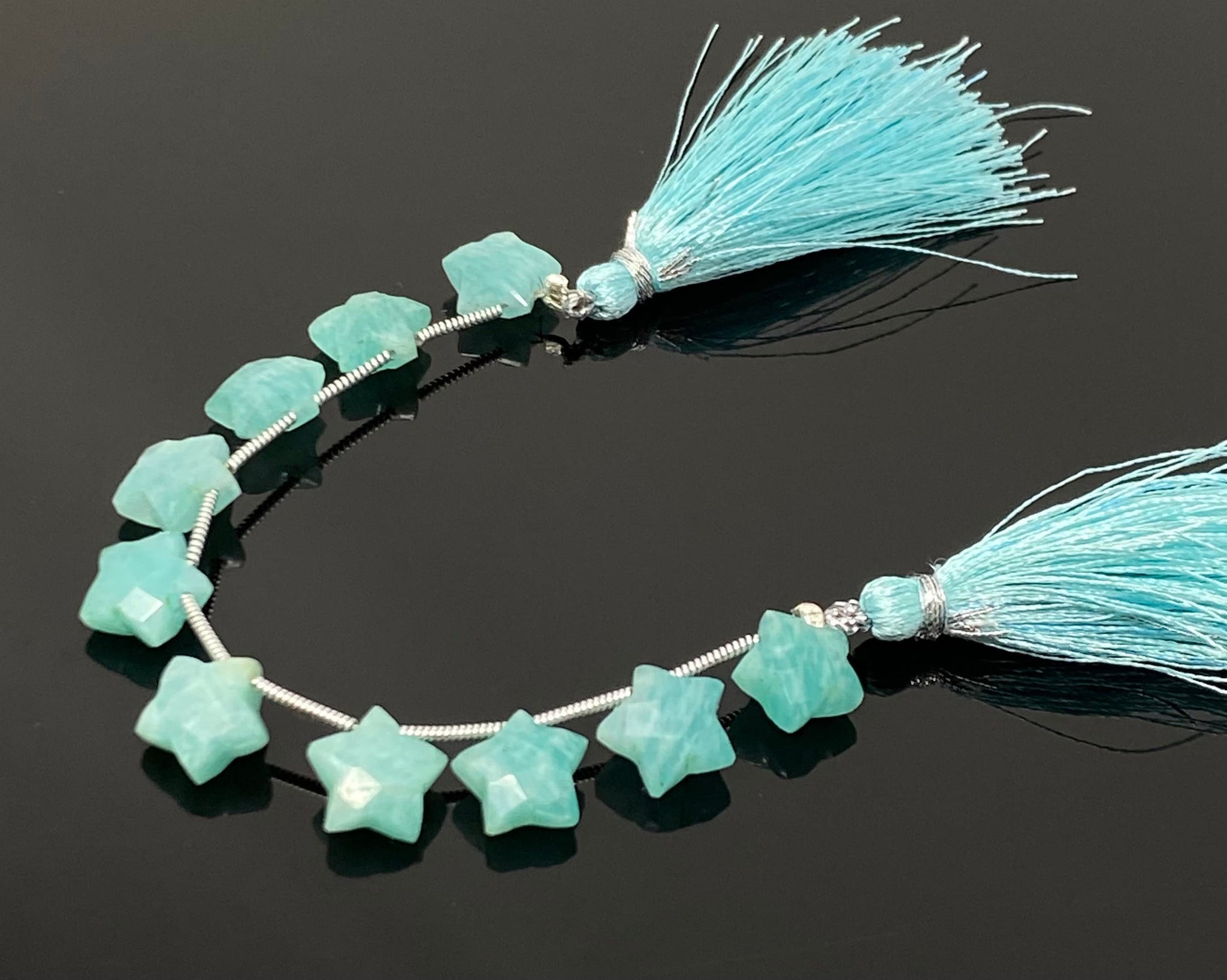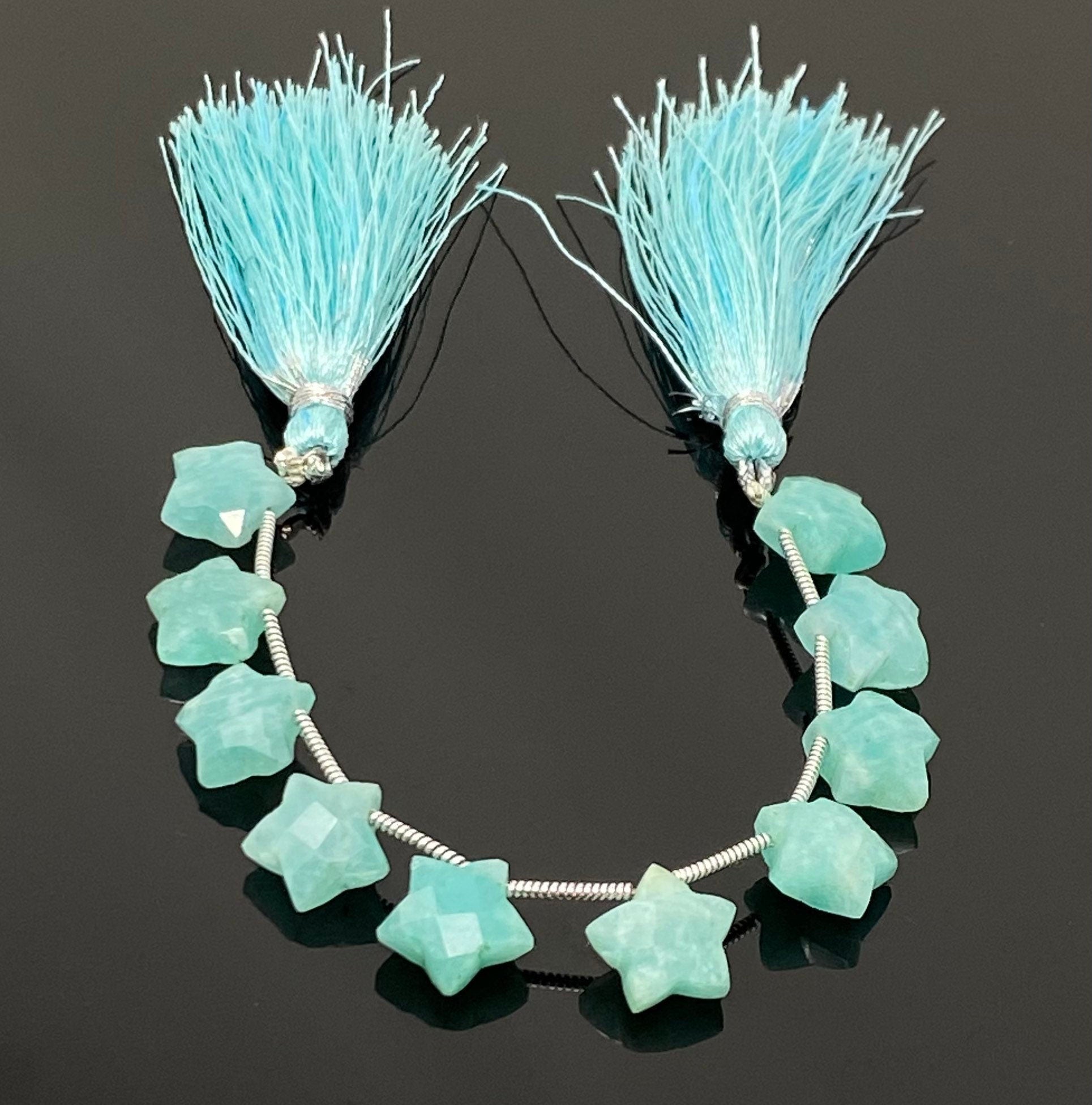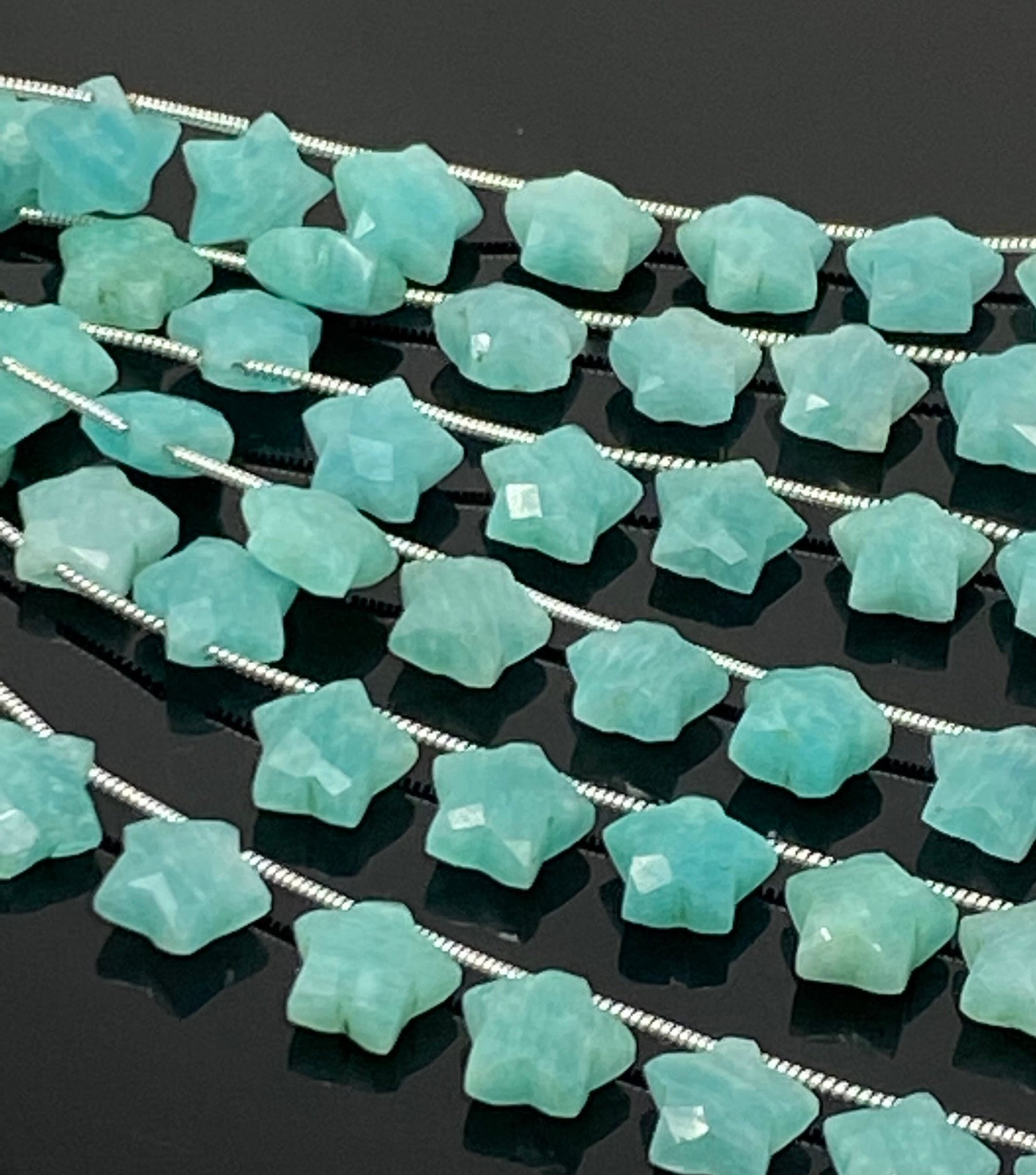 Natural Amazonite Gemstone Beads, Hand Carved Star Beads, Peruvian Amazonite Beads, Wholesale Bulk Beads, 5” Strand/ 10 Beads, 10.5mm