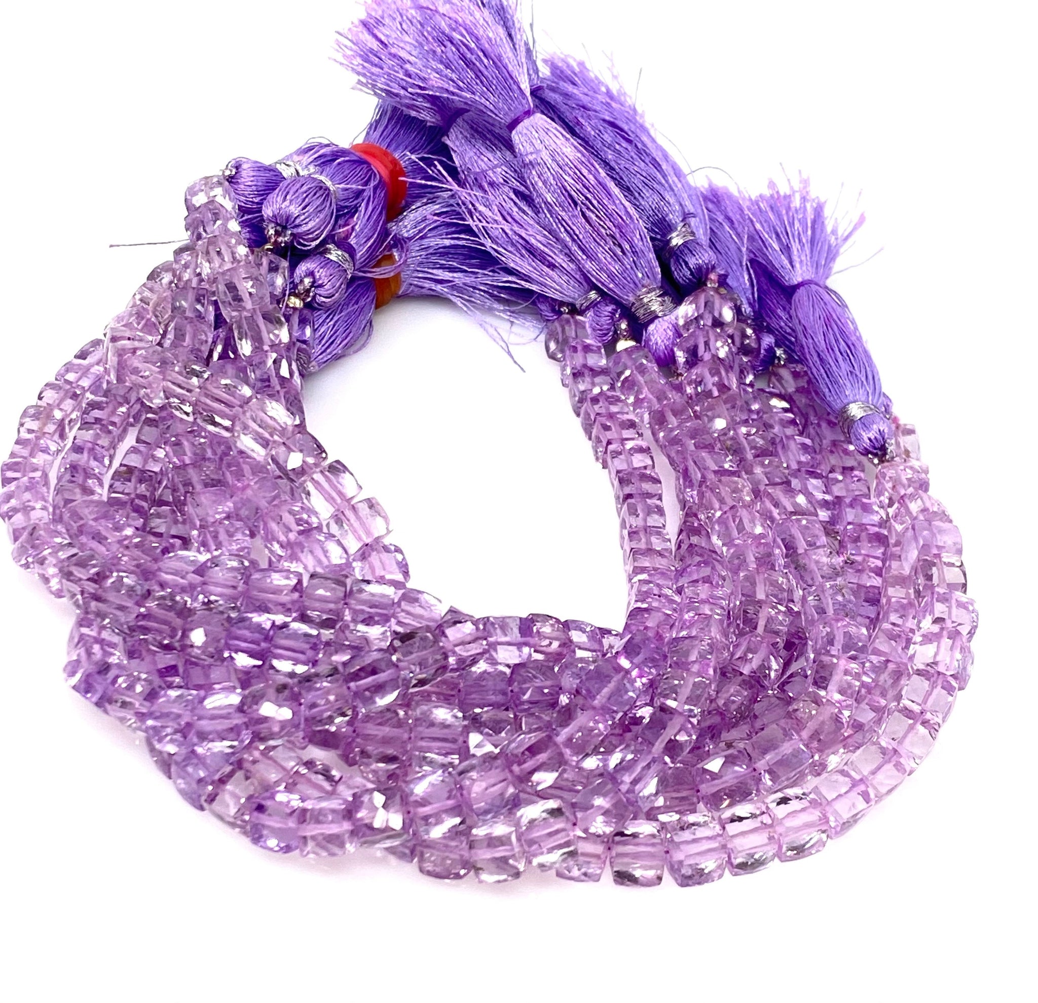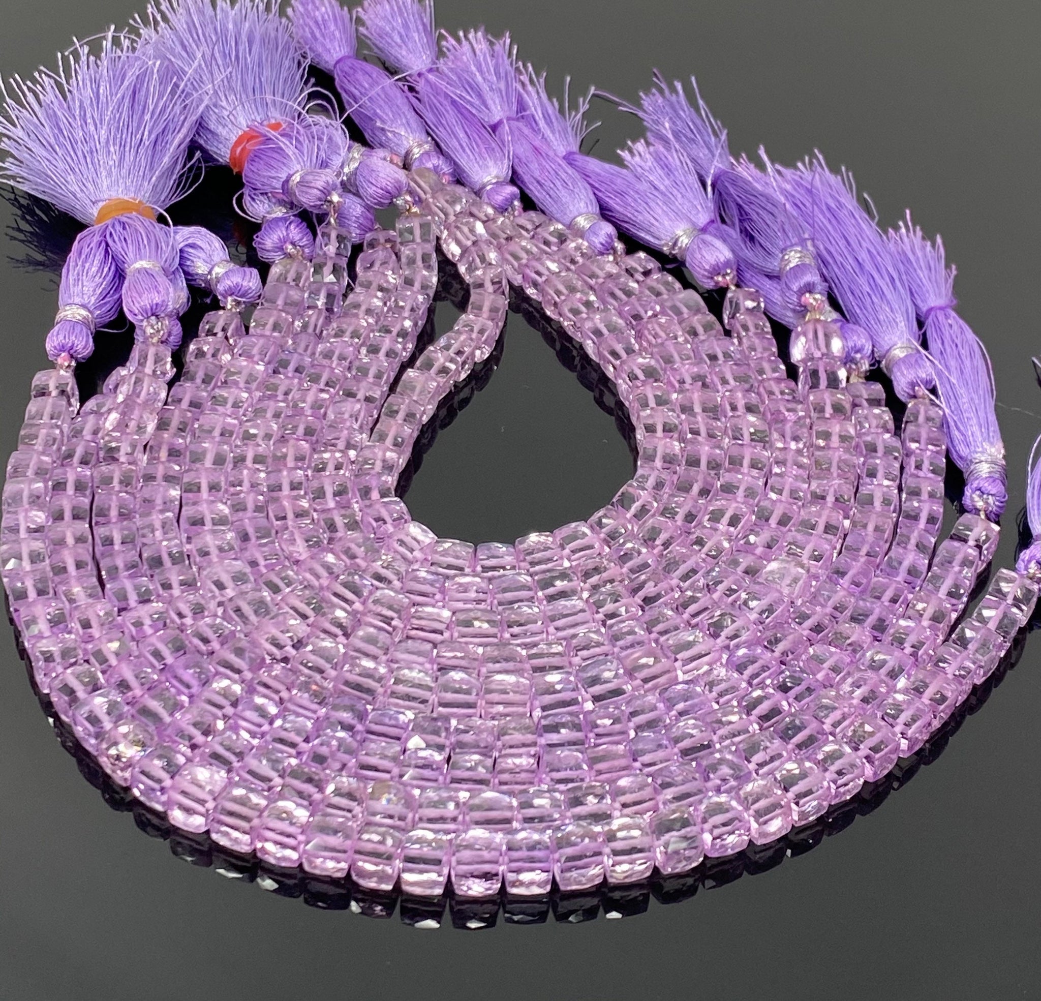 Natural Amethyst Gemstone Beads, Amethyst 3D Cube Box Beads, Jewelry Supplies, Wholesale Bulk Gemstone Beads, 8" Strand