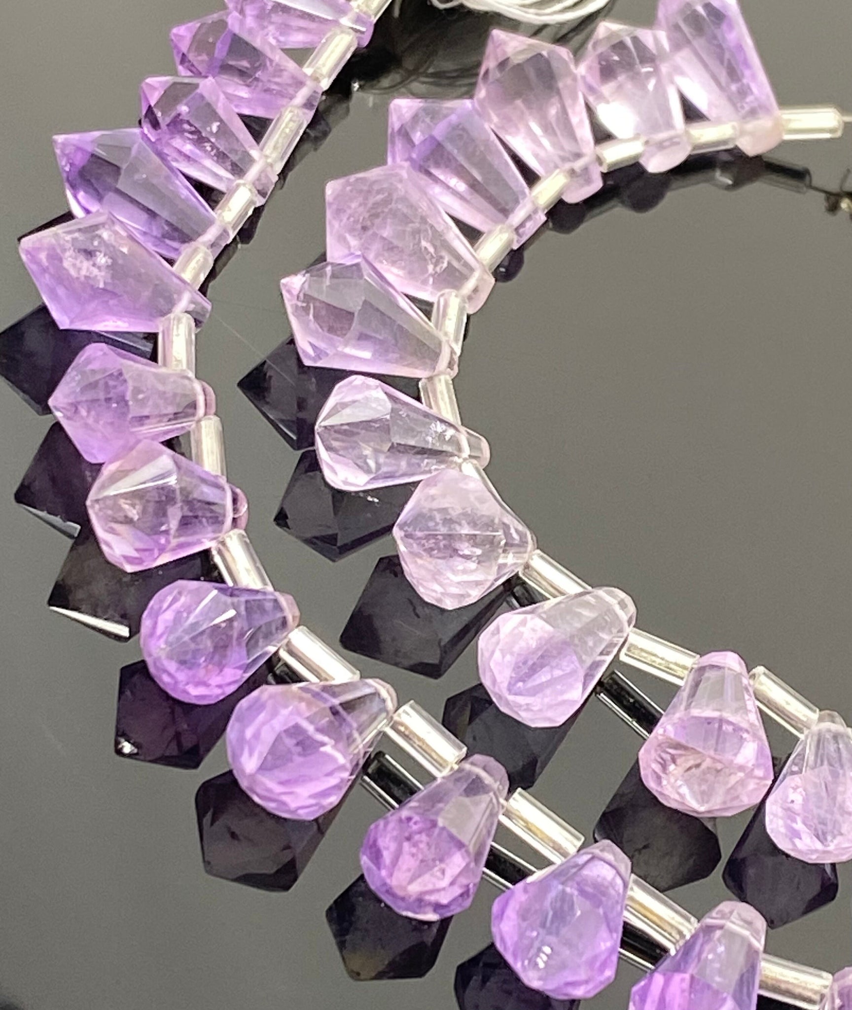 Natural Amethyst Gemstone Faceted Drop Briolette Beads, Jewelry Supplies for Jewelry Making, Bulk Wholesale Beads, 17 - 18 Pcs