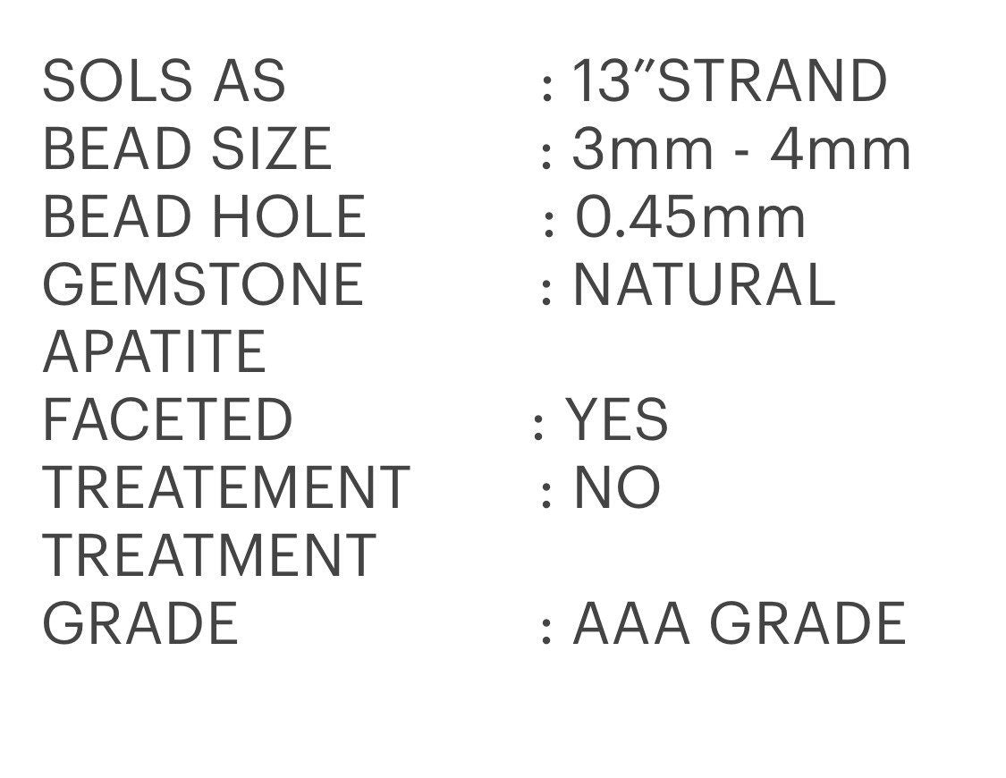 Natural Apatite Gemstone Beads, Genuine Gemstone Wholesale Jewelry Supplies for Jewelry Making, AAA Quality, 3-4mm, 13" Strand