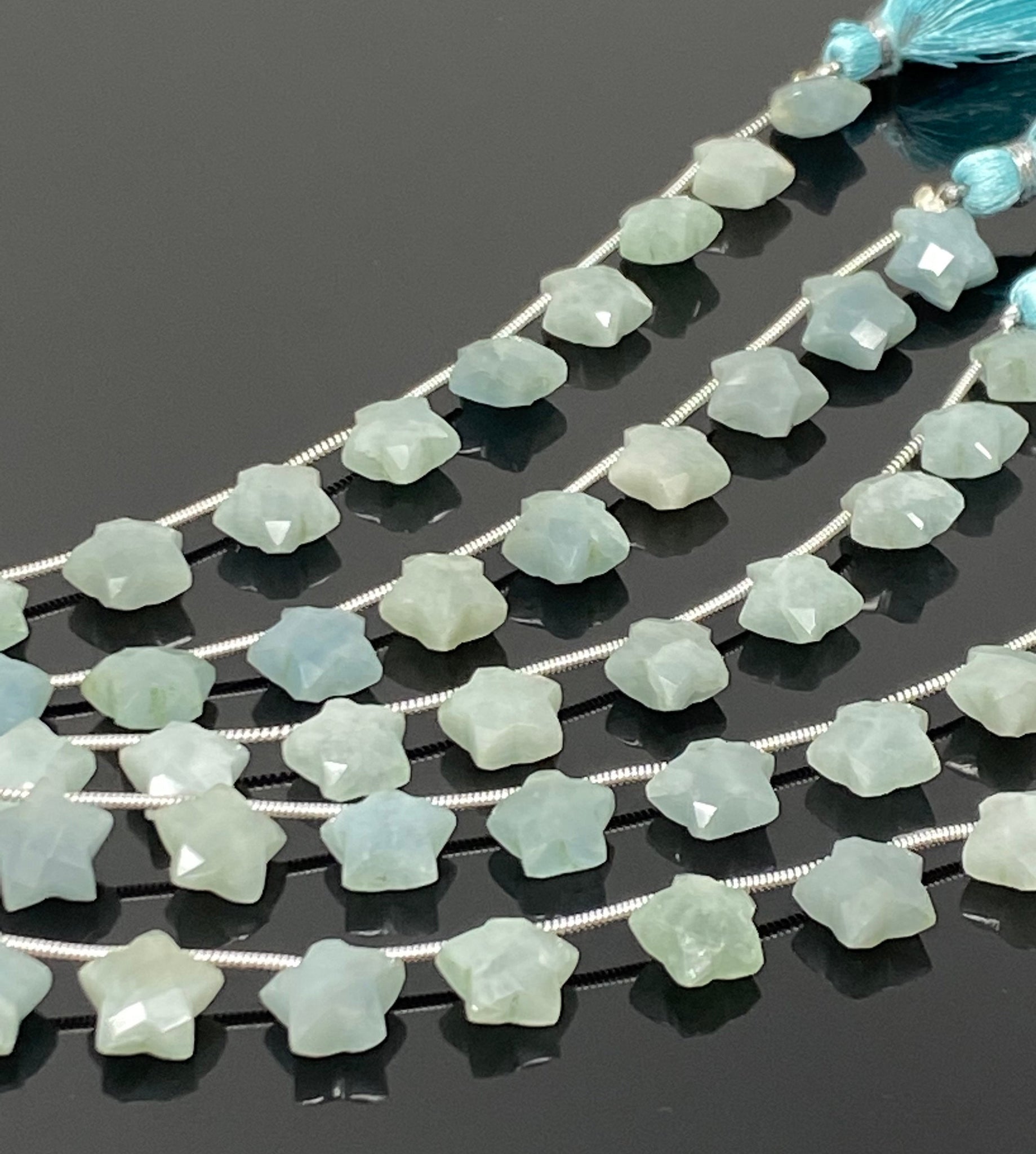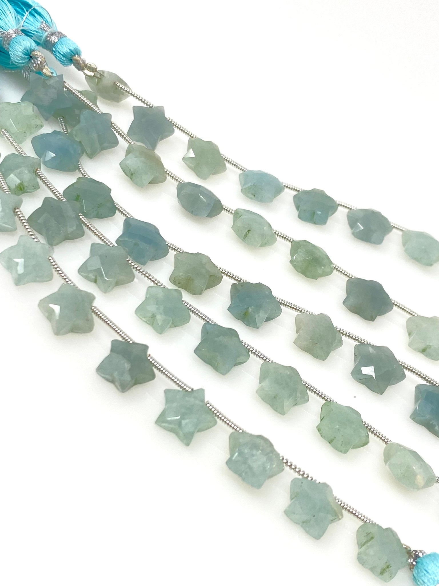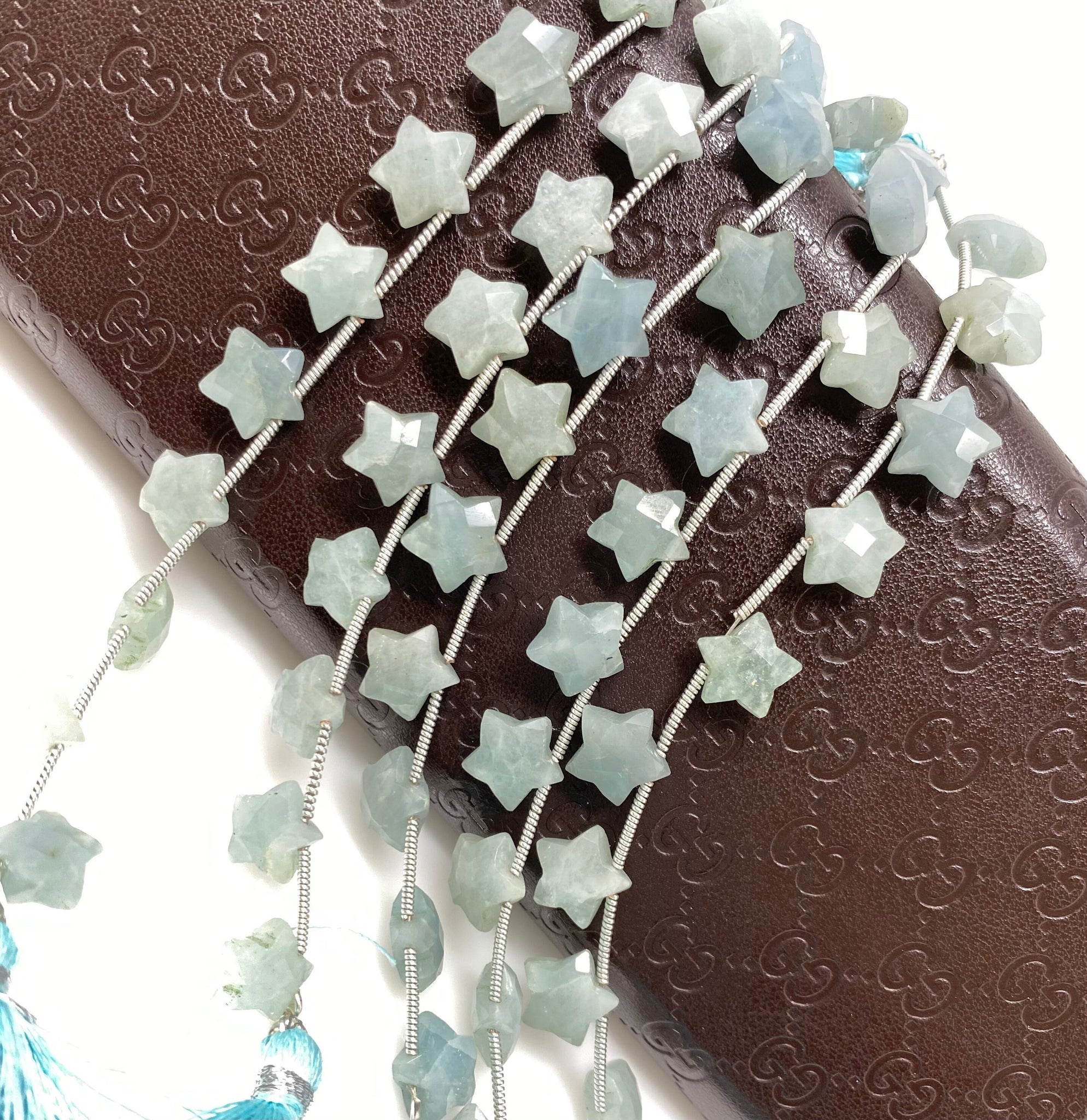 Natural Aquamarine Gemstone Beads, Carved Star Beads, Aquamarine Beads, Wholesale Bulk Beads, 5” Strand/ 10 Beads of 10mm