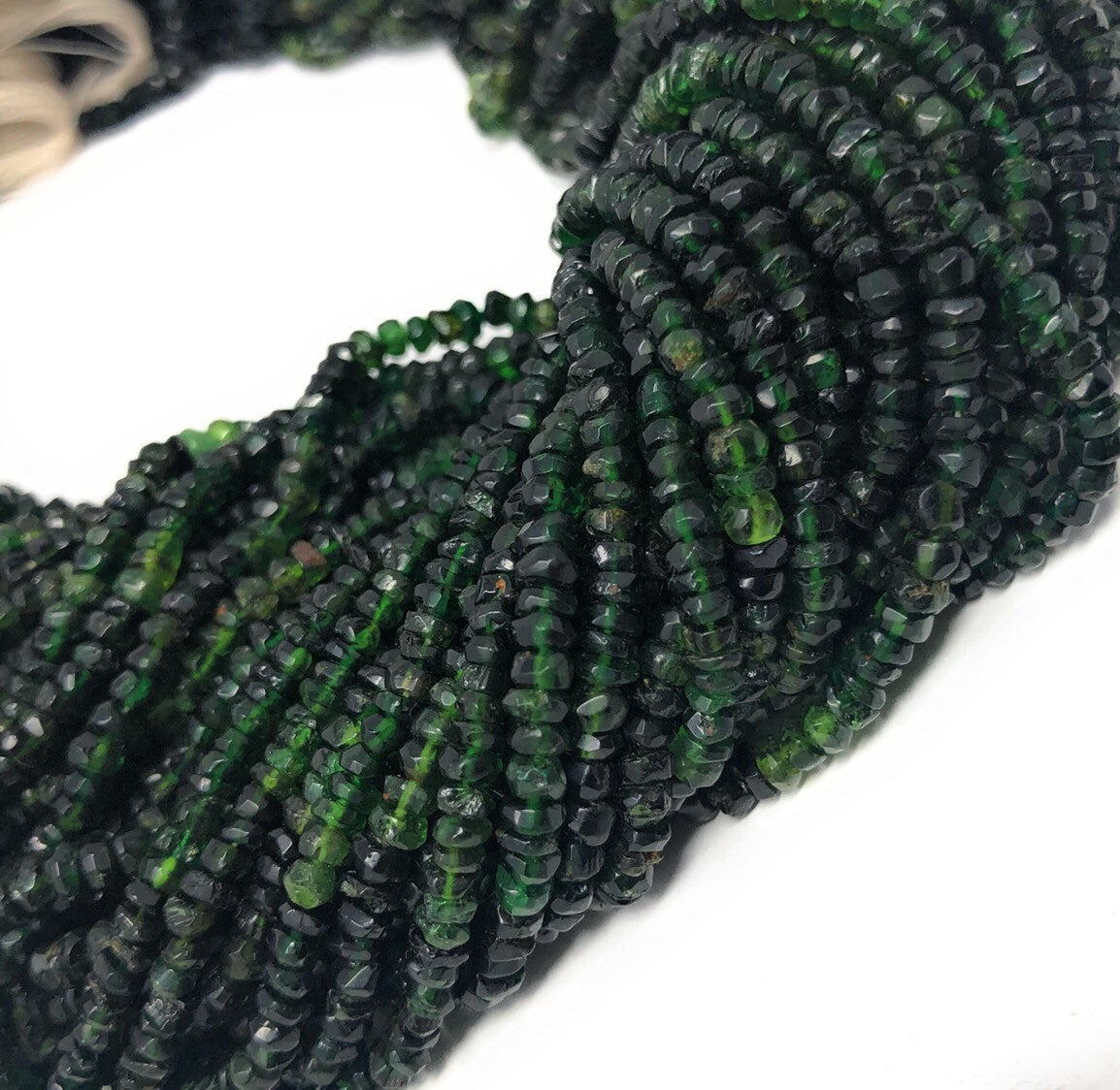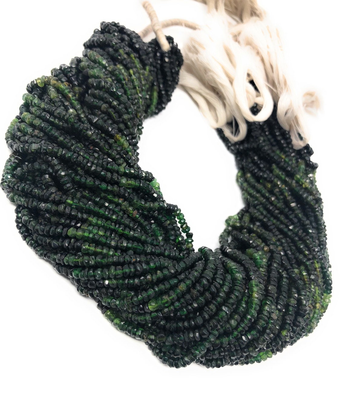 These Gorgeous Faceted Rondelle AA Grade Natural Untreated Shaded Chrome Diopside Gemstone Beads are an excellent choice for Stringing and making exclusive Bracelets or Necklaces .
