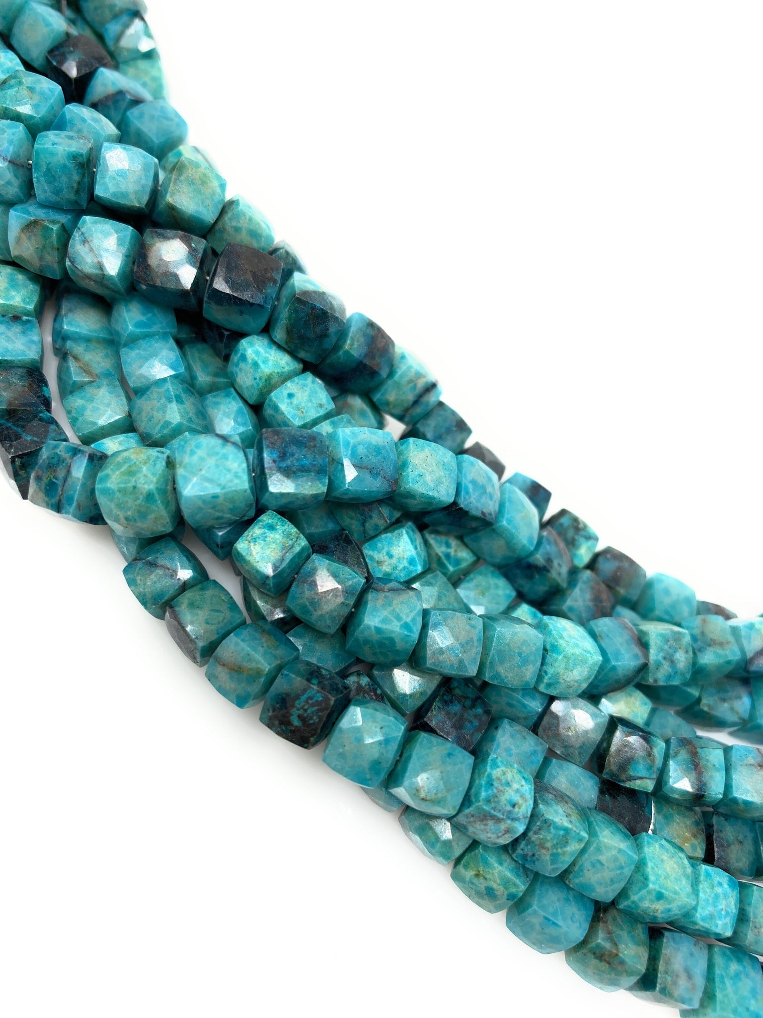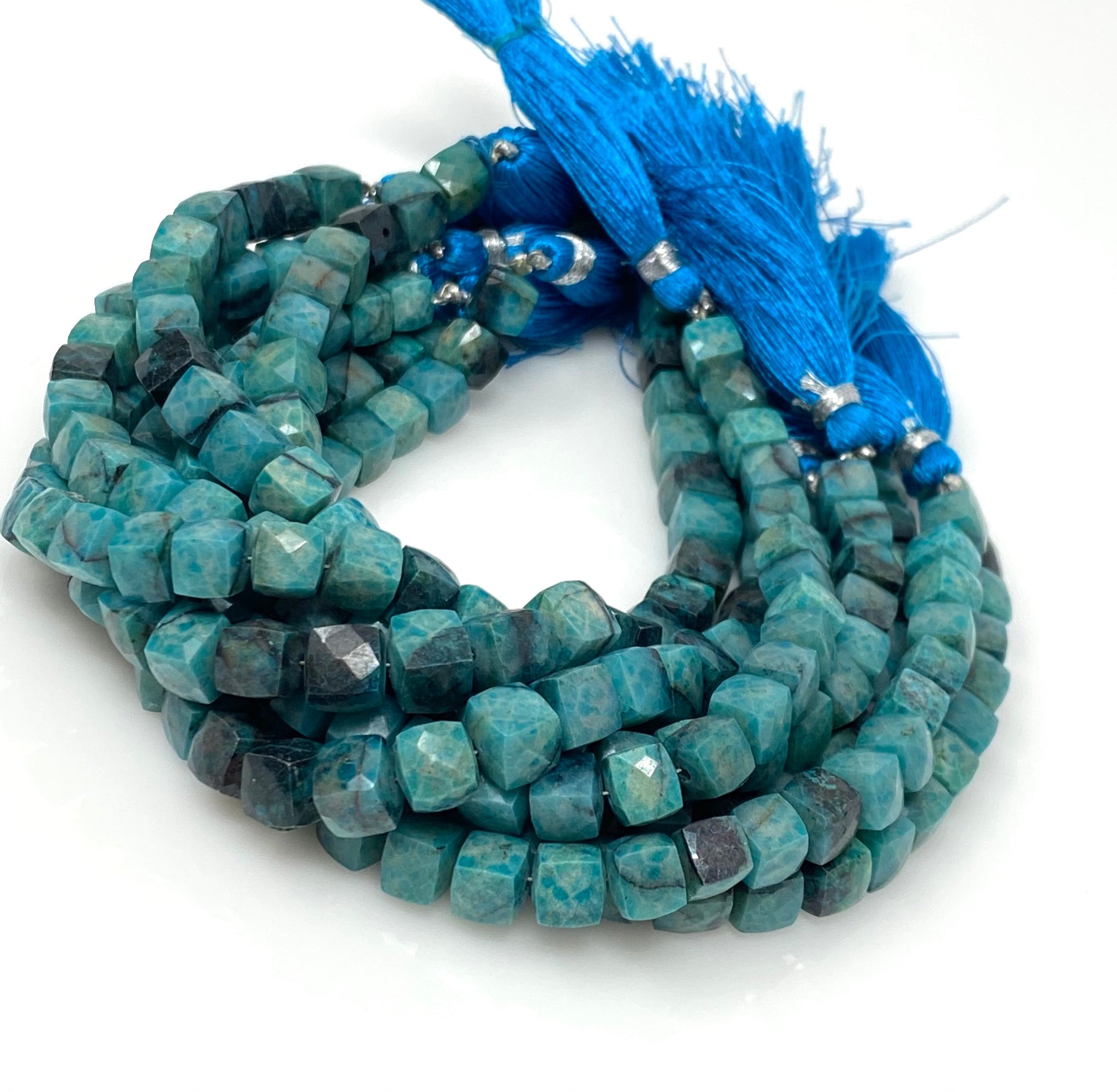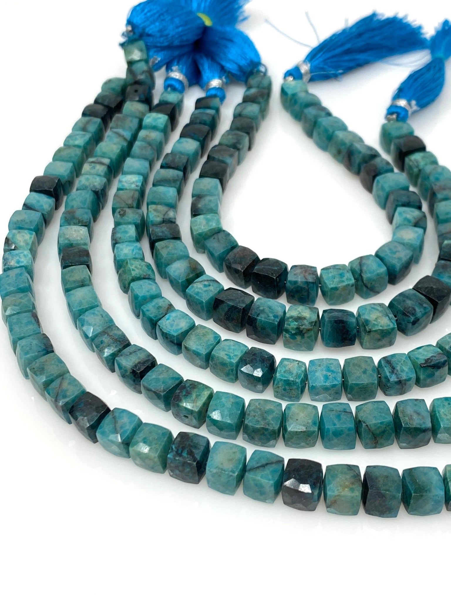 Natural Chrysocolla Gemstone Beads, Chrysocolla 3D Cube Box Beads, Wholesale Bulk Beads, Jewelry Supplies, 7mm -8mm, 8” strand