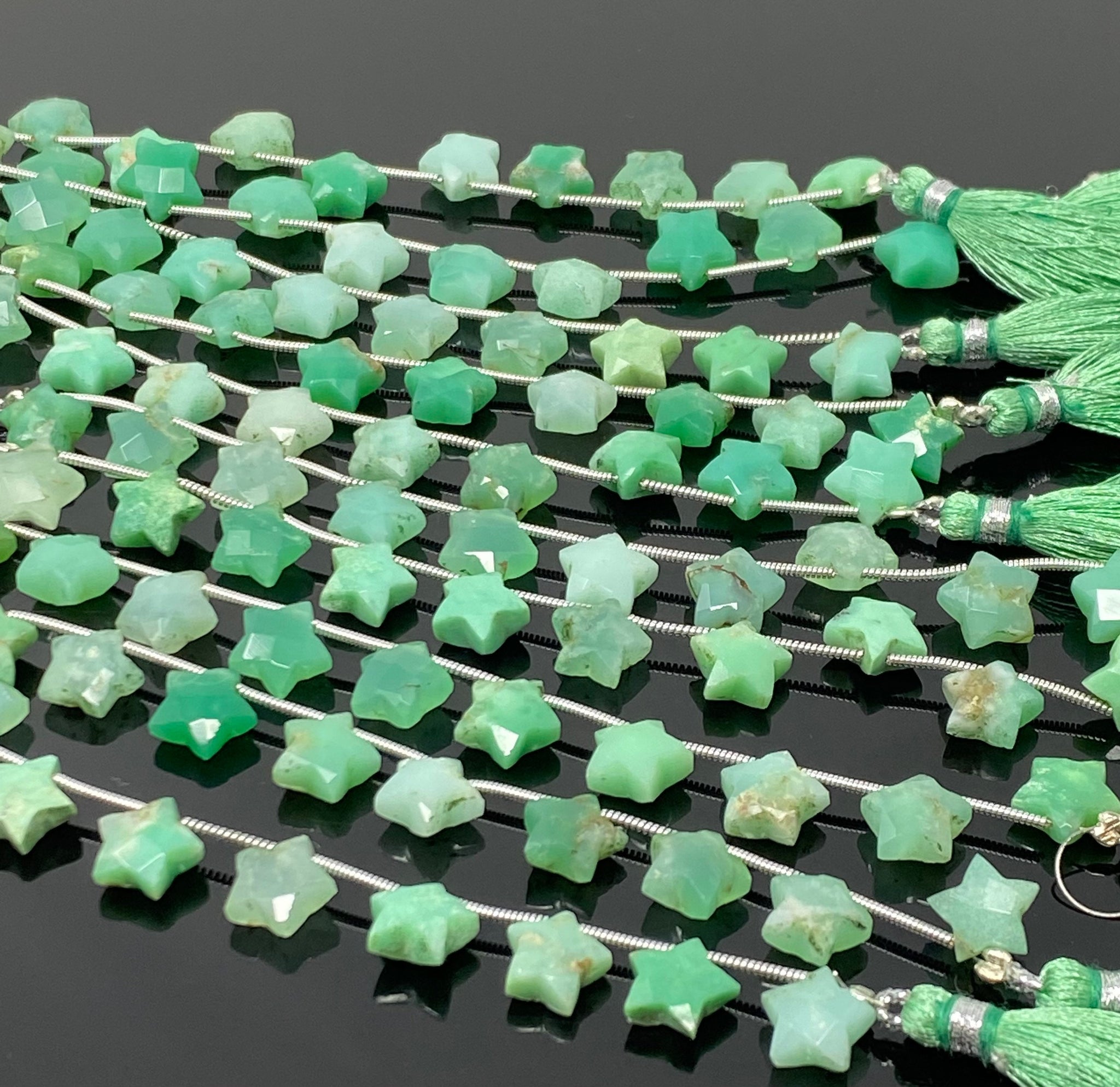 Natural Chrysoprase Gemstone Beads, Hand Carved Star Beads, Jewelry Supplies, Wholesale Bulk Beads, 5” Strand/ 10 Beads, 10mm