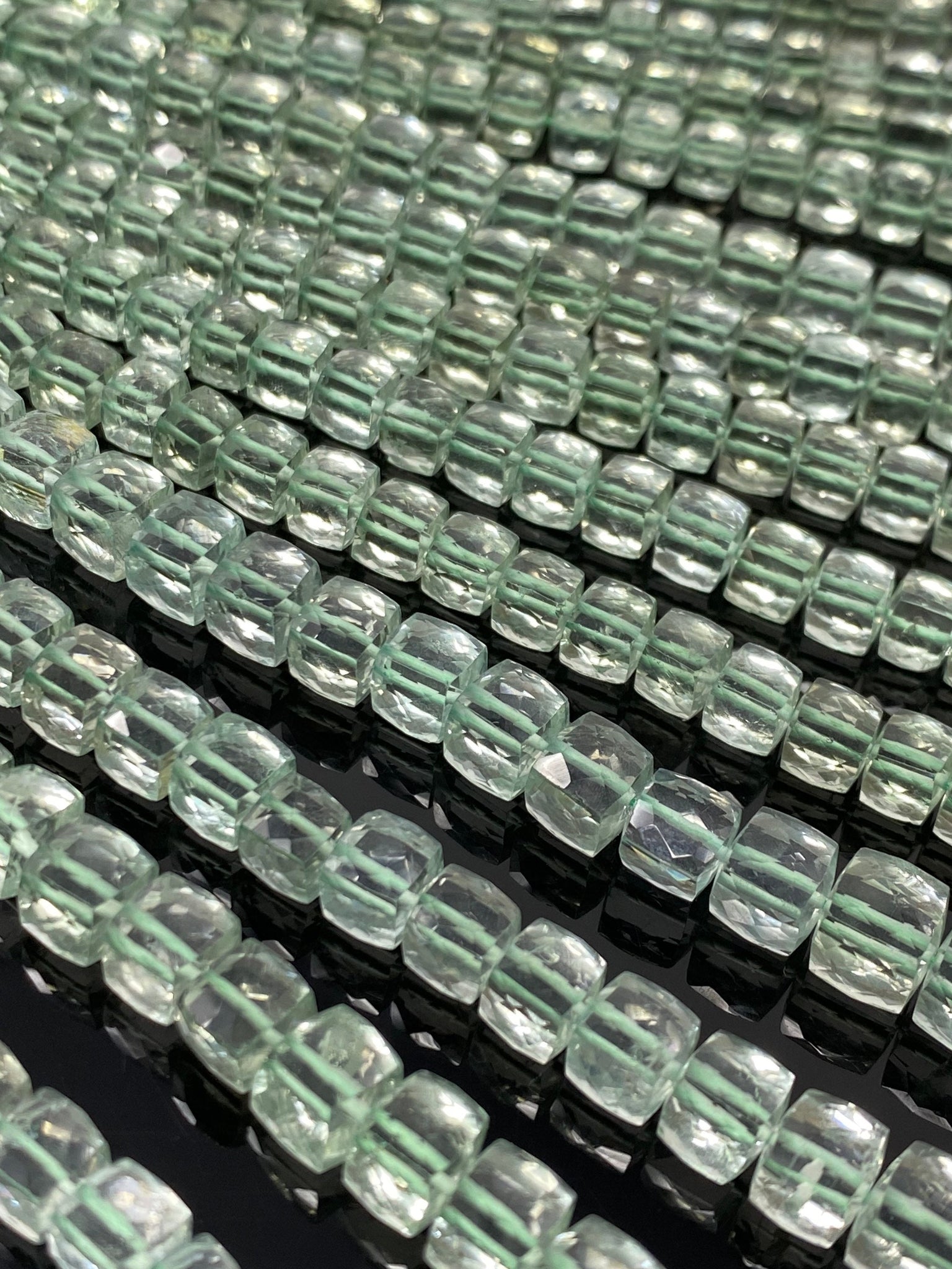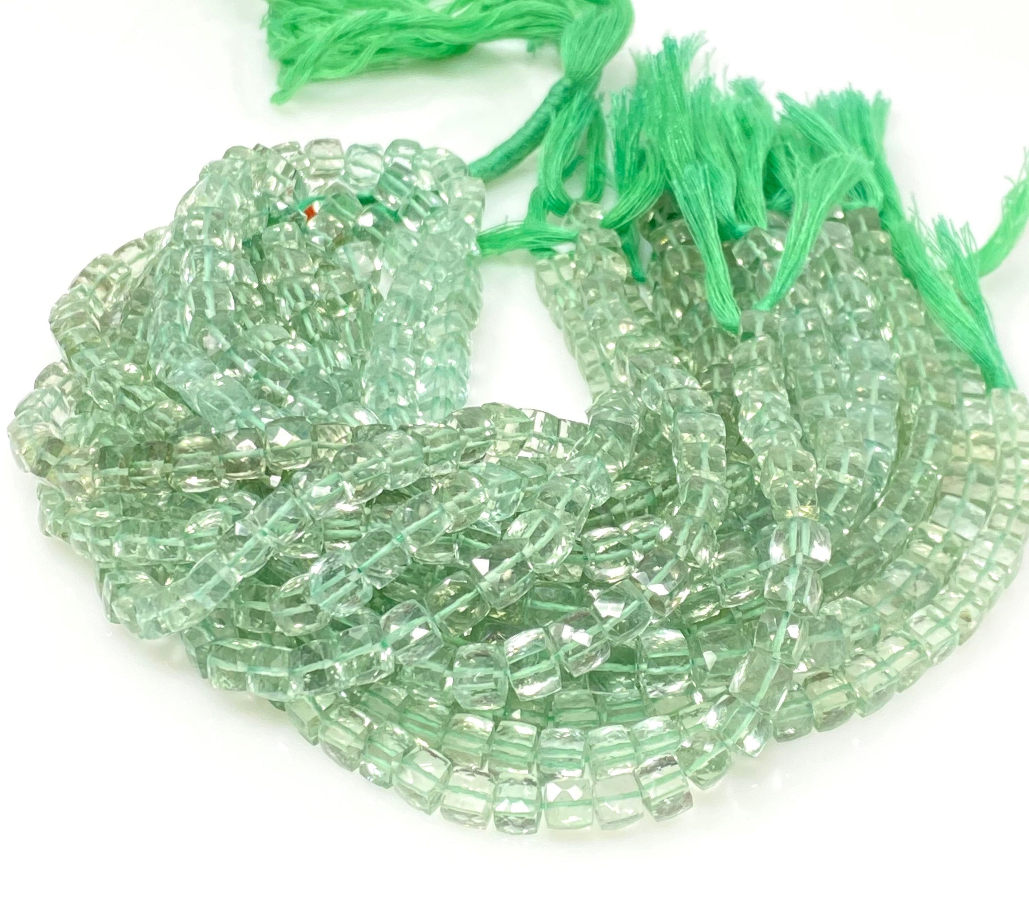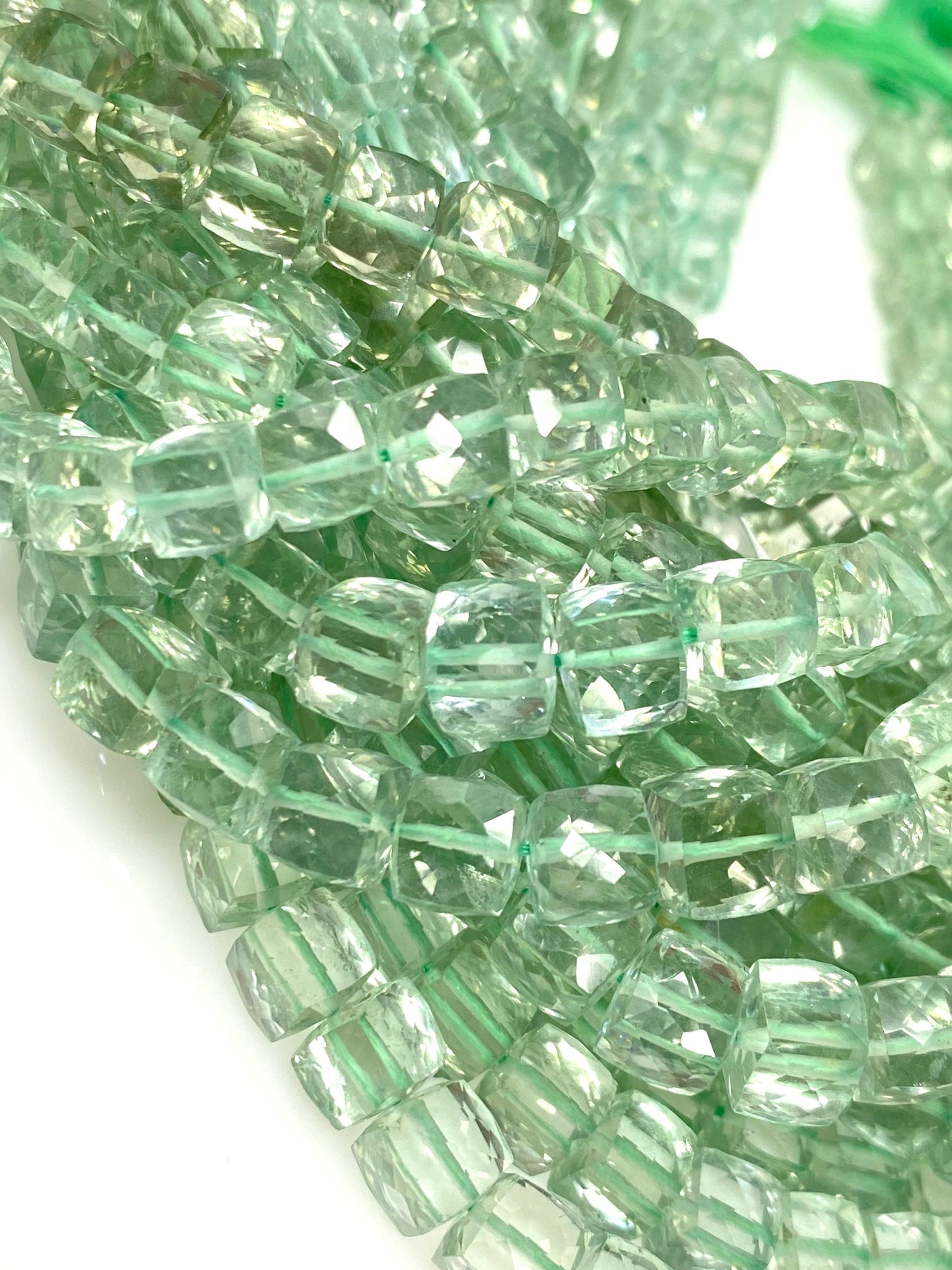 Natural Green Amethyst Gemstone Beads, Prasiolite Beads, 3D Cube Box Beads, Bulk Wholesale Beads, Spiritual Healing Beads, 6mm-7mm 9" Strand