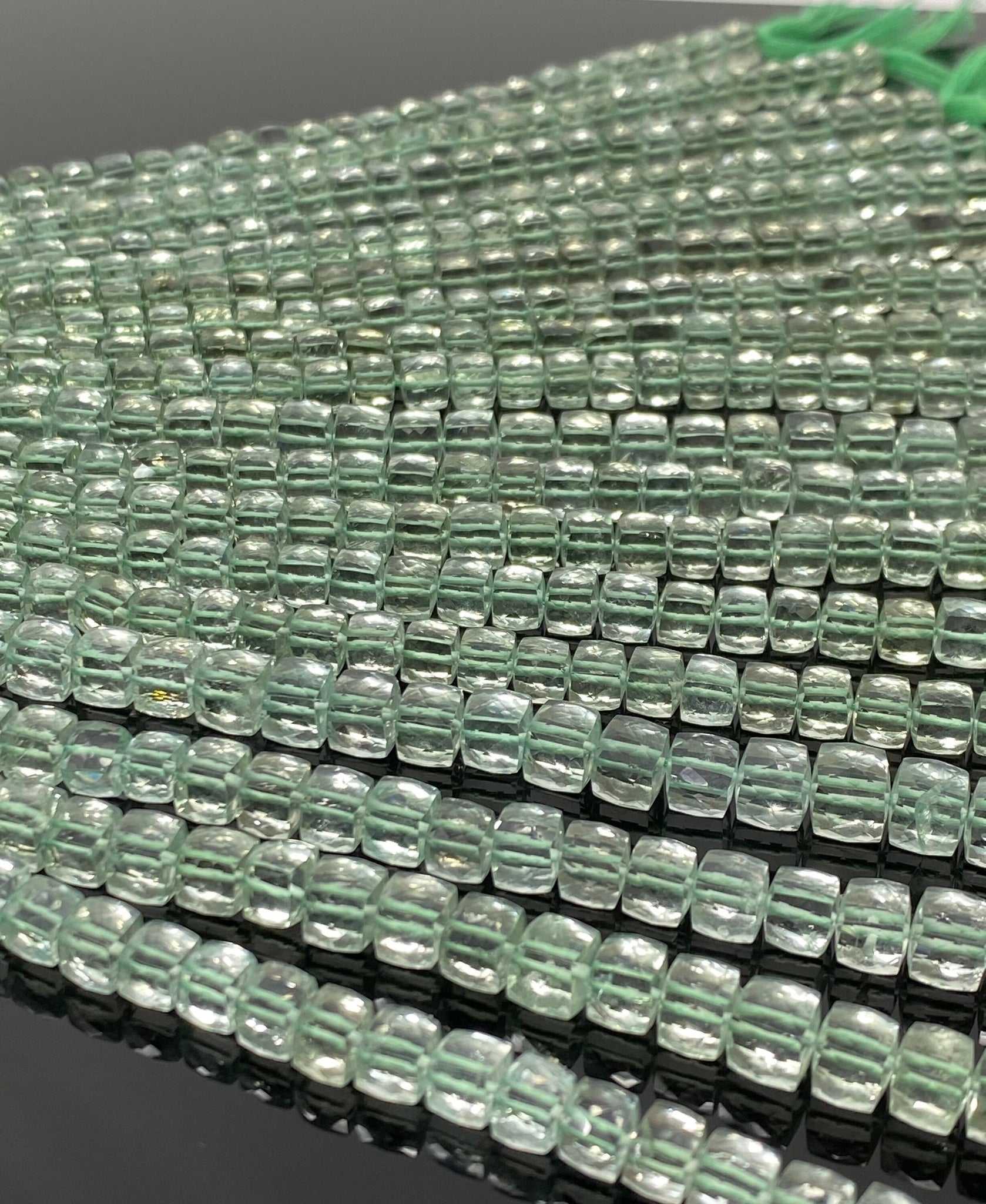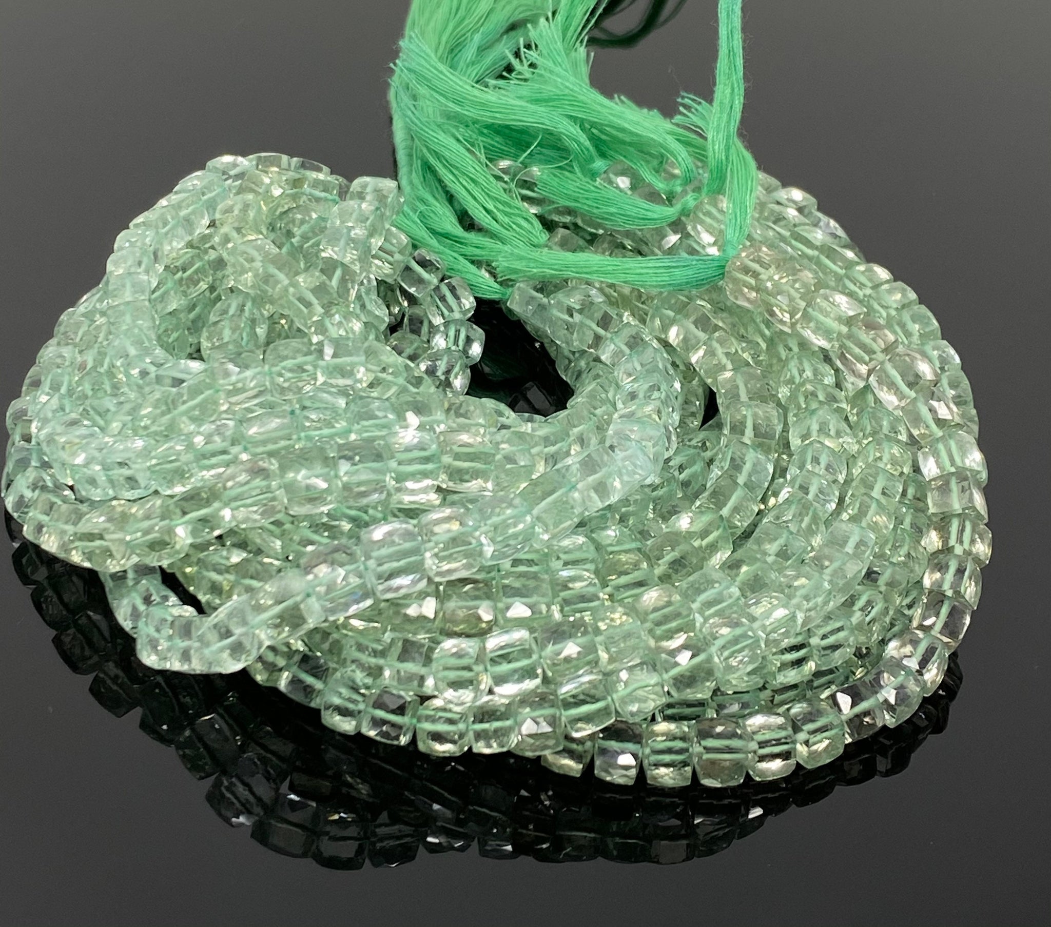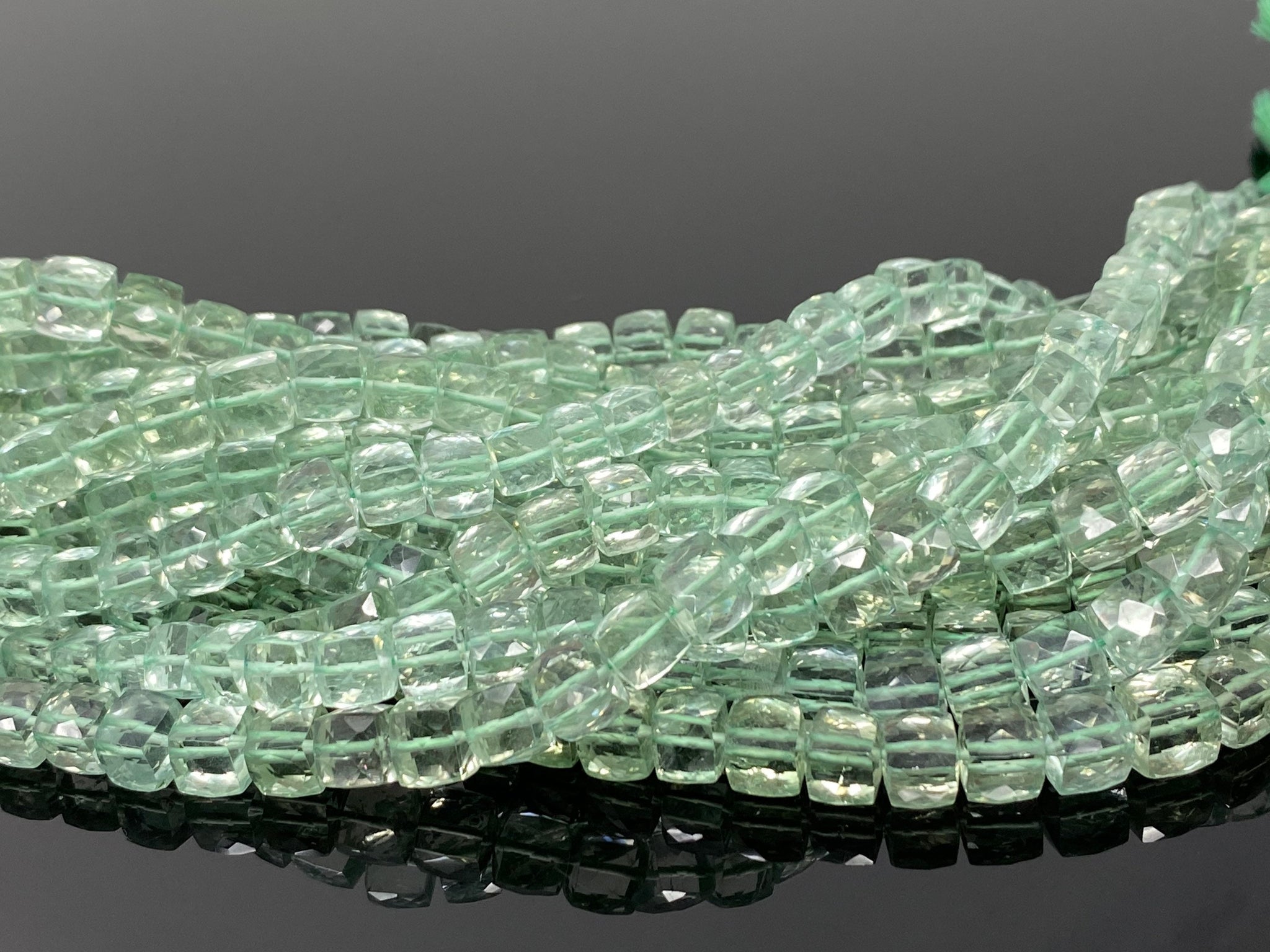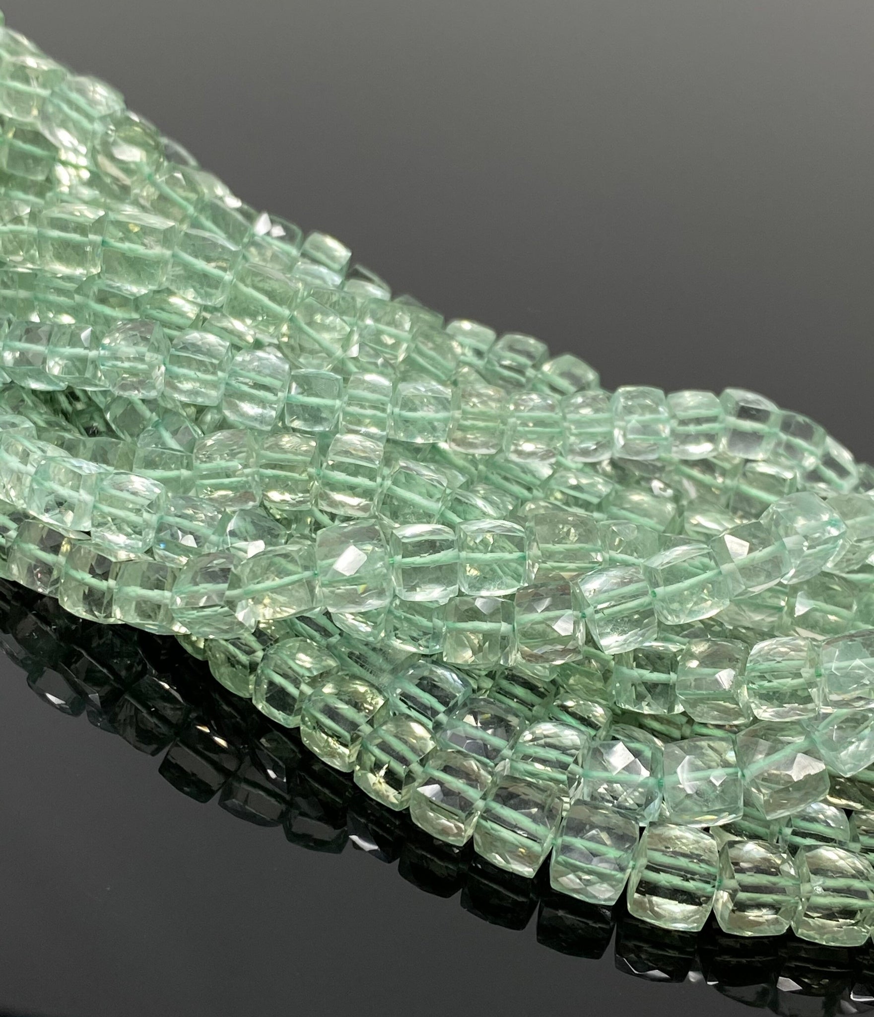 Natural Green Amethyst Gemstone Beads, Prasiolite Beads, 3D Cube Box Beads, Bulk Wholesale Beads, Spiritual Healing Beads, 6mm-7mm 9" Strand