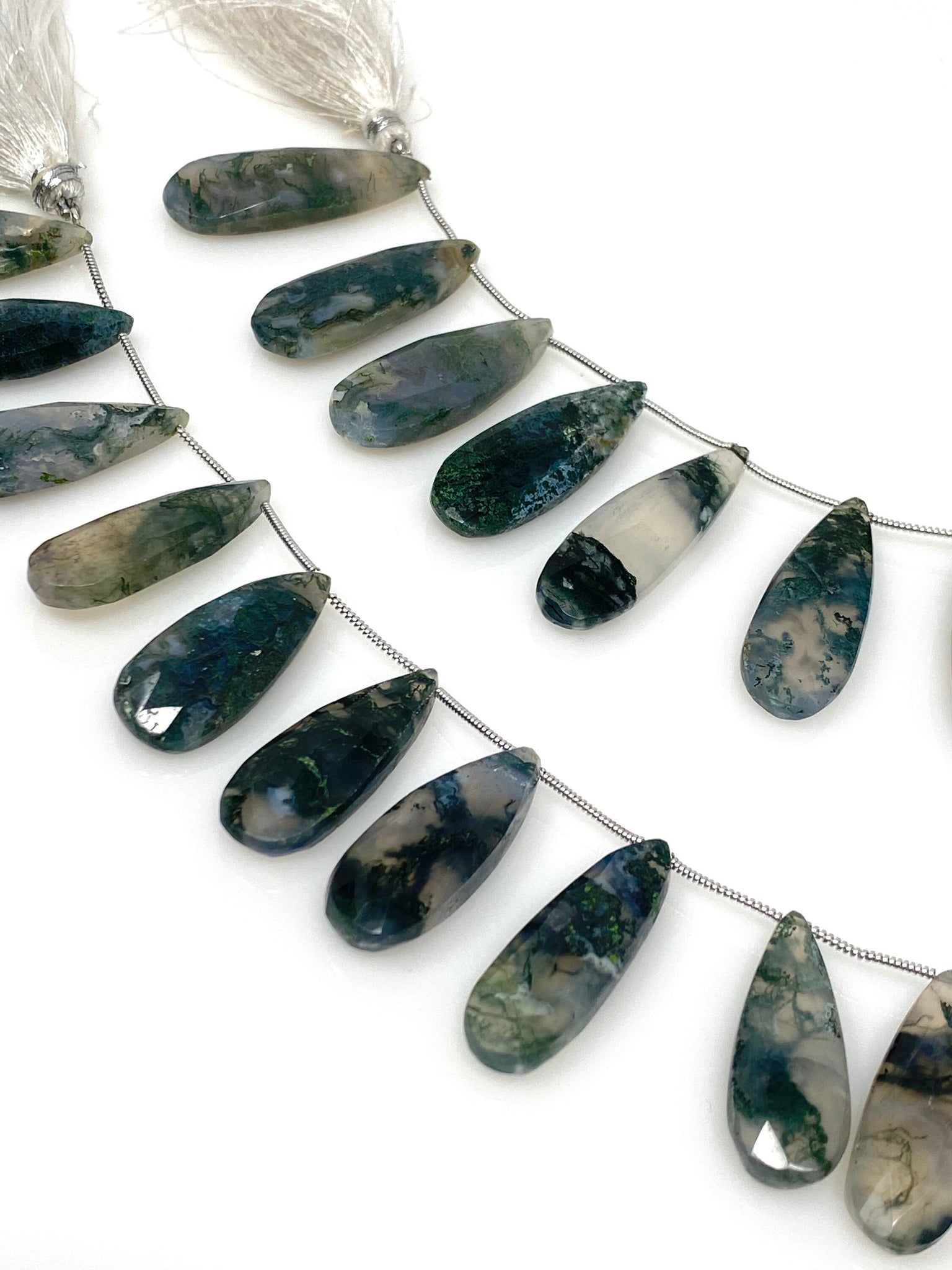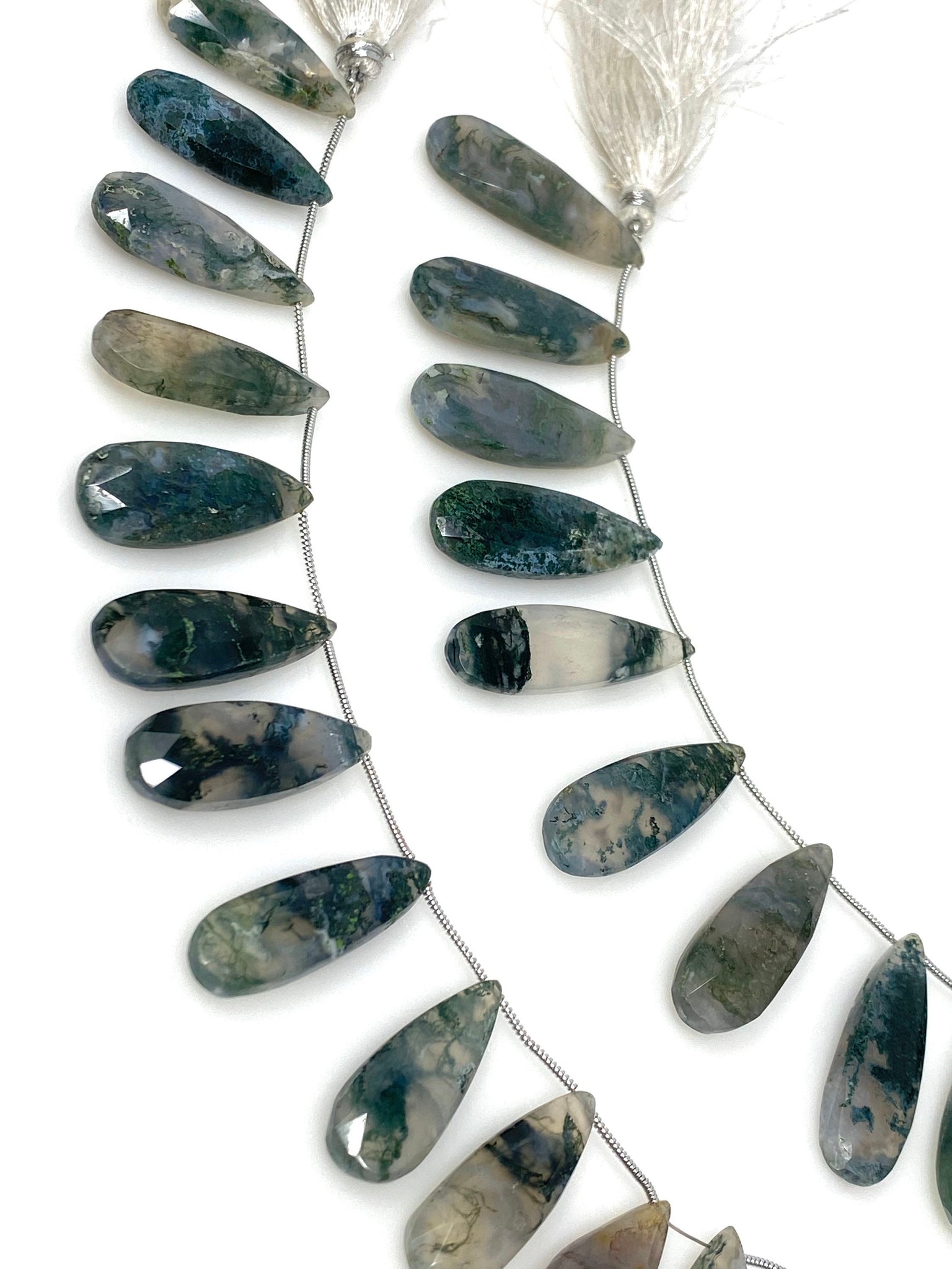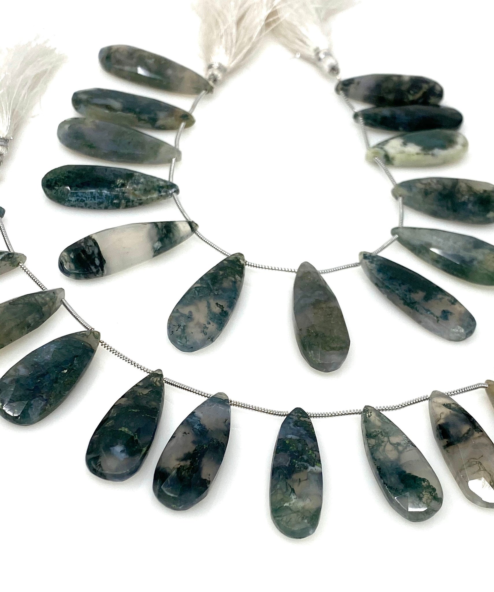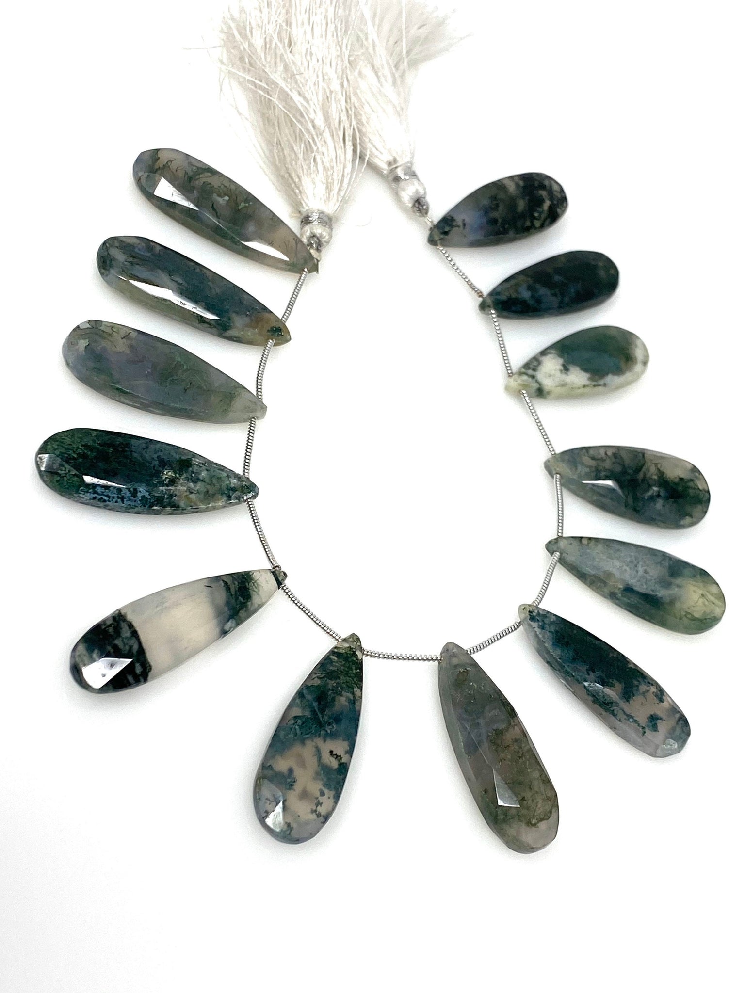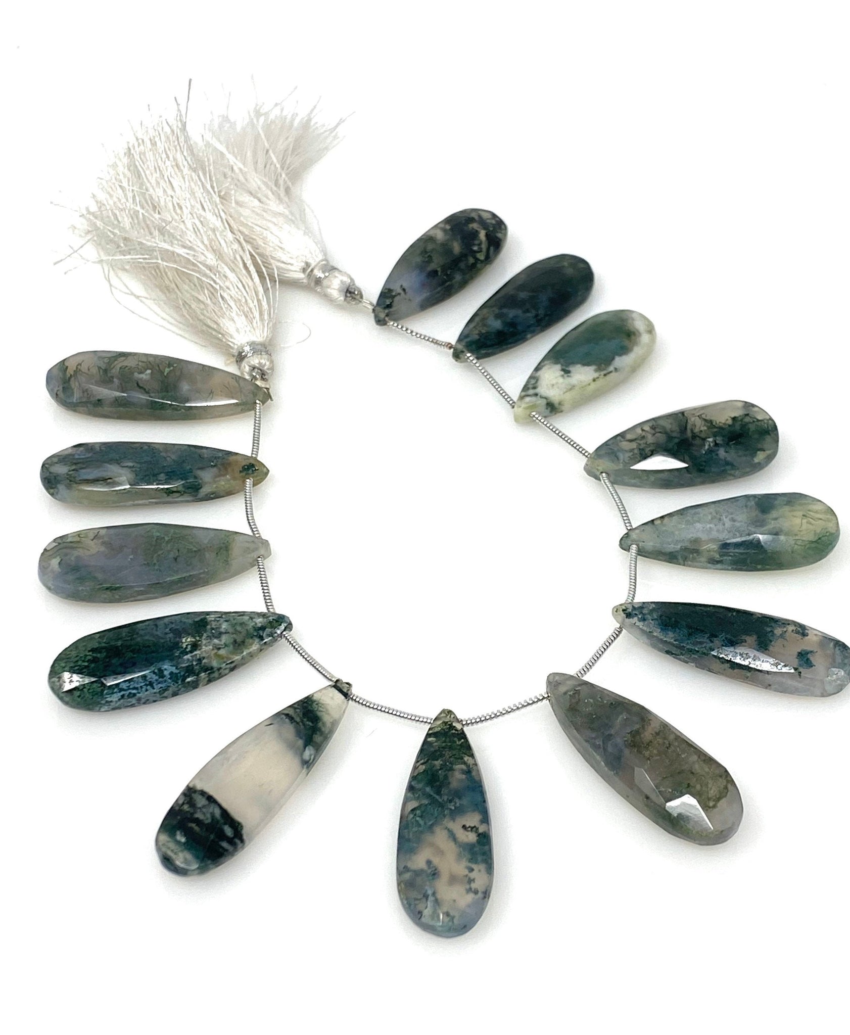 Natural Green Moss Agate Gemstone Beads, Moss Agate Faceted Pear Briolette Beads, Wholesale Beads, 24mm - 37mm, 7.75” Strand/ 13-14Pcs