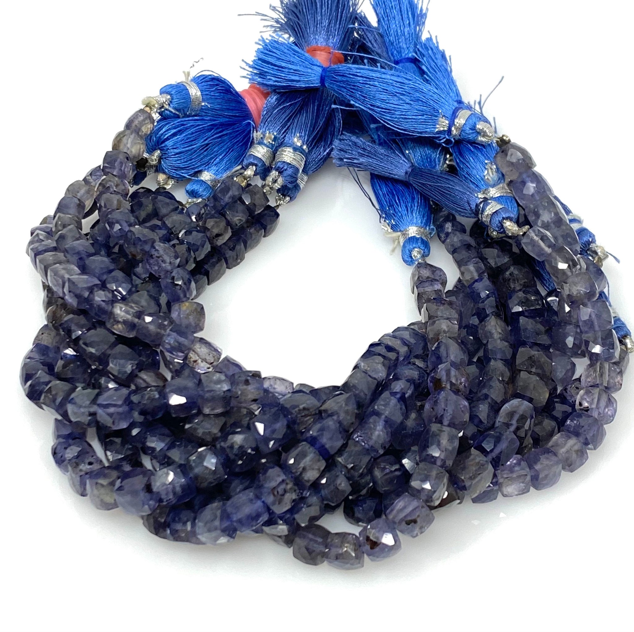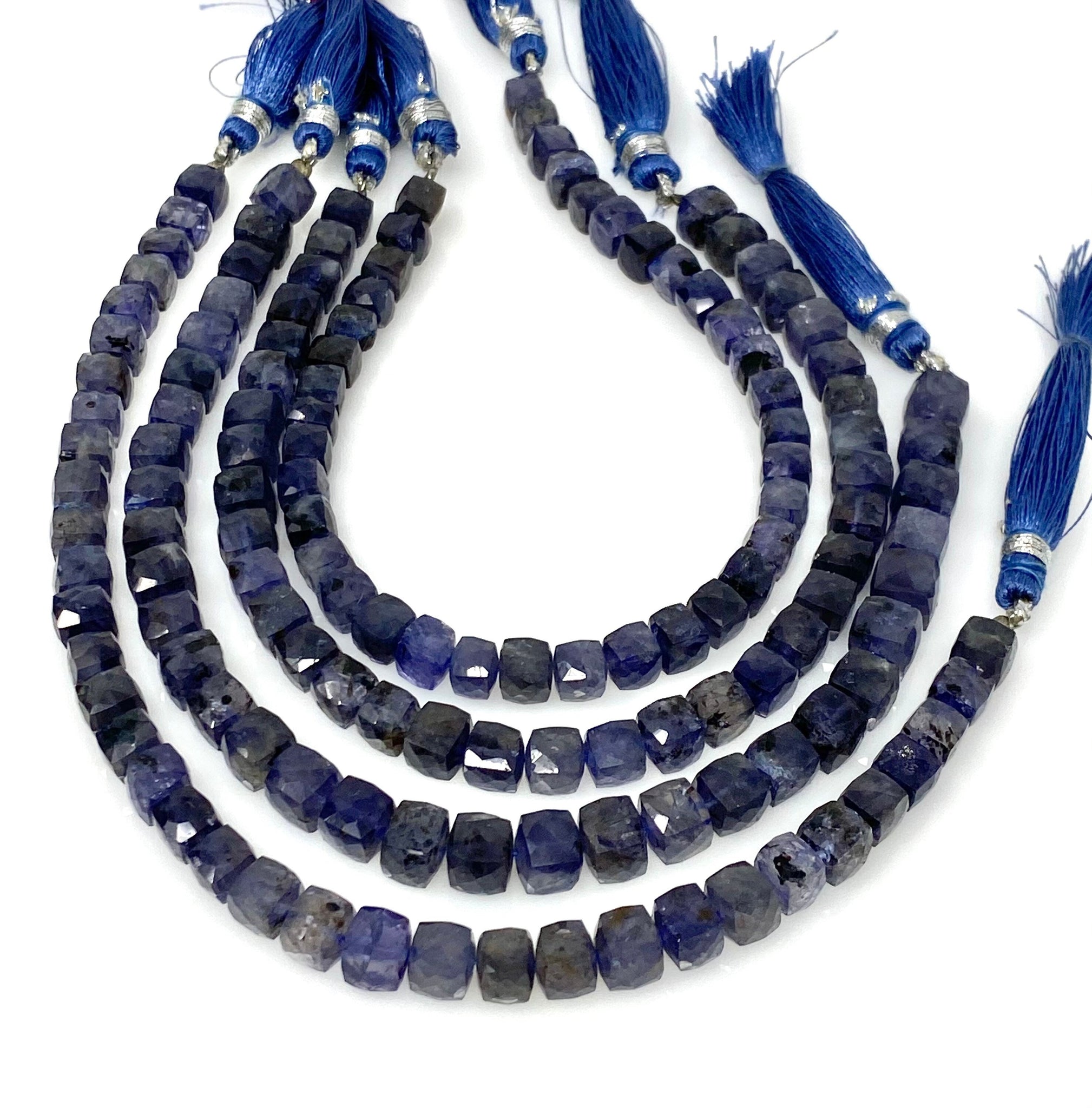 Natural Iolite Beads, Gemstone Beads, 3D Cube Box Beads, Wholesale Bulk Beads, 6mm - 7mm, 8" Strand