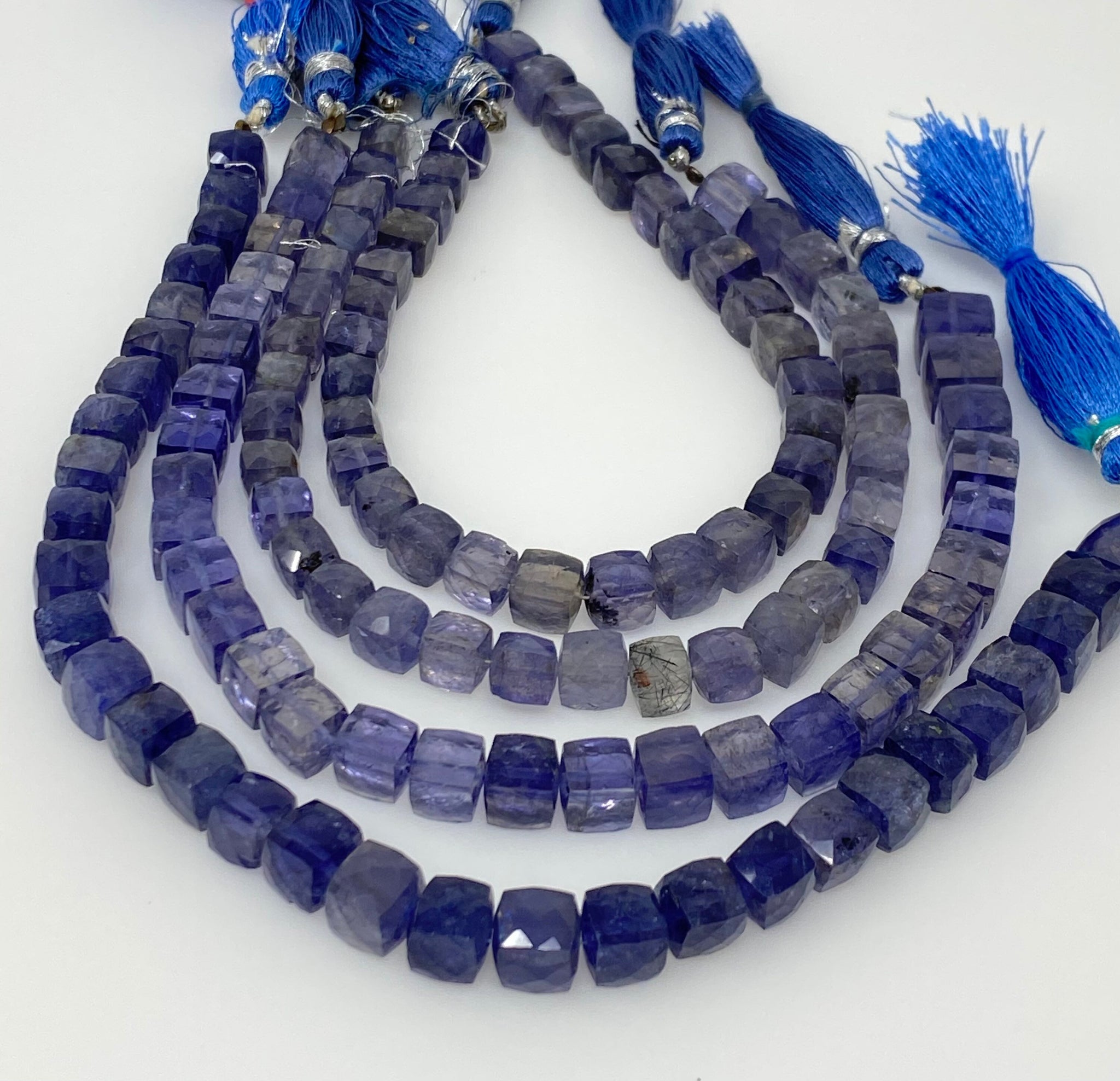 Natural Iolite Beads, Gemstone Beads, 3D Cube Box Beads, Wholesale Bulk Beads, 8" Strand