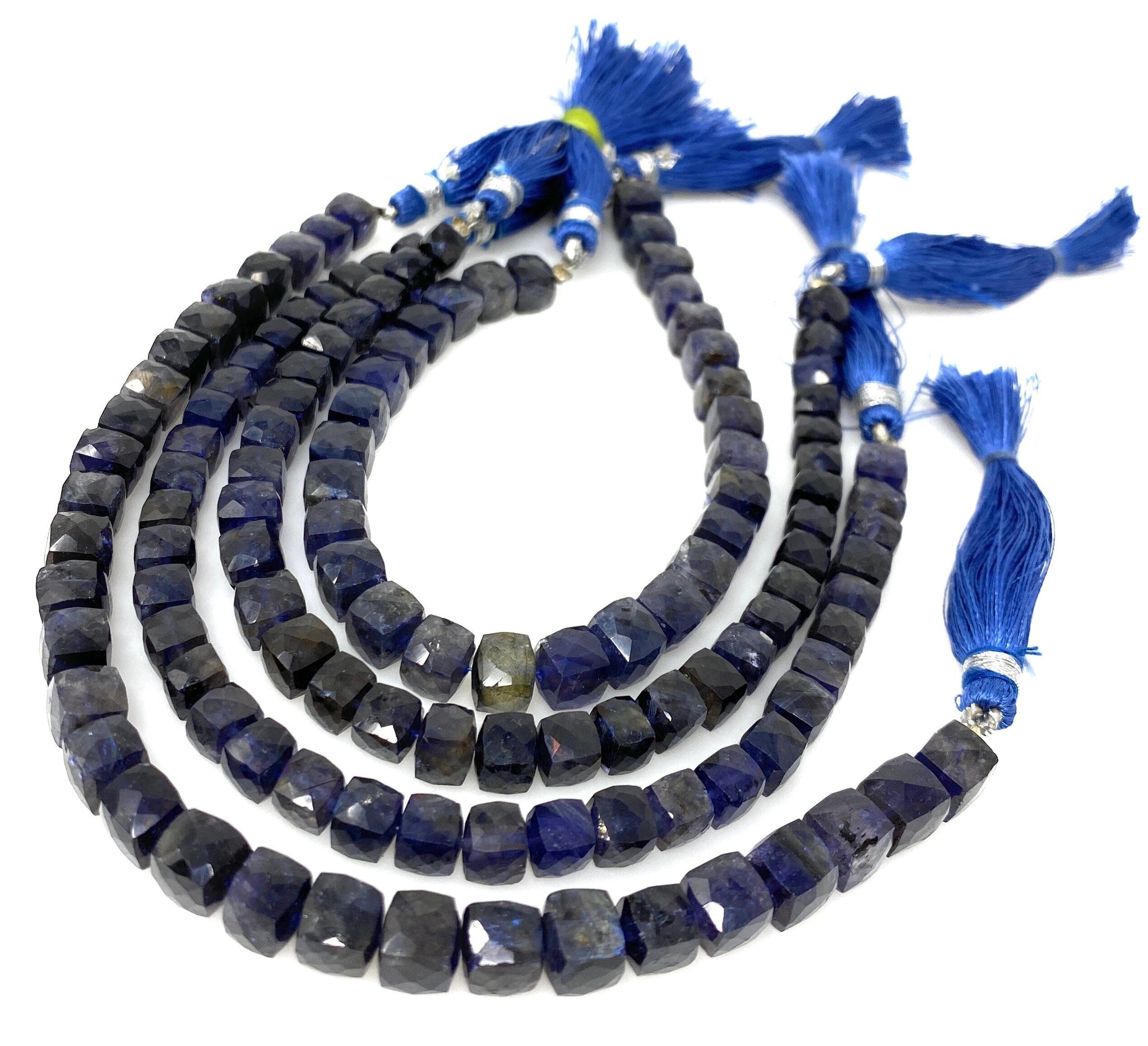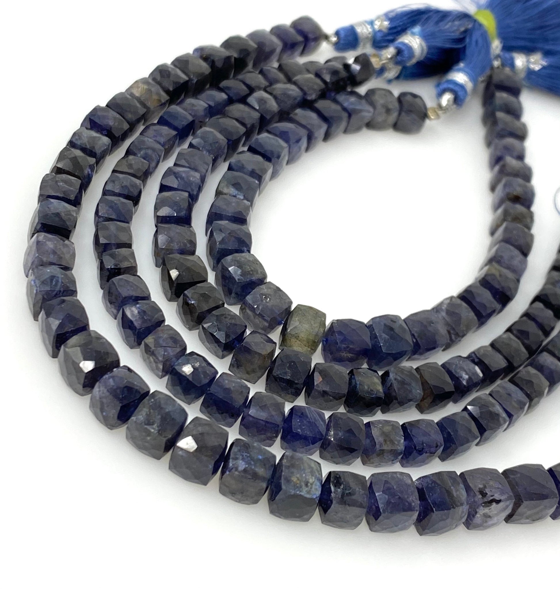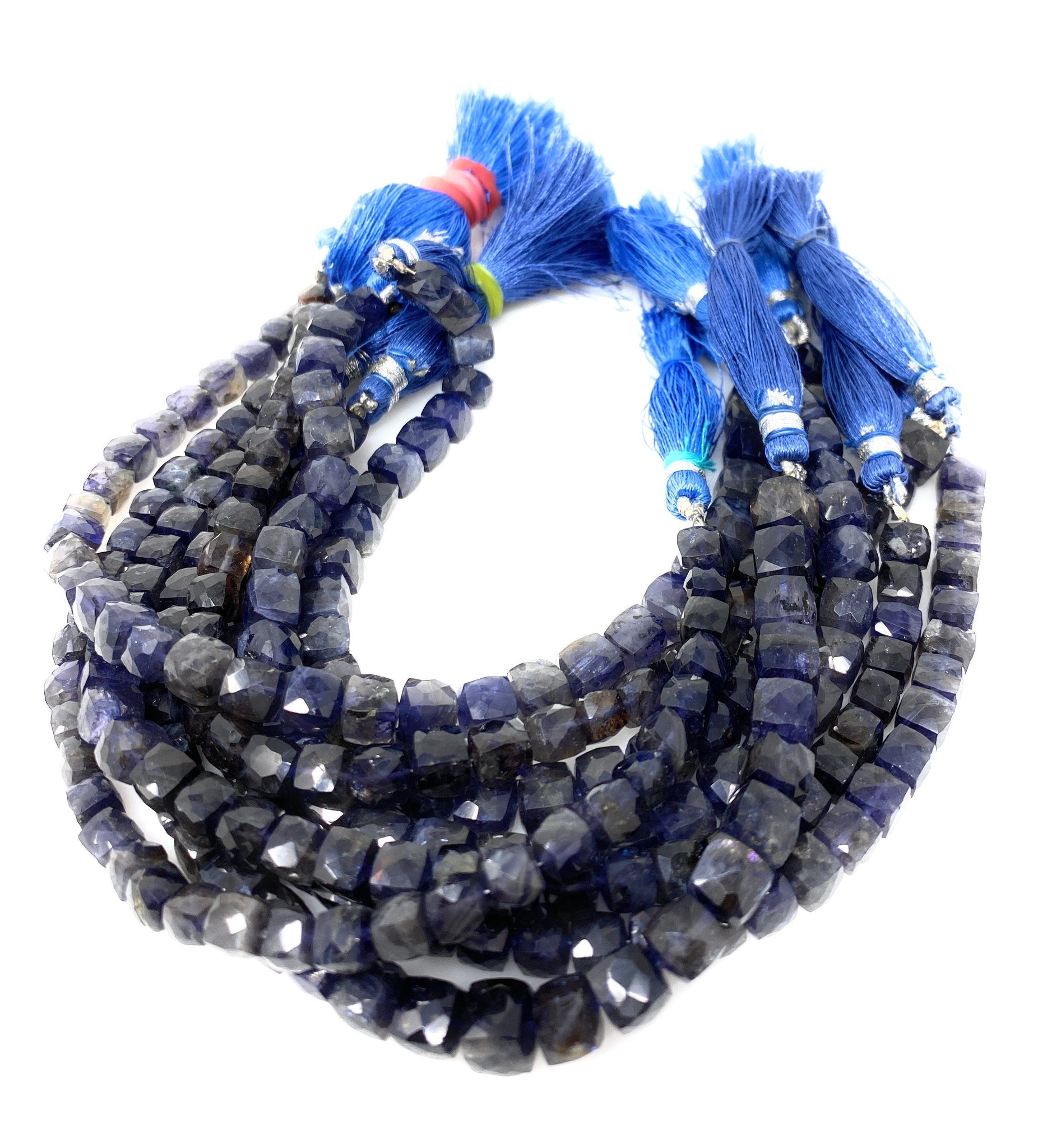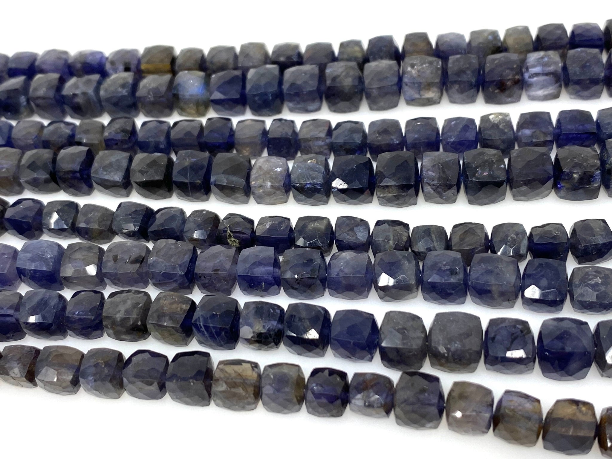Natural Iolite Beads, Gemstone Beads, 3D Cube Box Beads, Wholesale Bulk Beads, 7.5" Strand