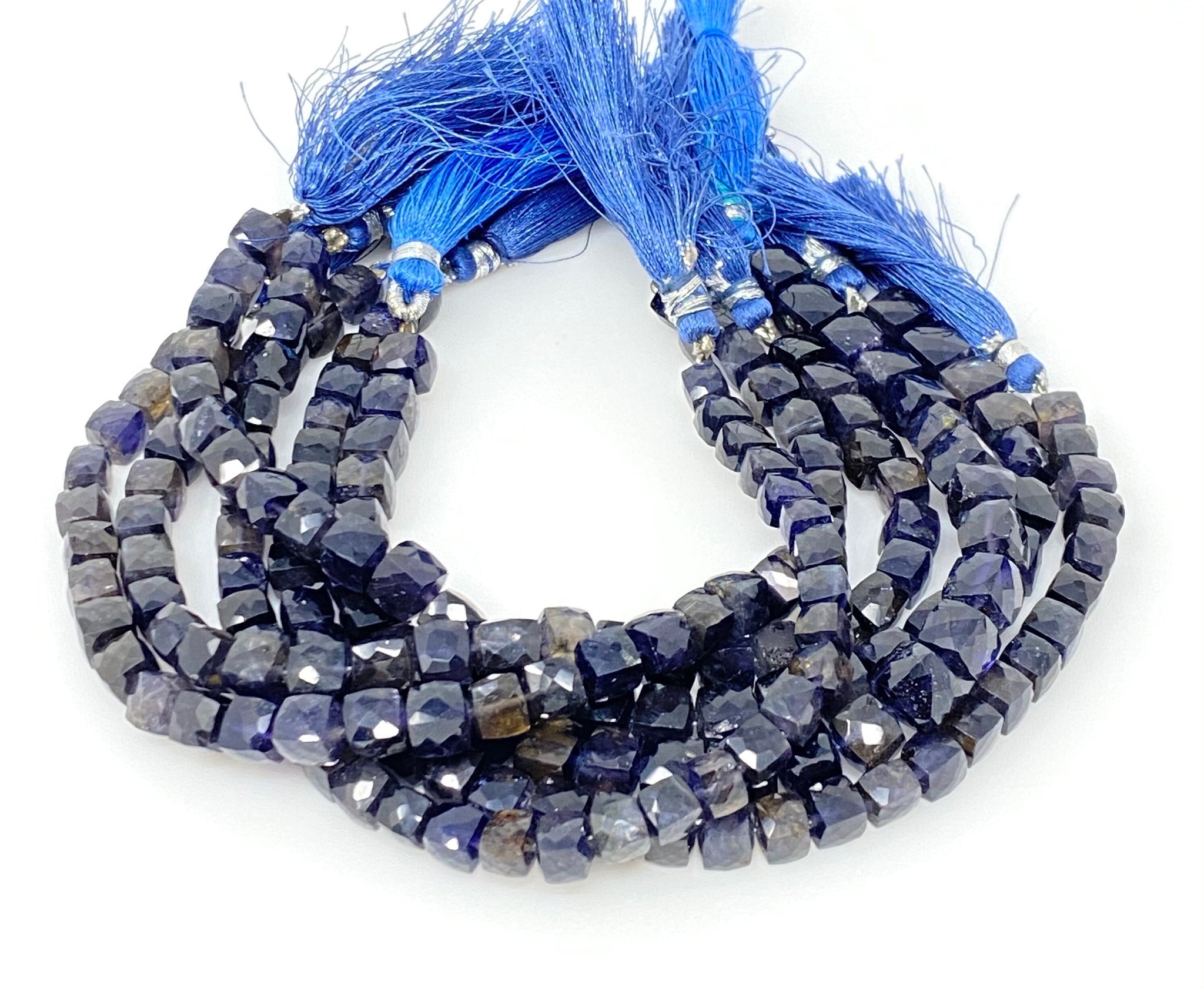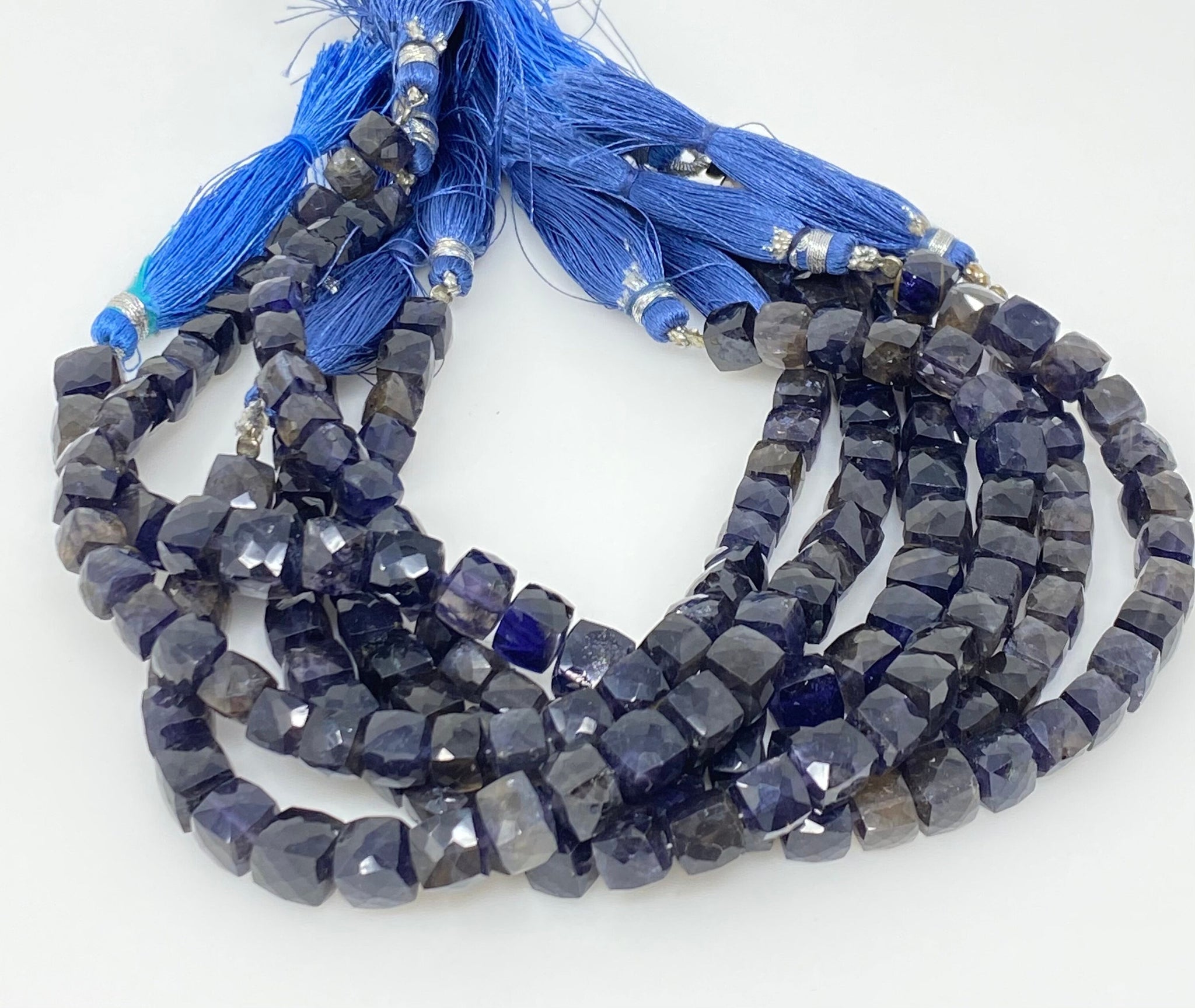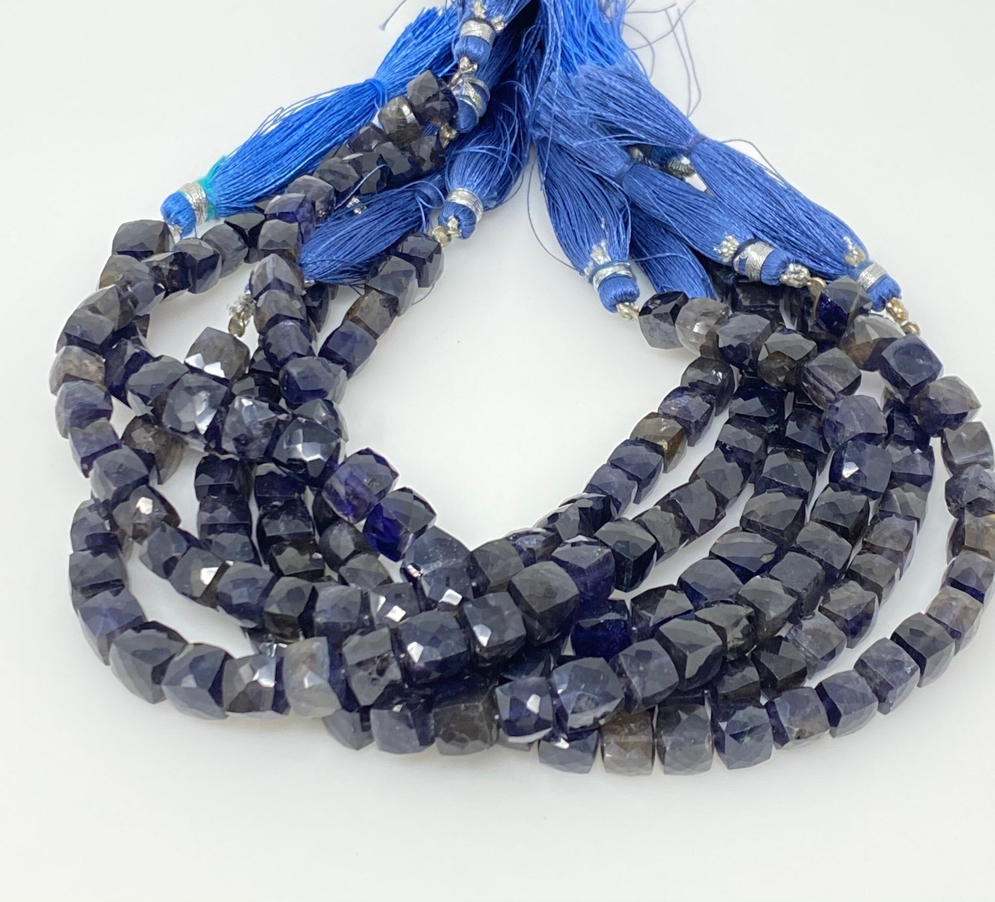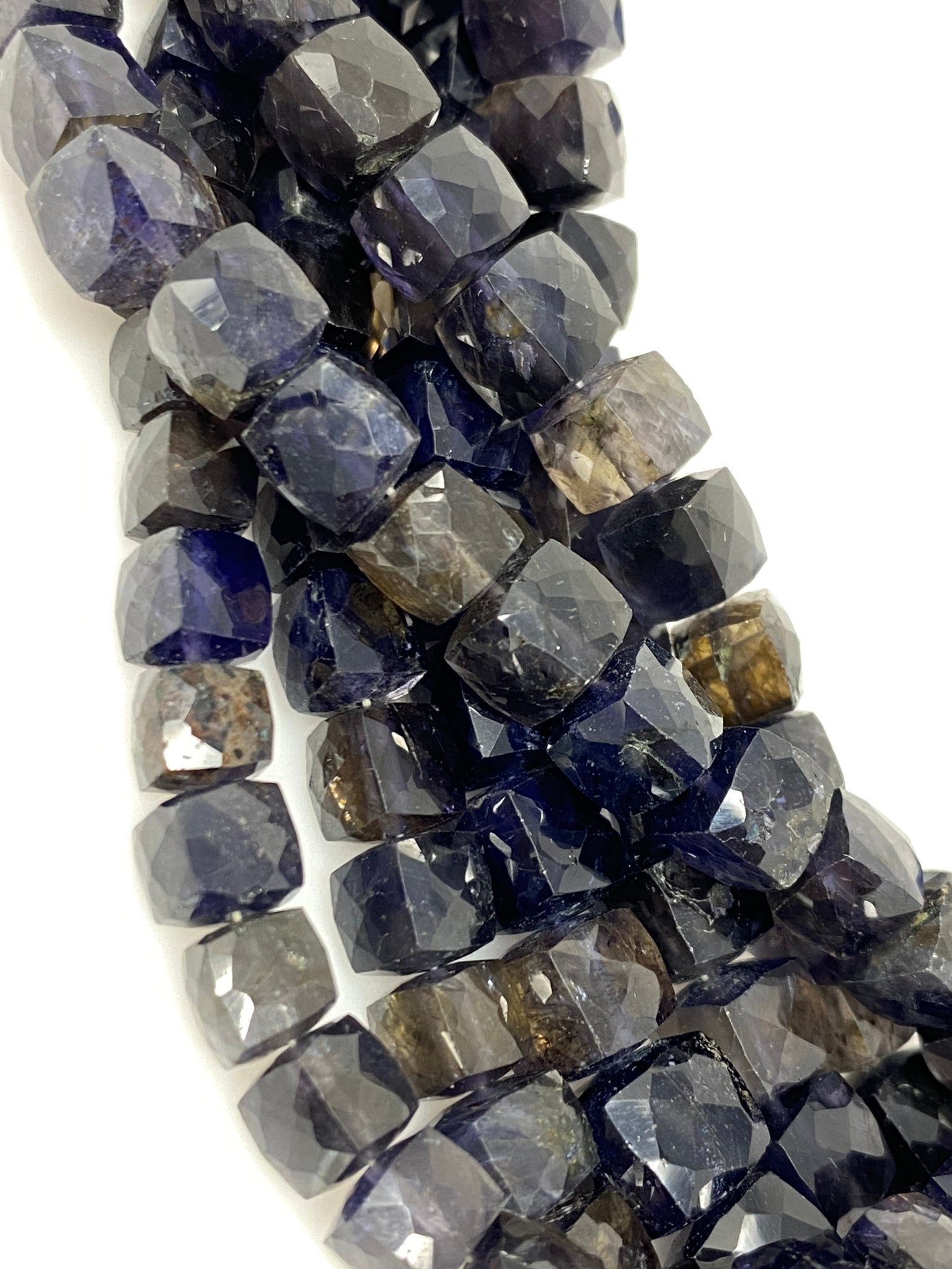 Natural Iolite Beads, Gemstone Beads, 3D Cube Box Beads, Wholesale Bulk Beads, 8" Strand