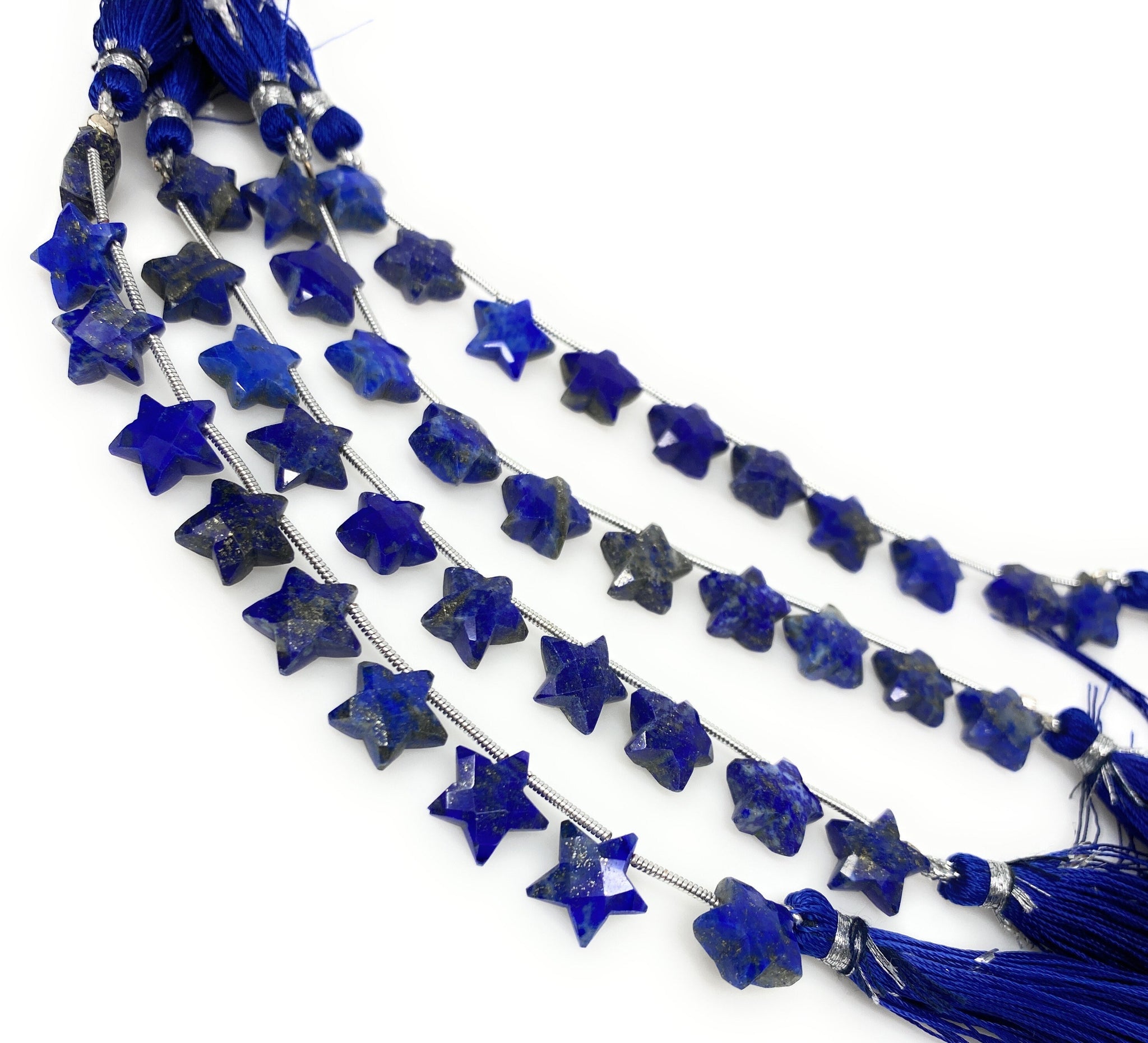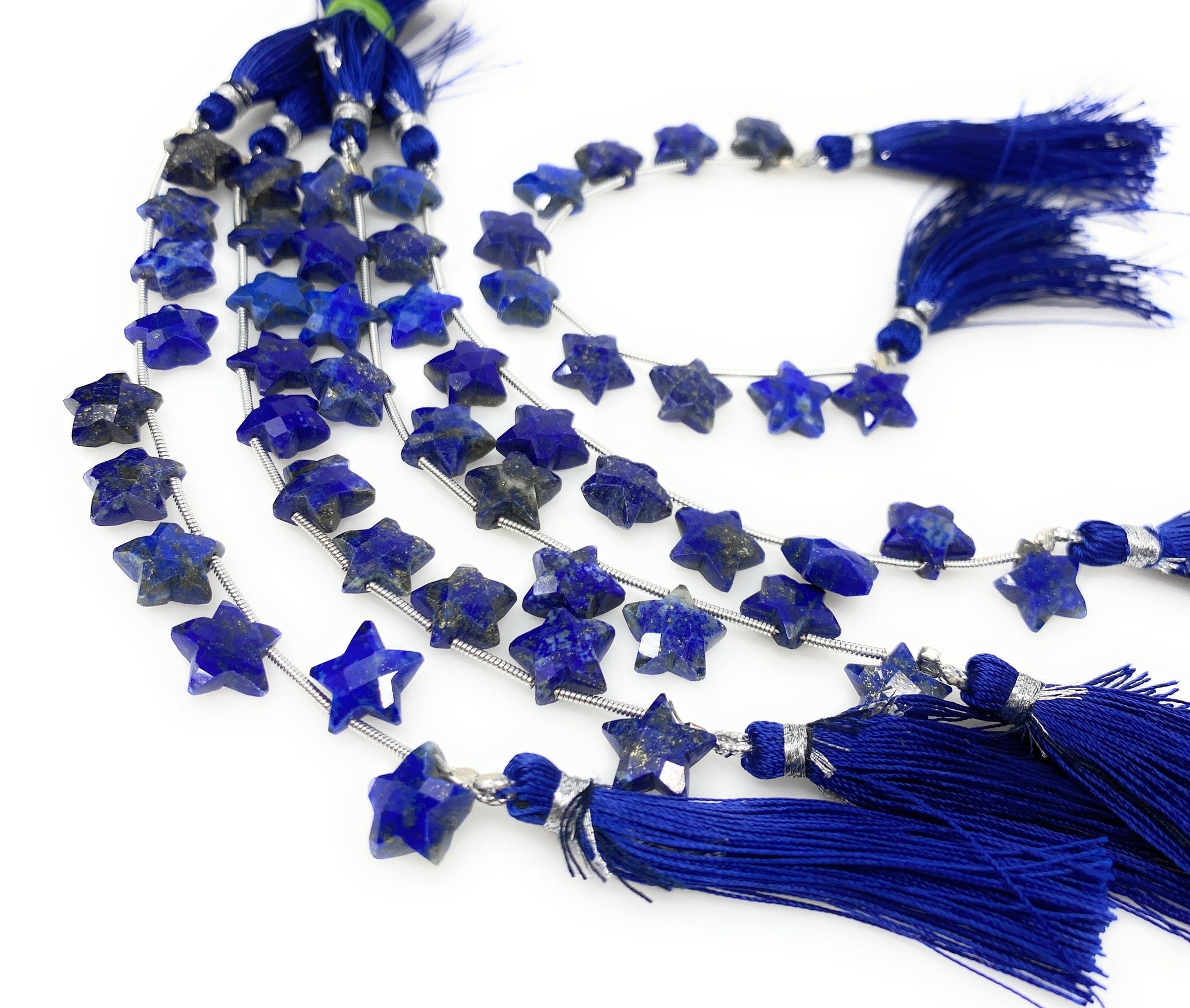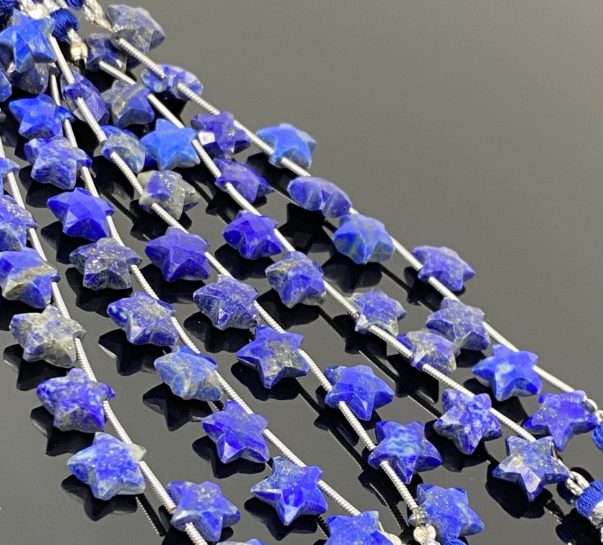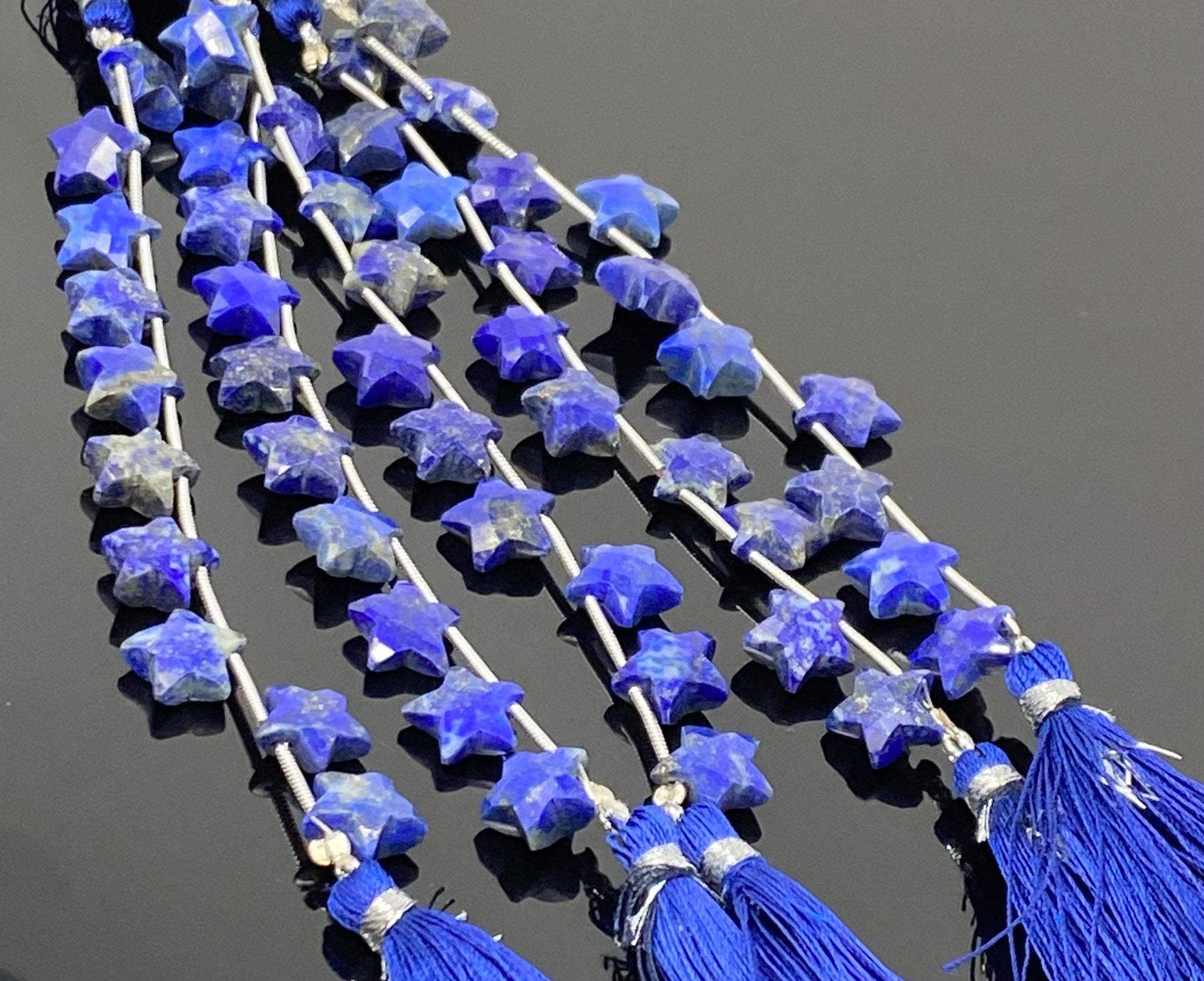 Natural Lapis Lazuli Gemstone Beads, Hand Carved Star Beads, Jewelry Supplies, Wholesale Bulk Beads, 5” Strand/ 10 Beads, 10.5mm