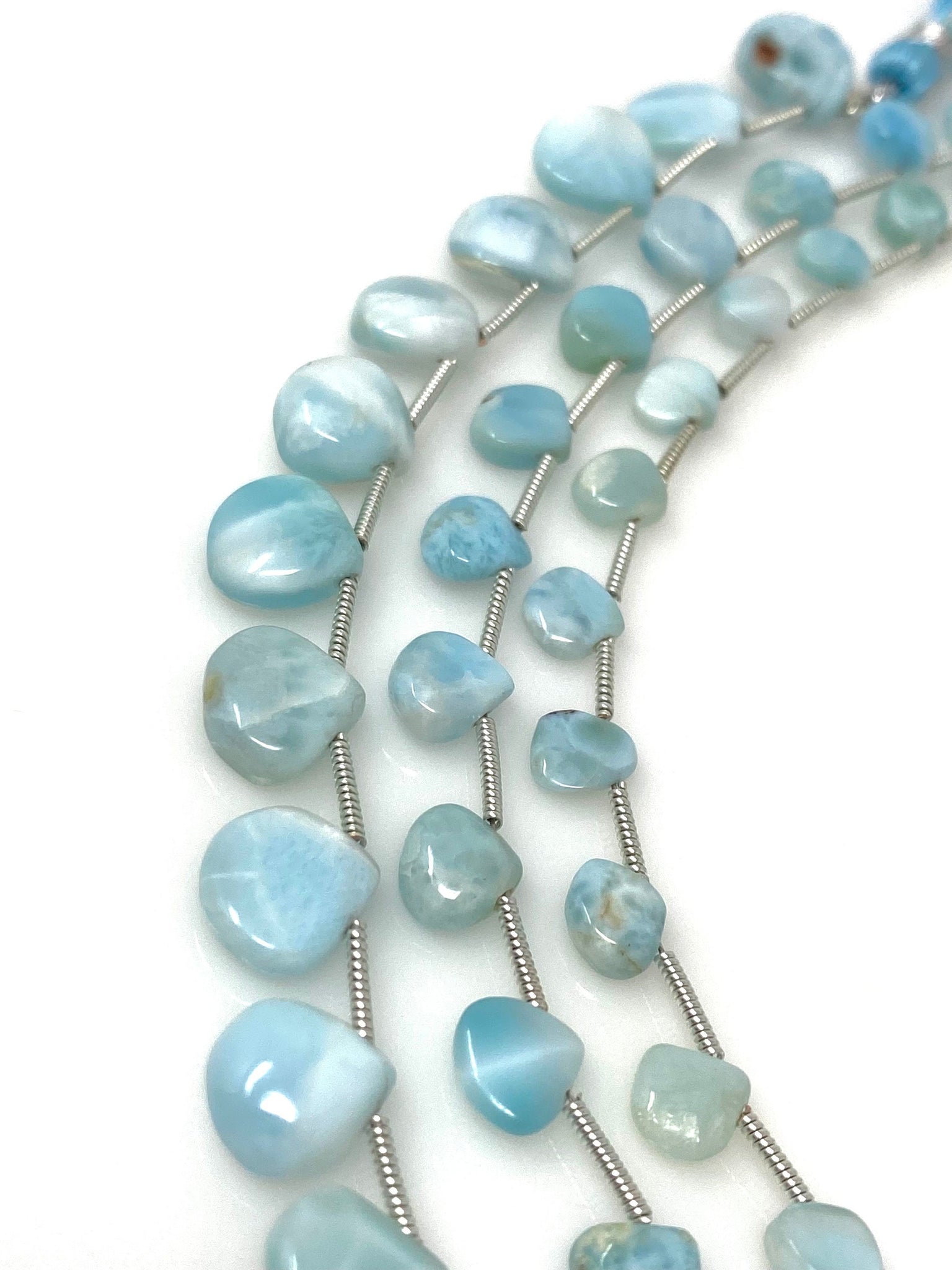 These Beautiful 100% Natural, Genuine and Untreated Larimar Beads are great for making layered Necklace or can be used for bracelets or Beaded Earrings. These can be used in multiple ways to bring out the creativity of the maker.