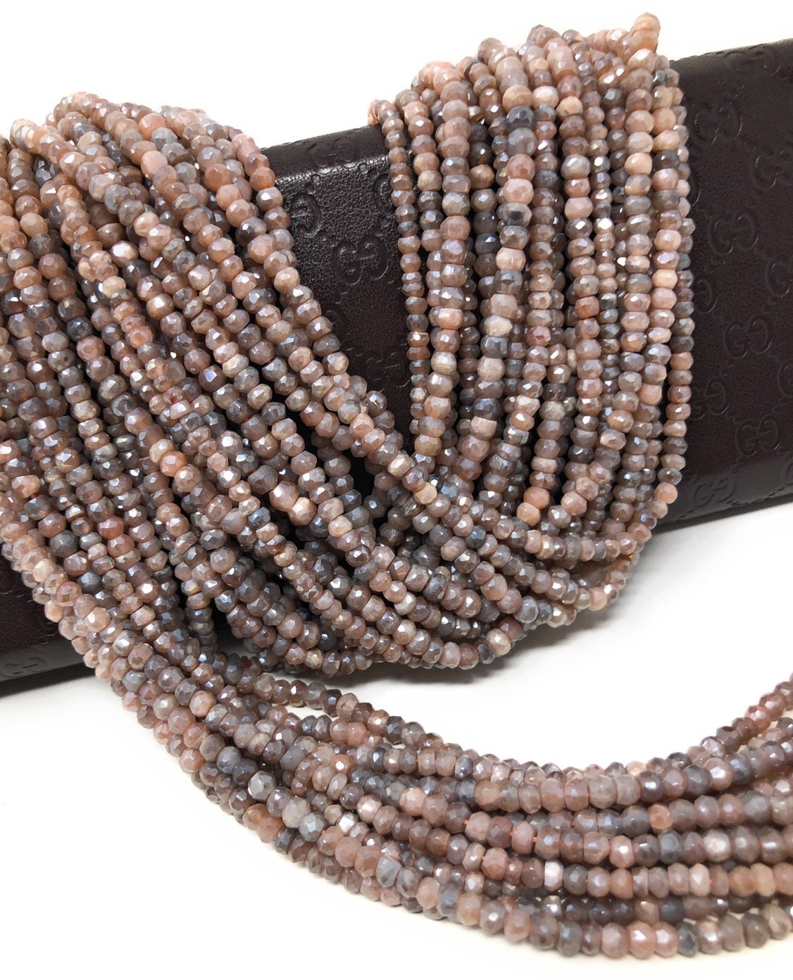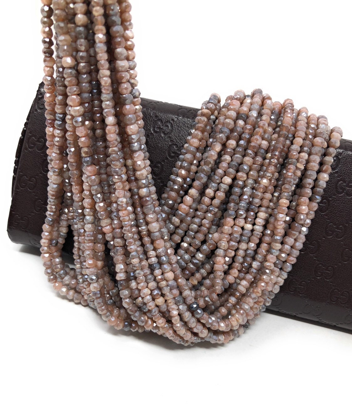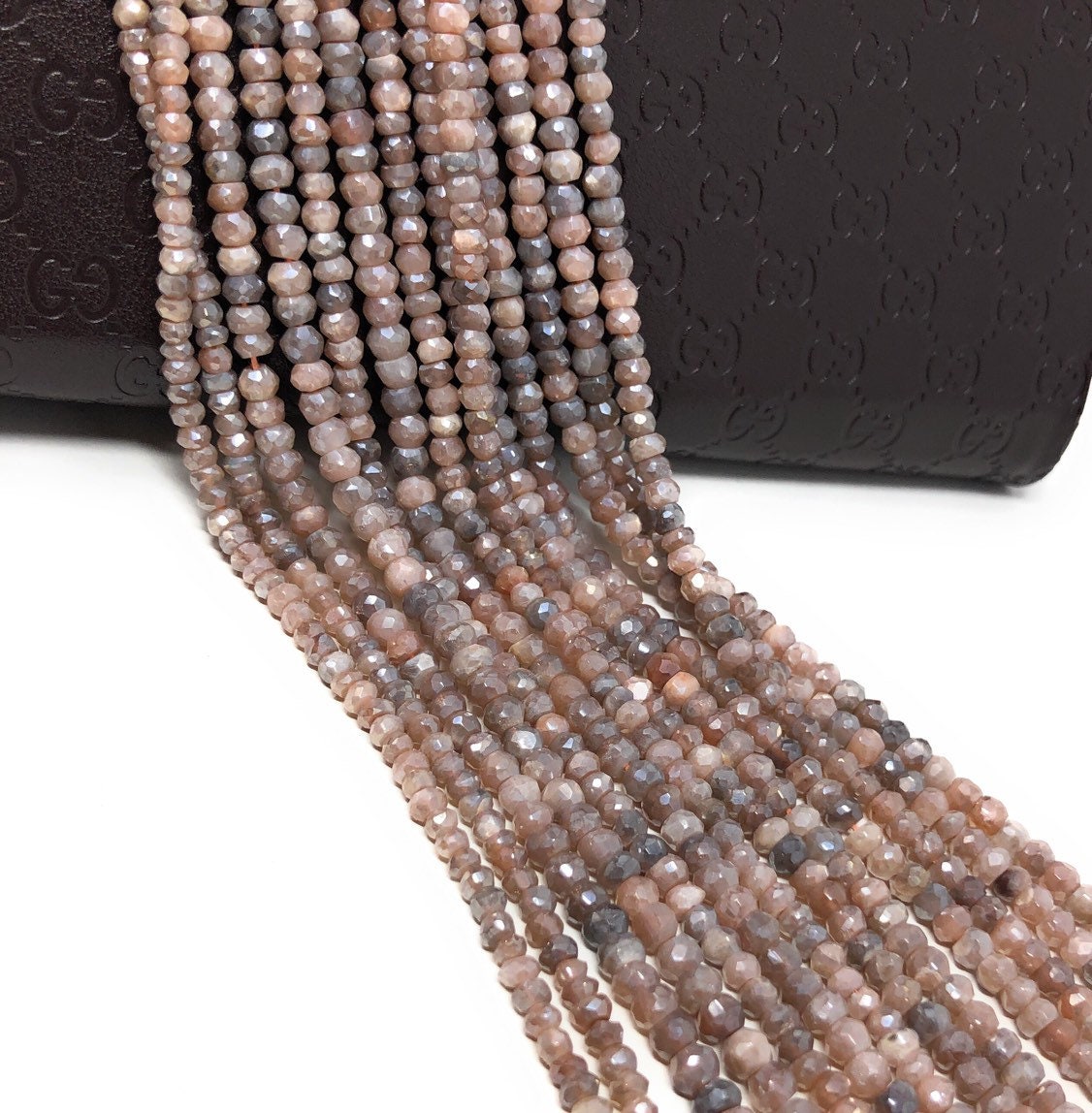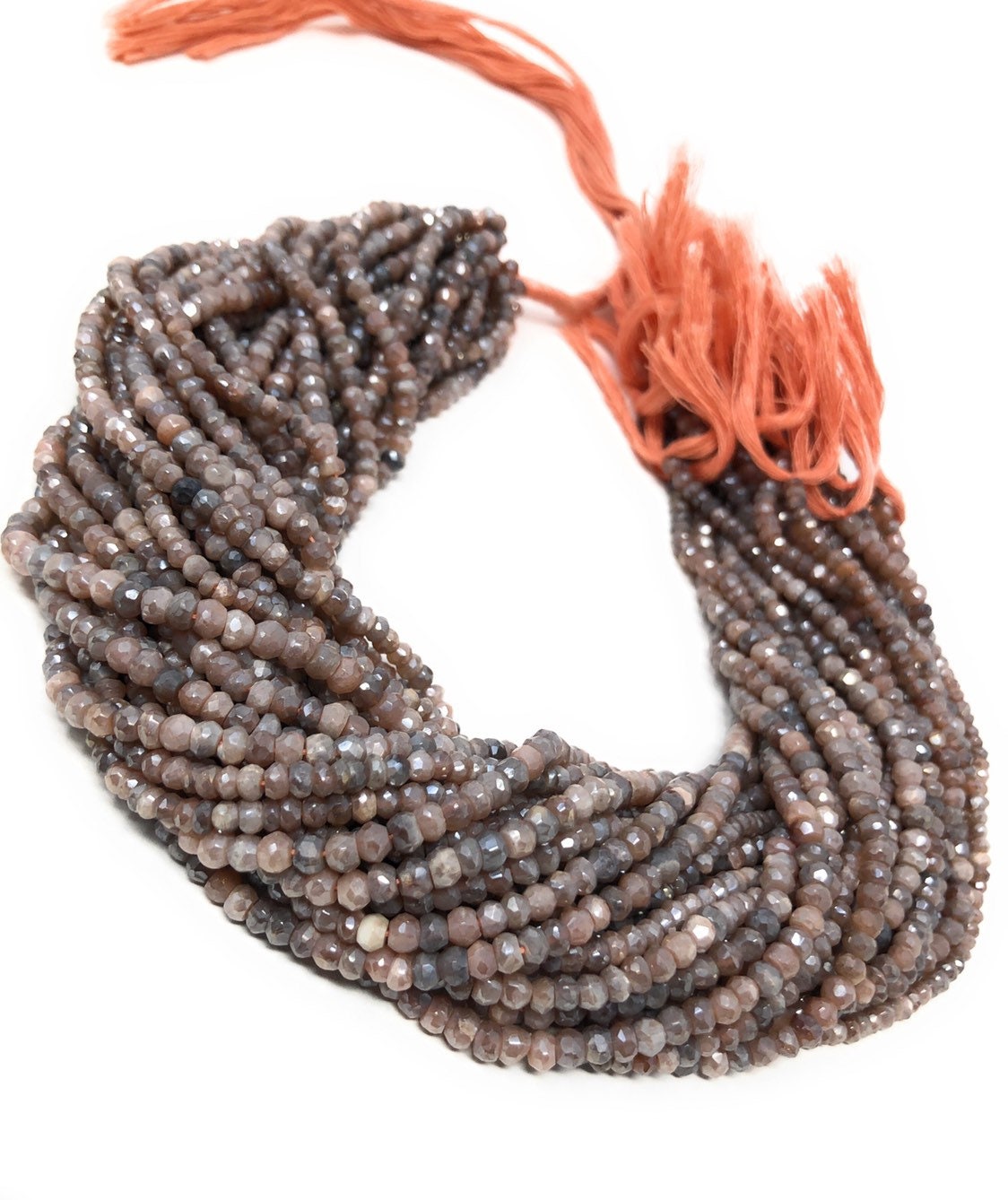 Natural Peach Moonstone Shimmer Coated Faceted Rondelle Beads Jewelry Supplies for Jewelry Making at Wholesale Price.