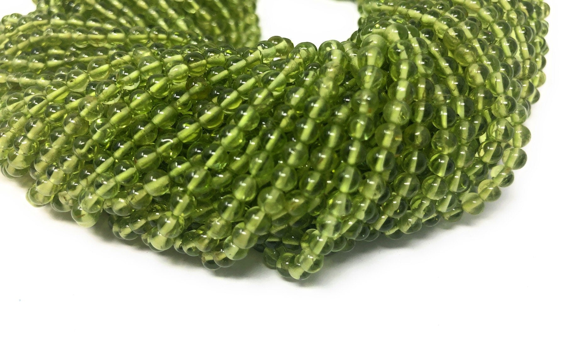 Natural Peridot Smooth Gemstone Beads, Genuine Gemstone Wholesale Beads, Bulk Beads for Jewelry Making, 4mm Beads, 13.75" Strand