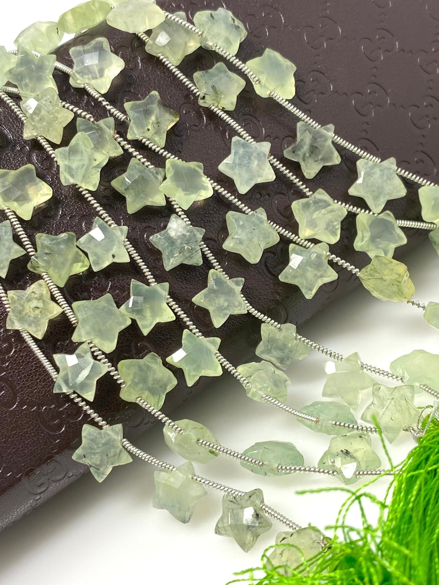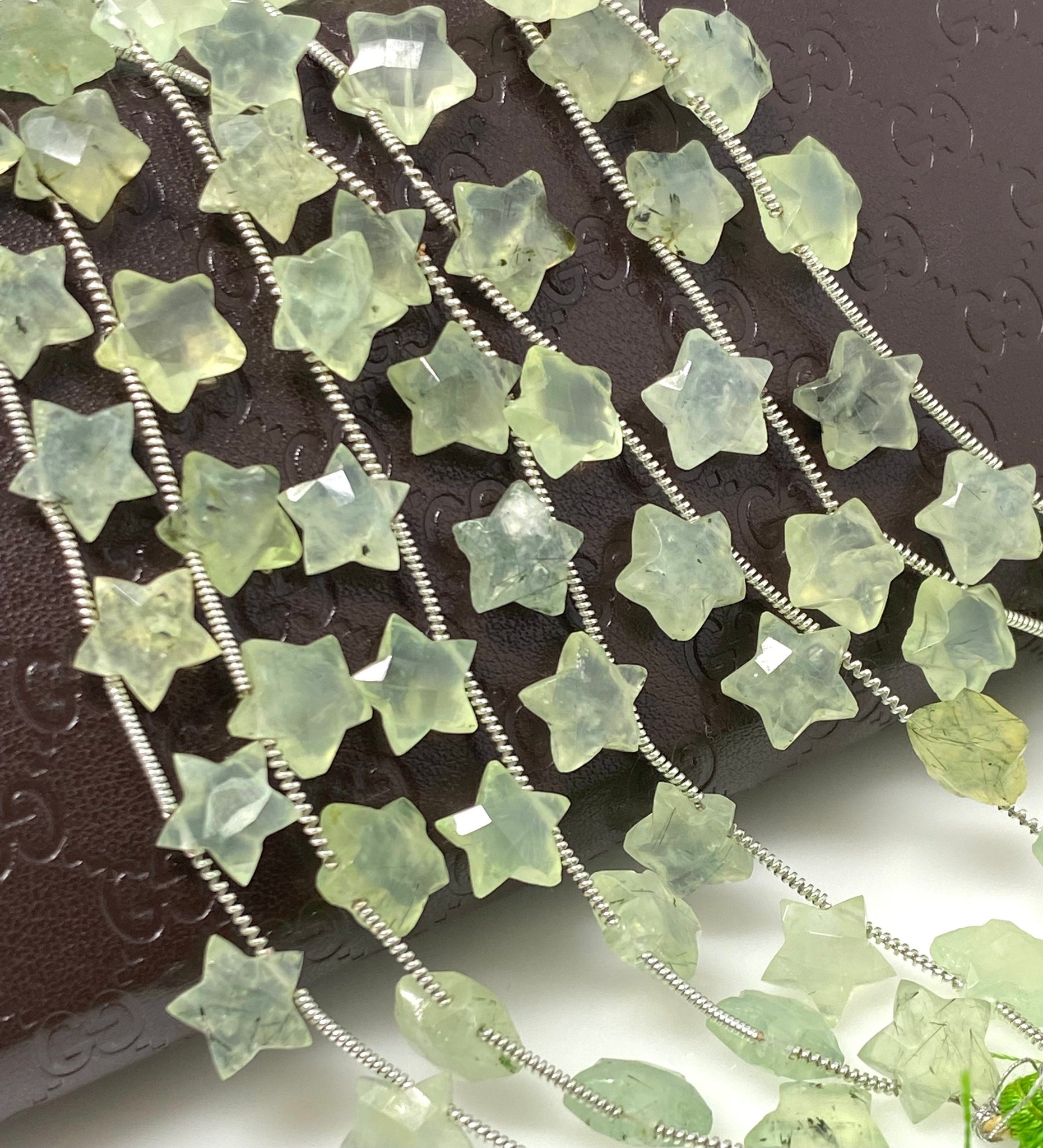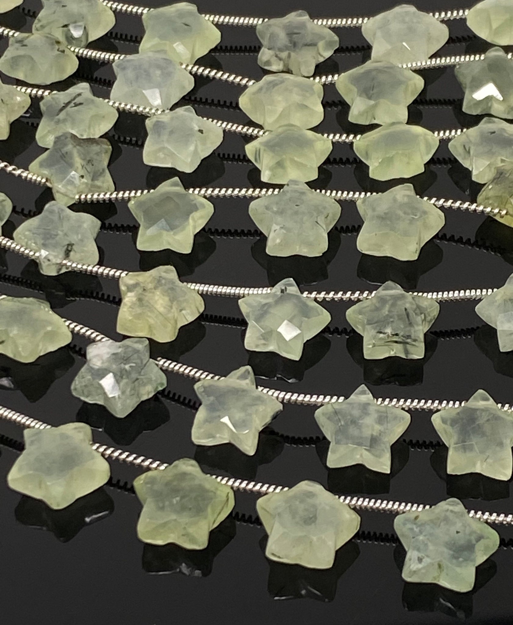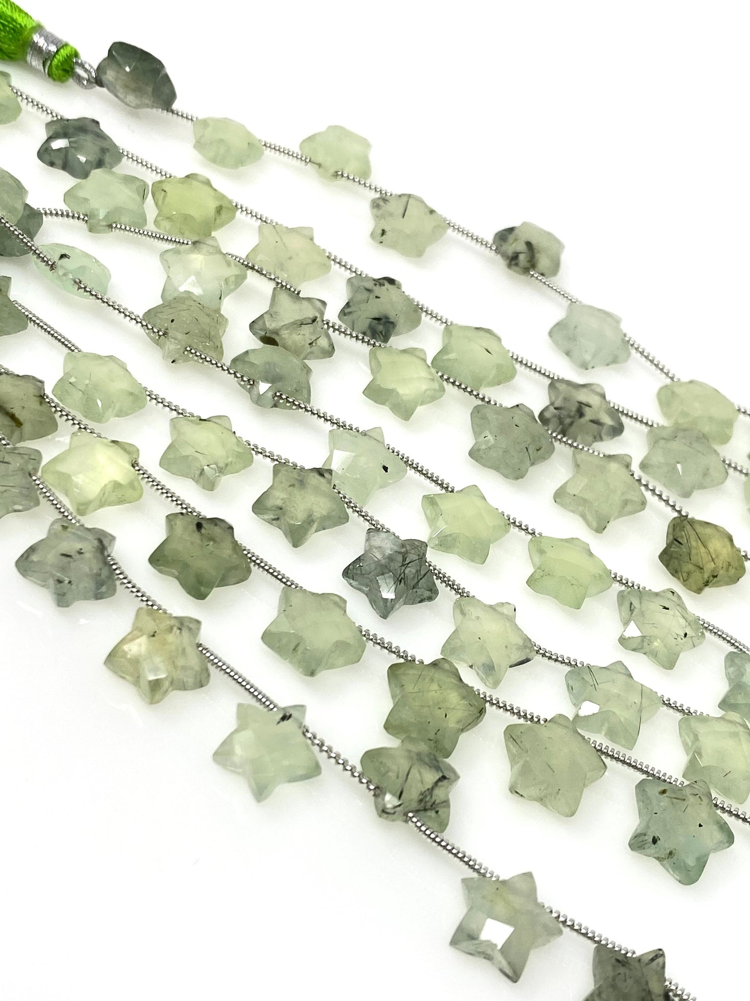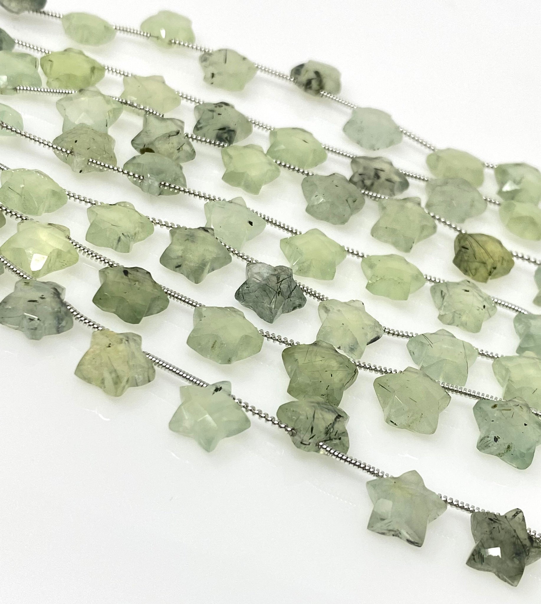 Natural Prehnite Beads, Gemstone Star Beads, Bulk Wholesale Beads, Jewelry Supplies, 10mm - 10.5mm, 5” Strand/ 10 Beads