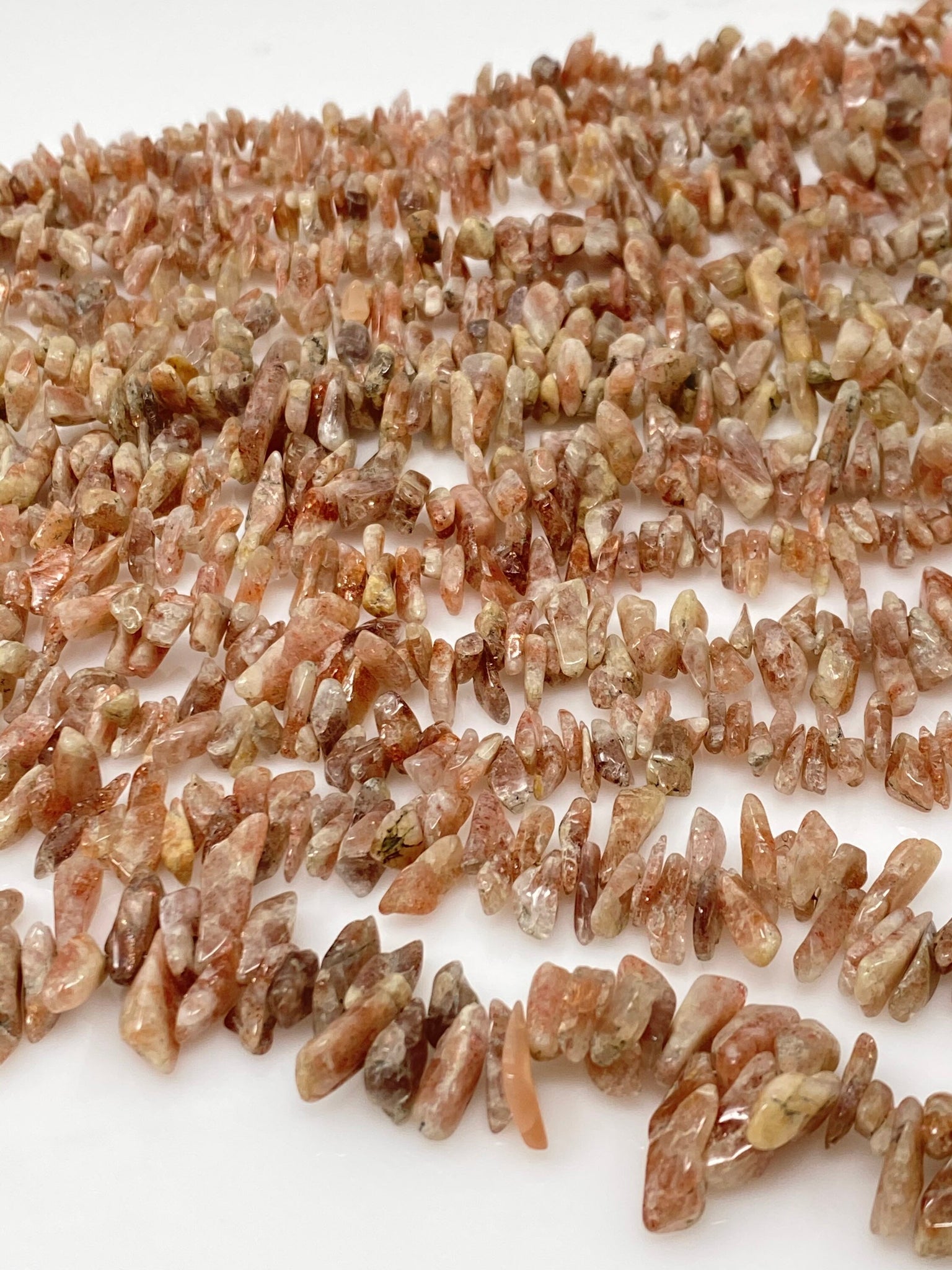 Natural Sunstone Beads - Rough Polished, Gemstone Beads, Jewelry Supplies for Jewelry Making, Wholesale Beads, Bulk Beads, 8" Strand