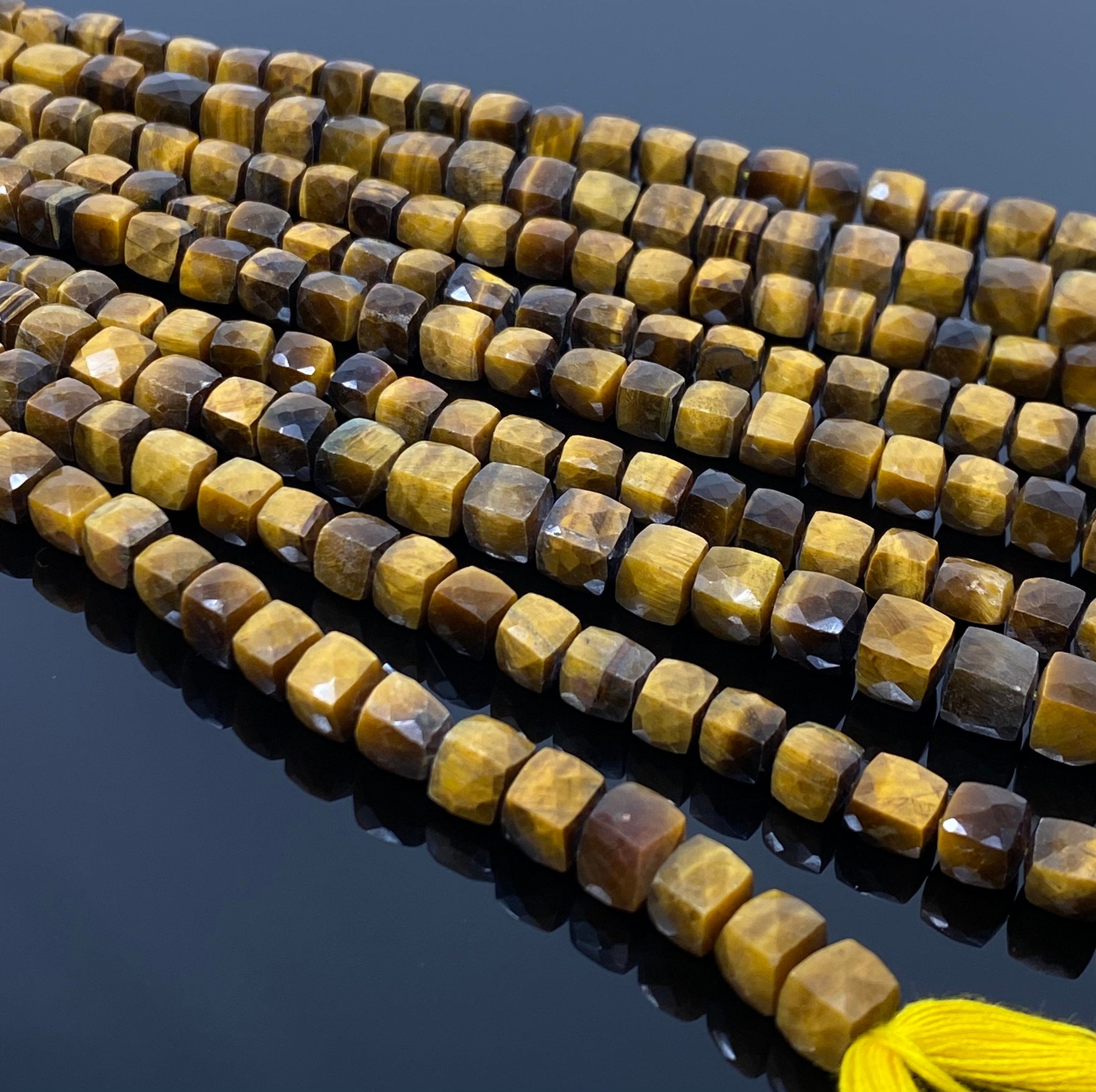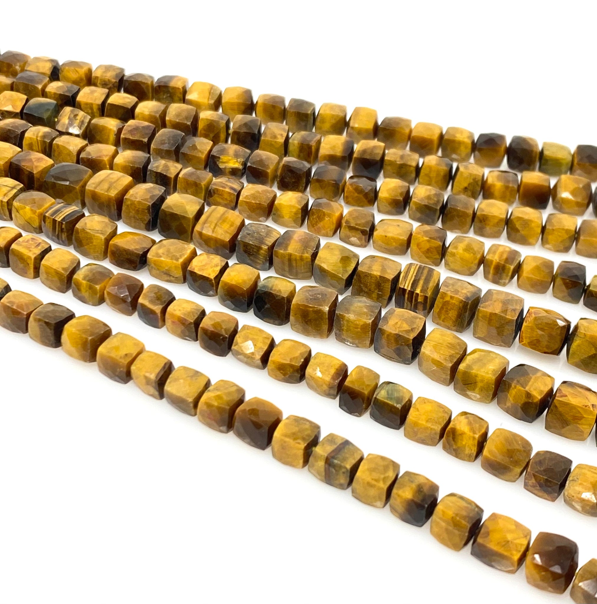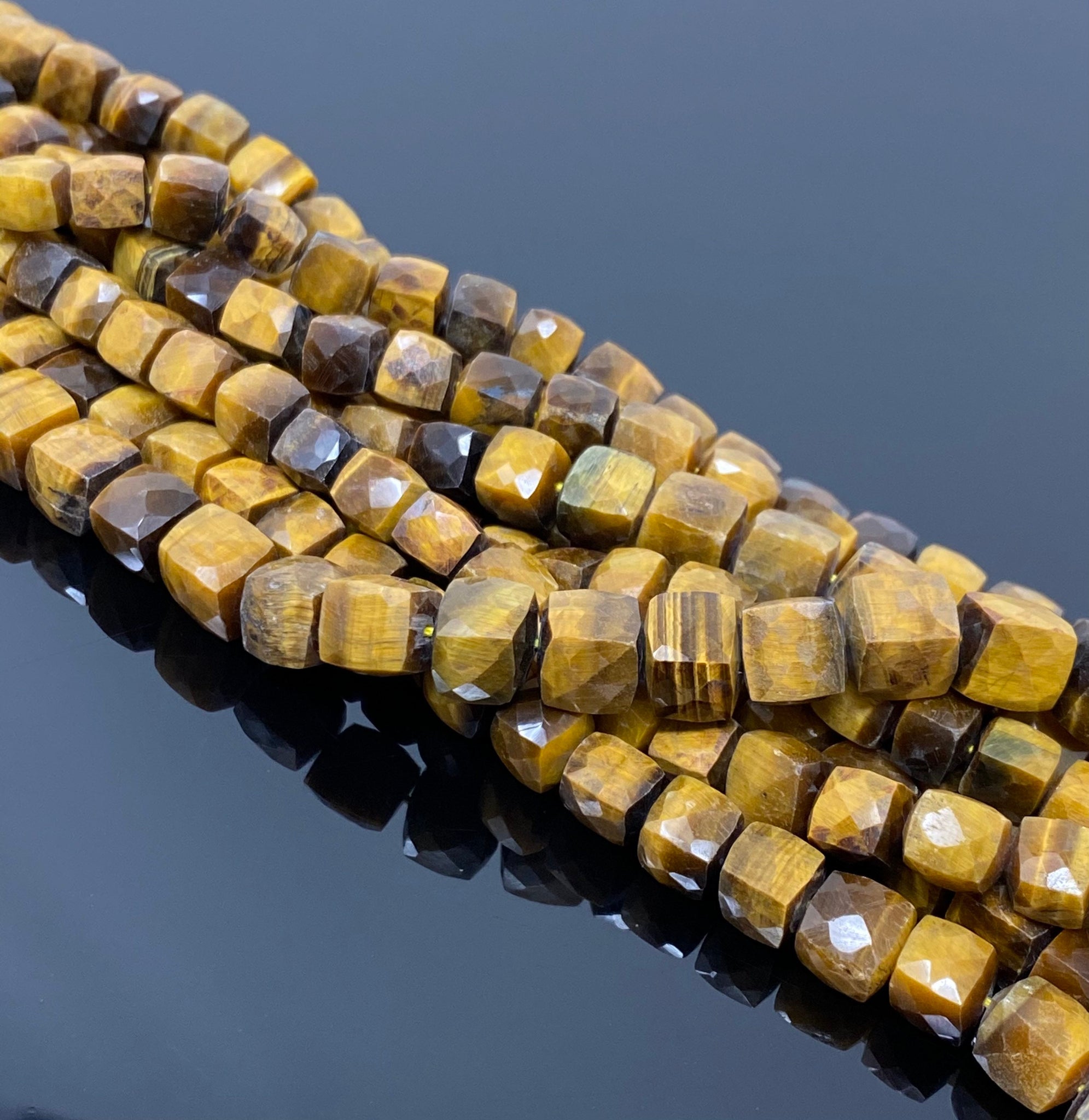 Natural Tiger Eye Gemstone Beads, Tigers Eye Faceted 3D Cube Box Beads, Bulk Wholesale Beads, Jewelry Supplies, 9" Strand