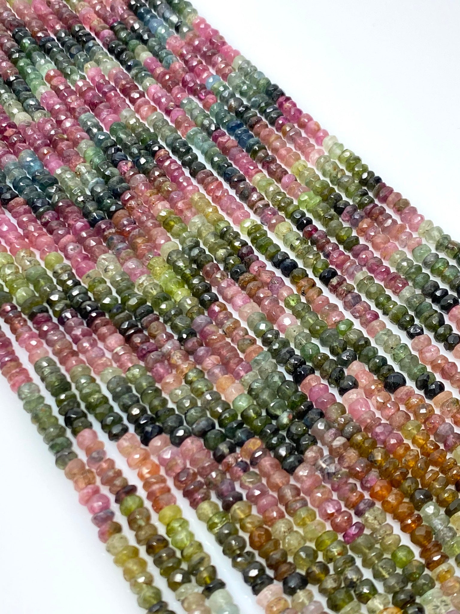 Natural Watermelon Multi Tourmaline Beads, Bulk Wholesale Gemstone Beads, Faceted Tourmaline Beads,AA+ Quality, 13.5" Strand