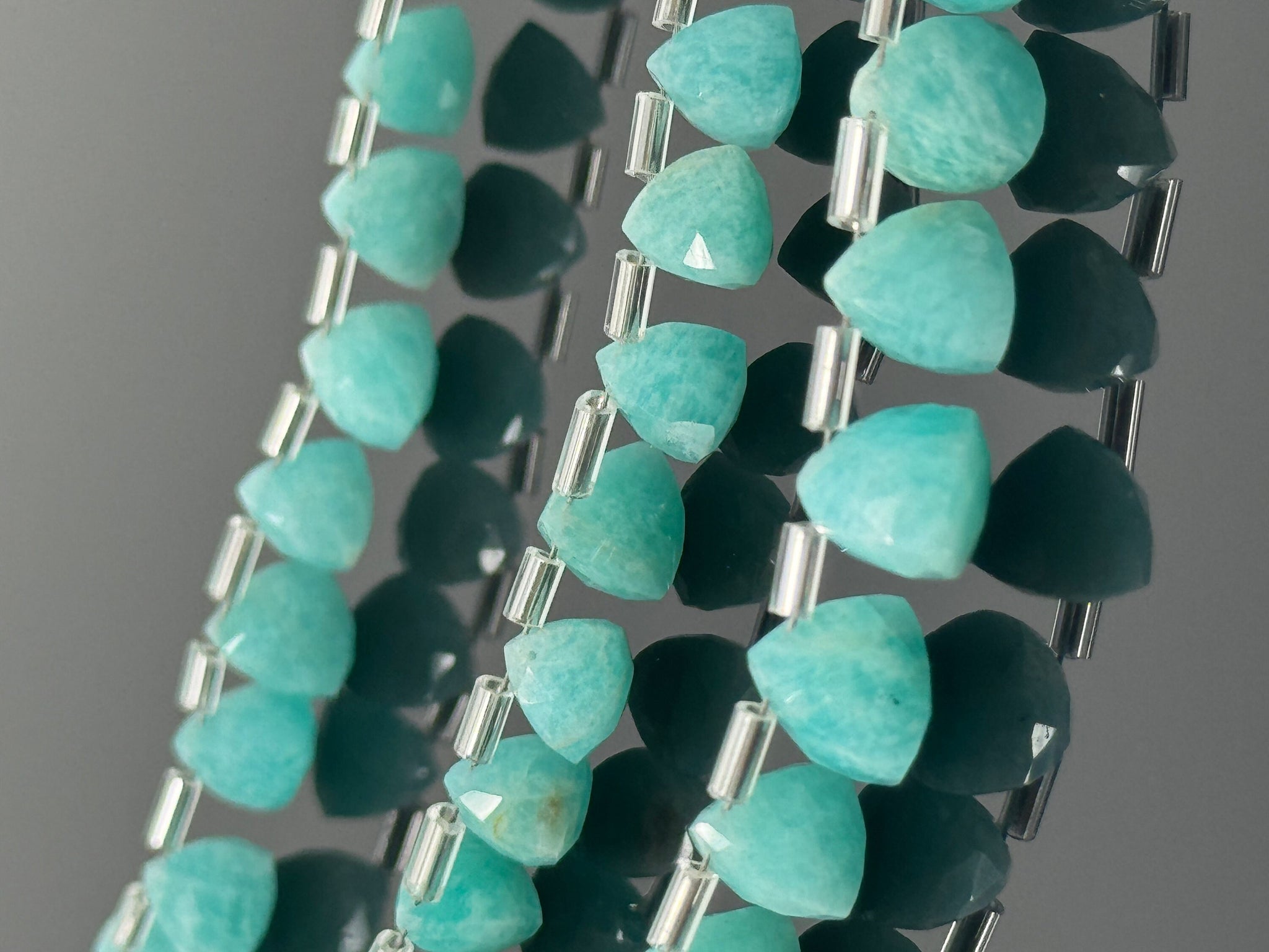 Peruvian Amazonite Trillion Shape Briolette Gemstone Beads, Wholesale Bulk Beads, Jewelry Supplies for DIY Jewelry, 8mm-9mm, 8.5" Strand
