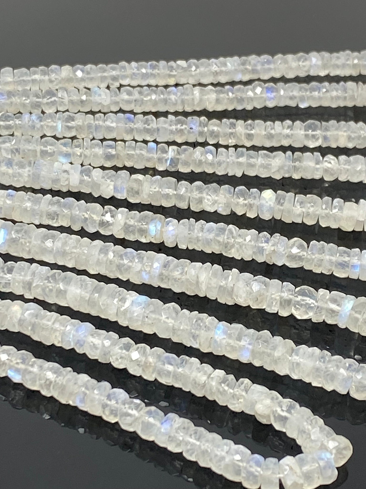 Rainbow Moonstone Heishi Beads, Blue Flash Rainbow Moonstone Gemstone Faceted Tyre Beads, Jewelry Supplies, Wholesale Bulk Beads, 16” Strand