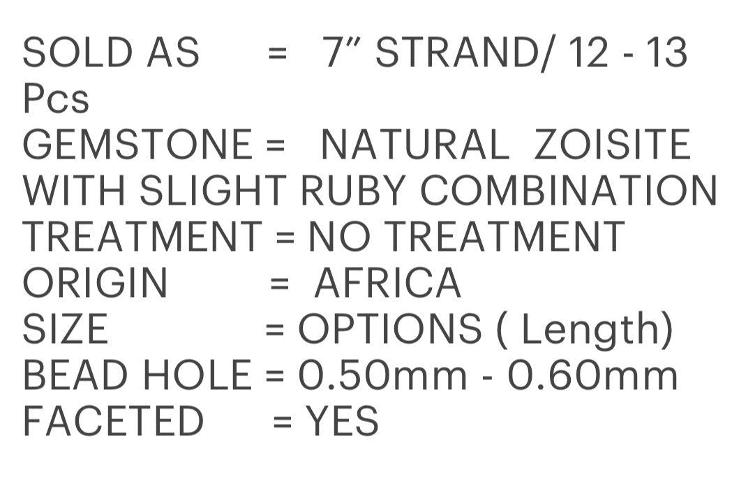 Rare Zoisite with Ruby Gemstone Beads, Wholesale Bulk Beads, Jewelry Supplies, 7” Strand/ 12 Pcs- 13 Pcs