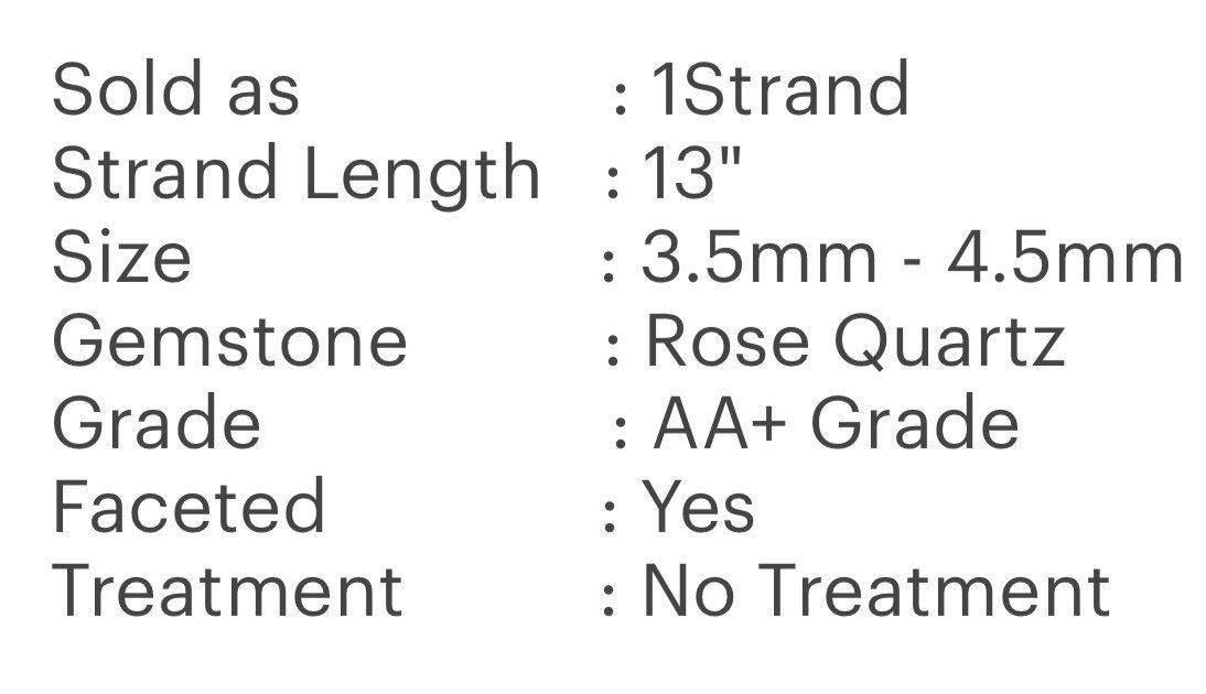 Rose Quartz Gemston Beads, Jewelry Supplies for Jewelry Making, Wholesale Supplies, Bulk Beads, 3.5- 4.5mm , 13" Strand