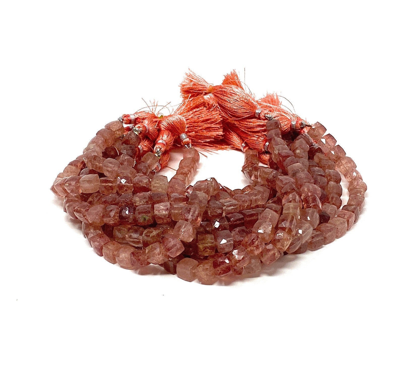 Natural Strawberry Quartz Gemstone Faceted Cube Shape Beads Jewelry Supplies for Jewelry Making at Wholesale Price.