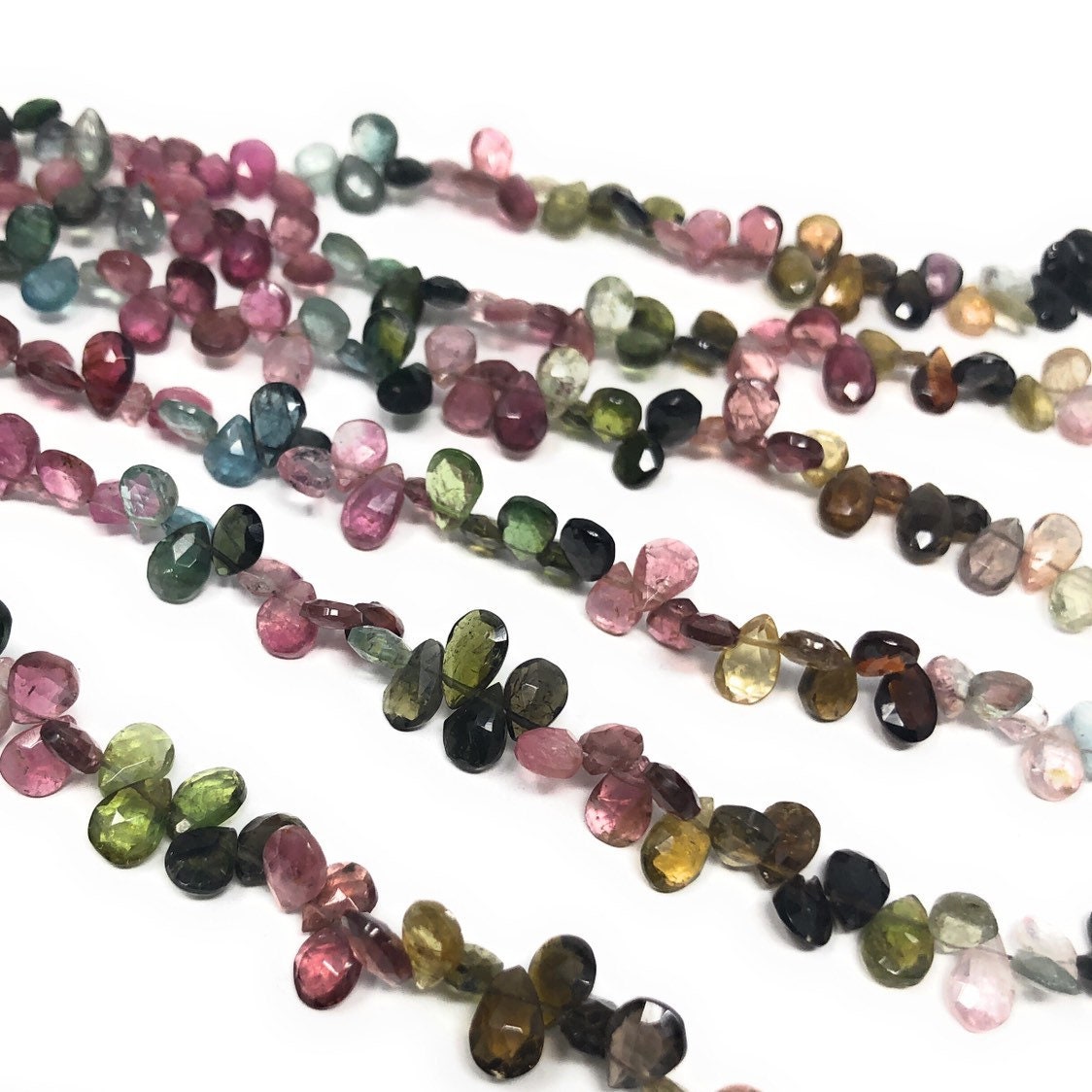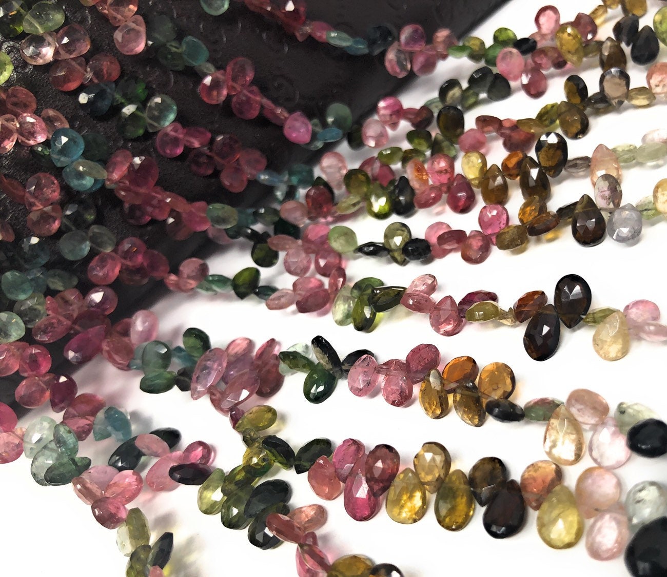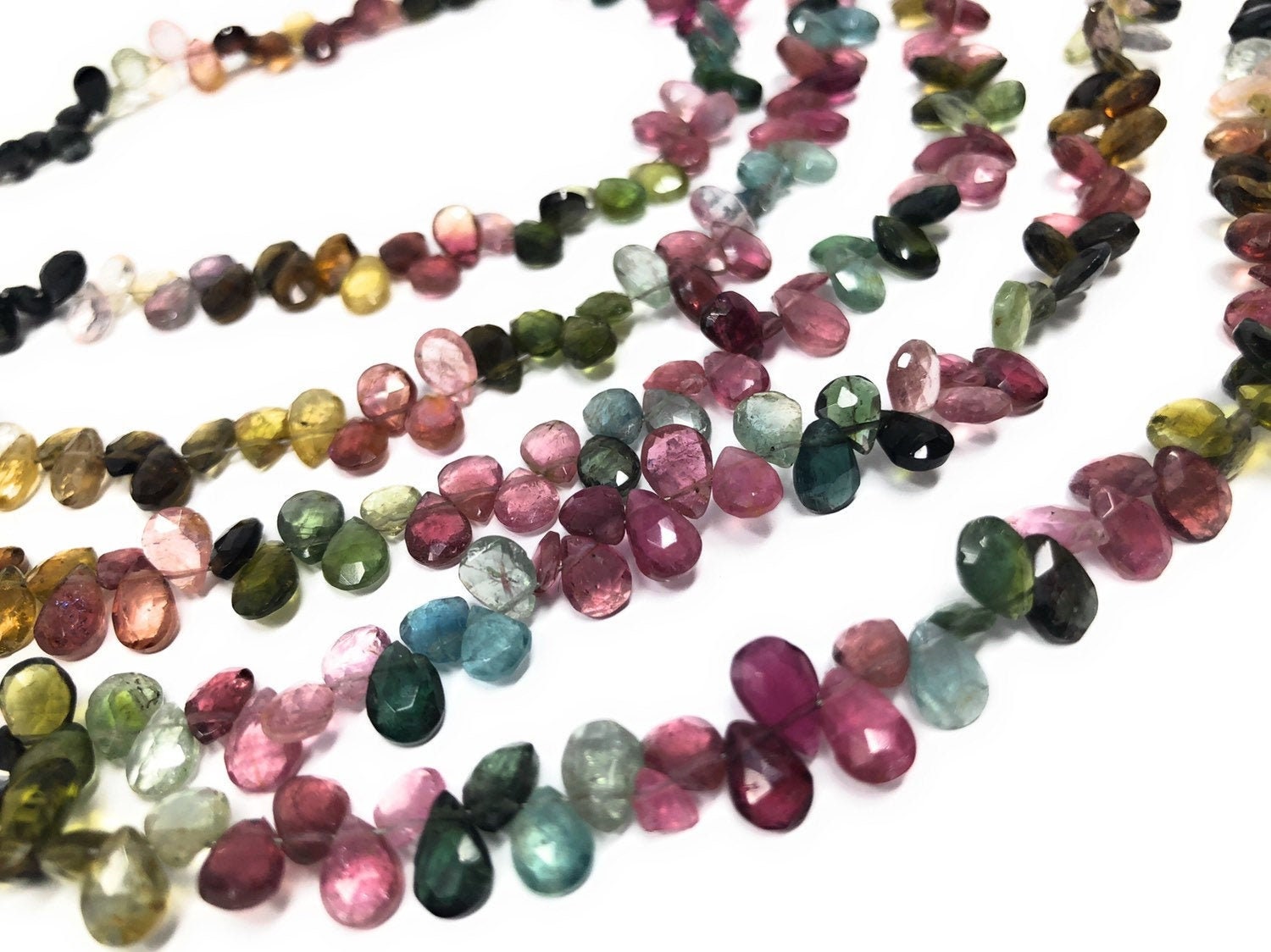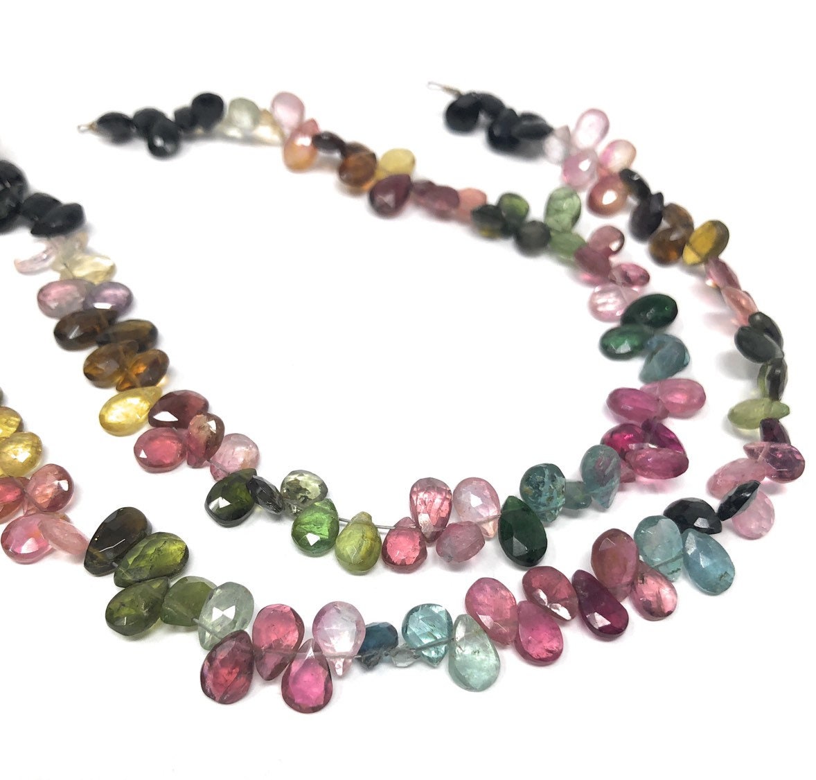 Tourmaline Beads, Gemstone Beads, Multi Tourmaline Faceted Drop Beads, Jewelry Supplies, Wholesale Bulk Beads, 6x5mm - 8x6mm, 8.5" Strand