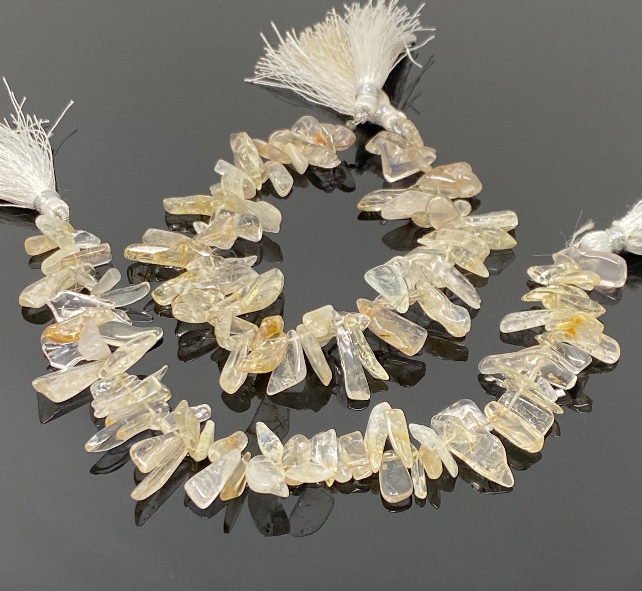 These Beautiful Natural Rough Polished Yellow Rutile Beads are an excellent choice for making exclusive pieces of Jewelry.