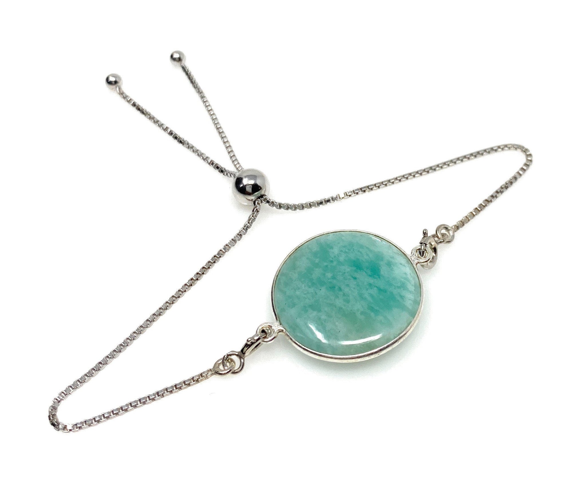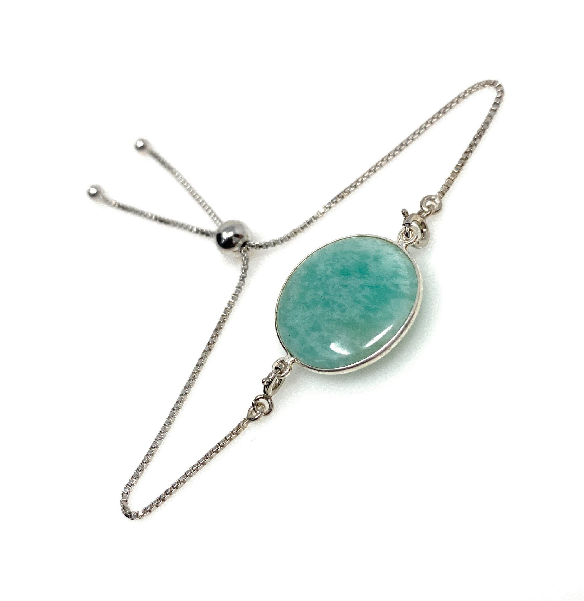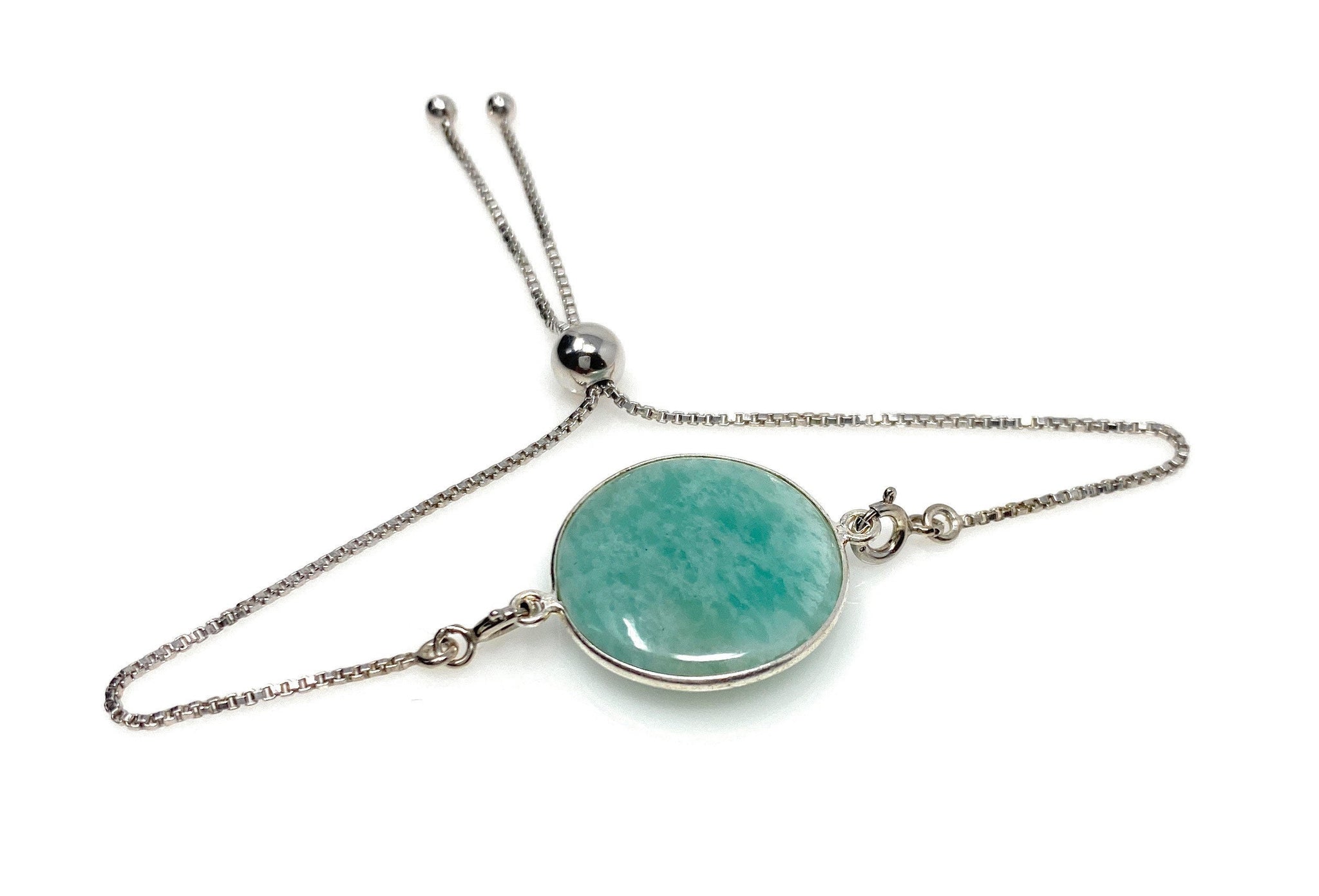 Amazonite Gemstone Bracelet, Sterling Silver Adjustable Bolo Bracelet, AAA Quality Peruvian Amazonite Bracelet, Gifts for Her