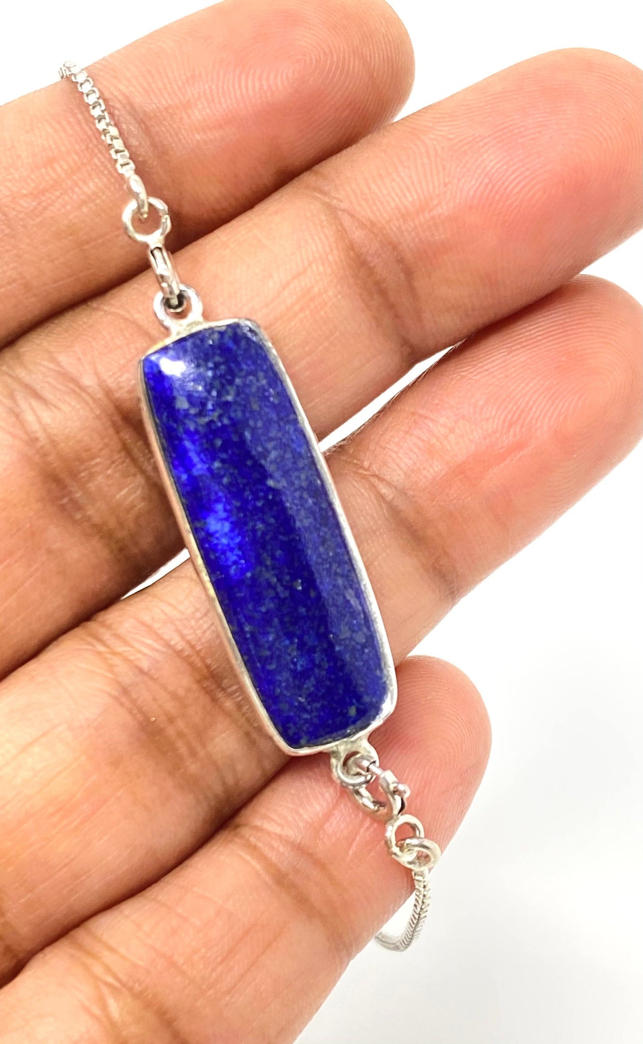 This beautiful Handmade AAA Grade Natural Lapis Lazuli Gemstone Bar Shape 925 Sterling Silver Adjustable Bracelet is an excellent choice for any occasion and makes a great gift for the loved ones.