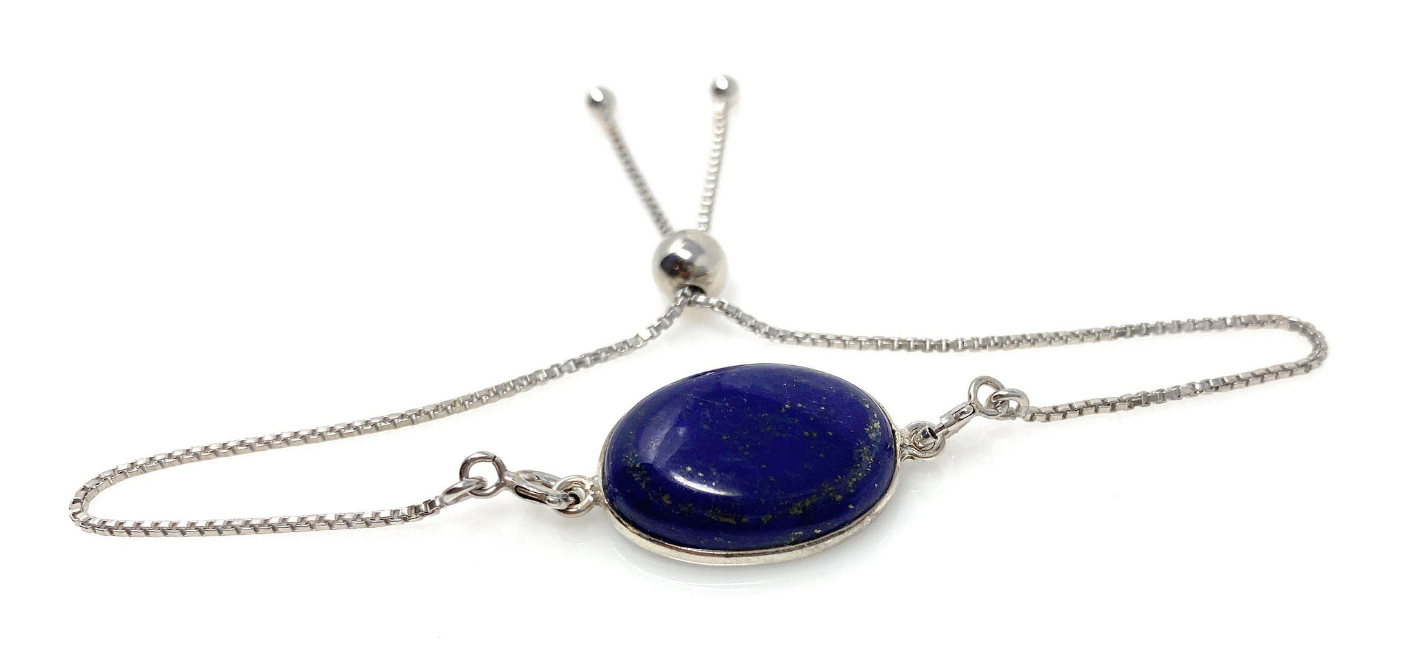 This beautiful Handmade AAA Grade Natural Lapis Lazuli Gemstone Oval Shape 925 Sterling Silver Adjustable Bracelet is an excellent choice for any occasion and makes a great gift for the loved ones.