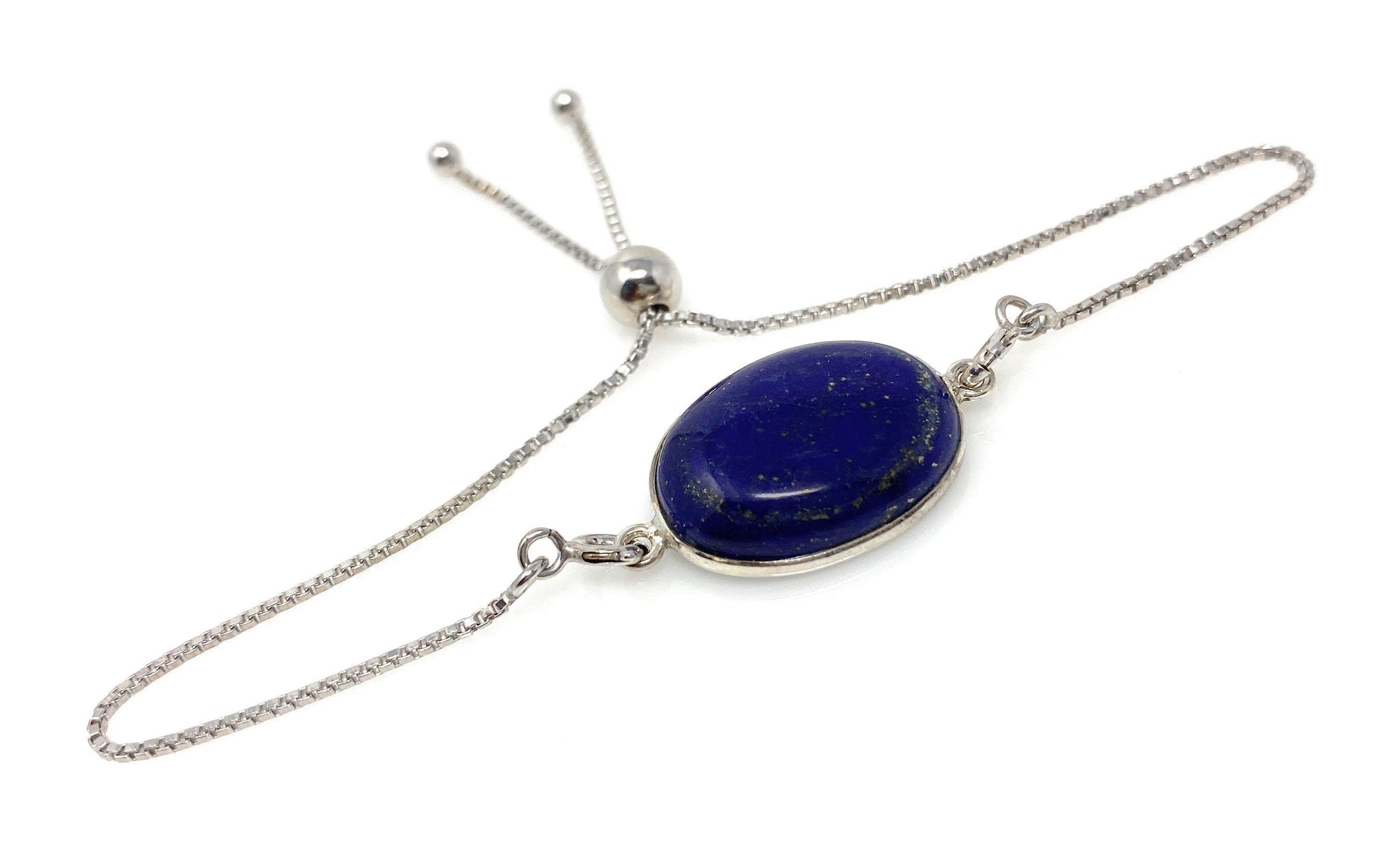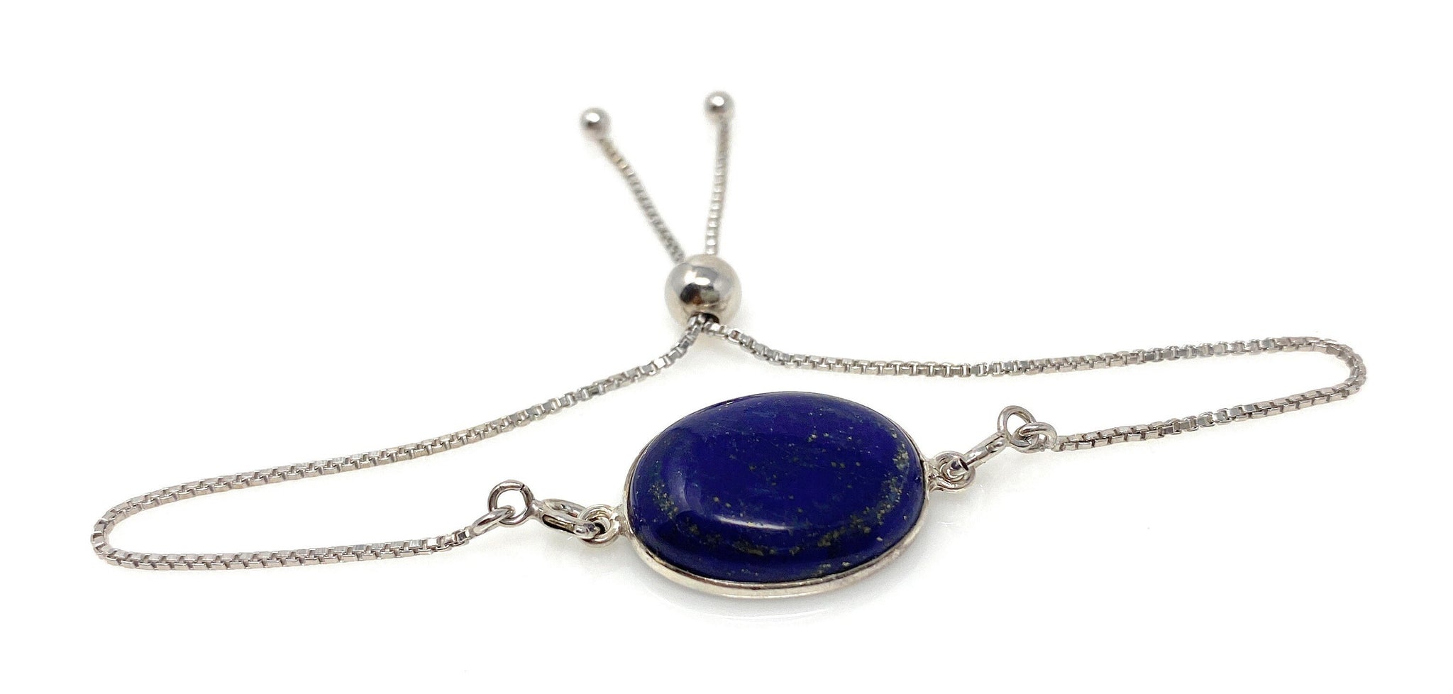 Lapis Lazuli Gemstone Sterling Silver Adjustable Bracelet Jewelry at Wholesale Price.