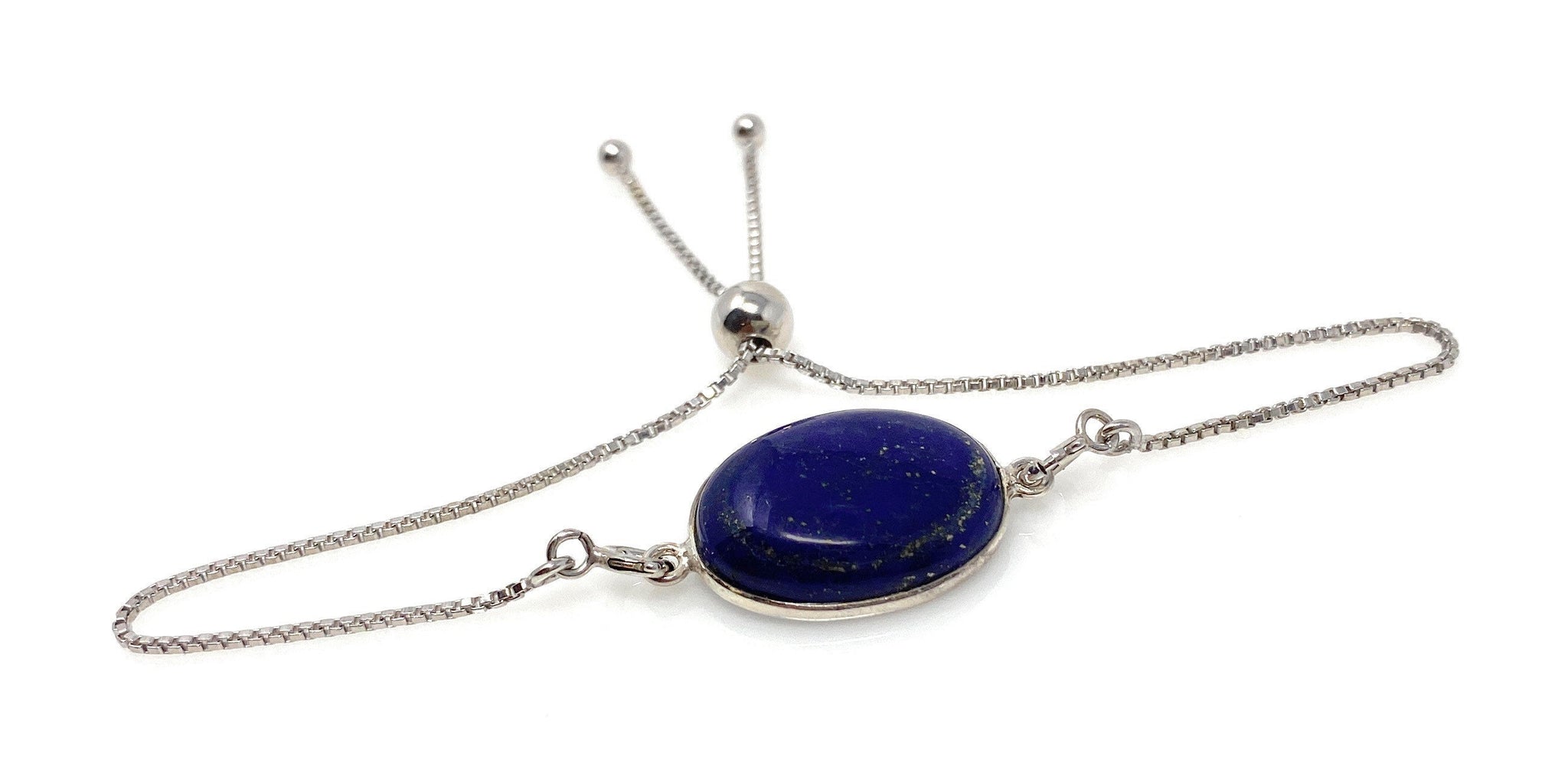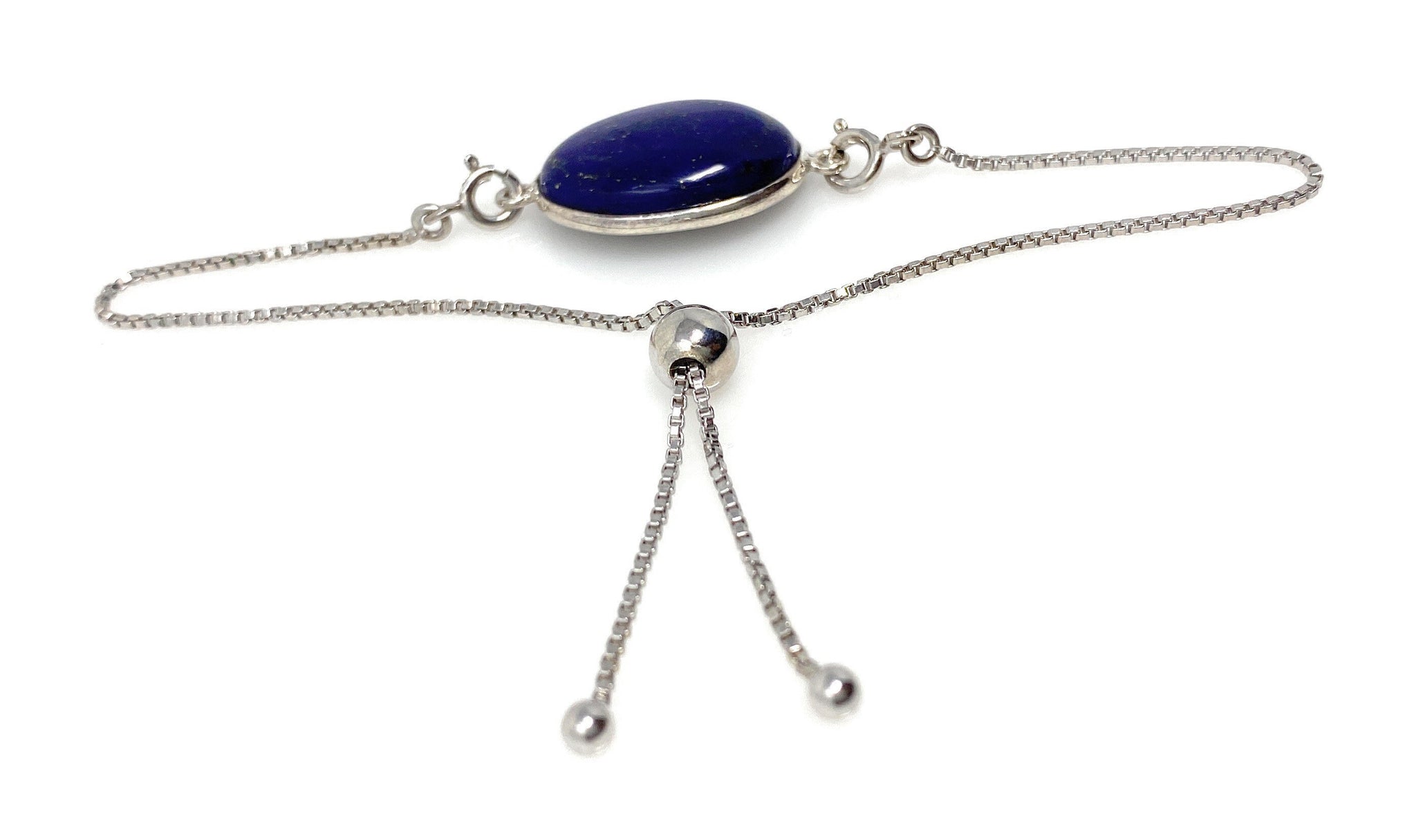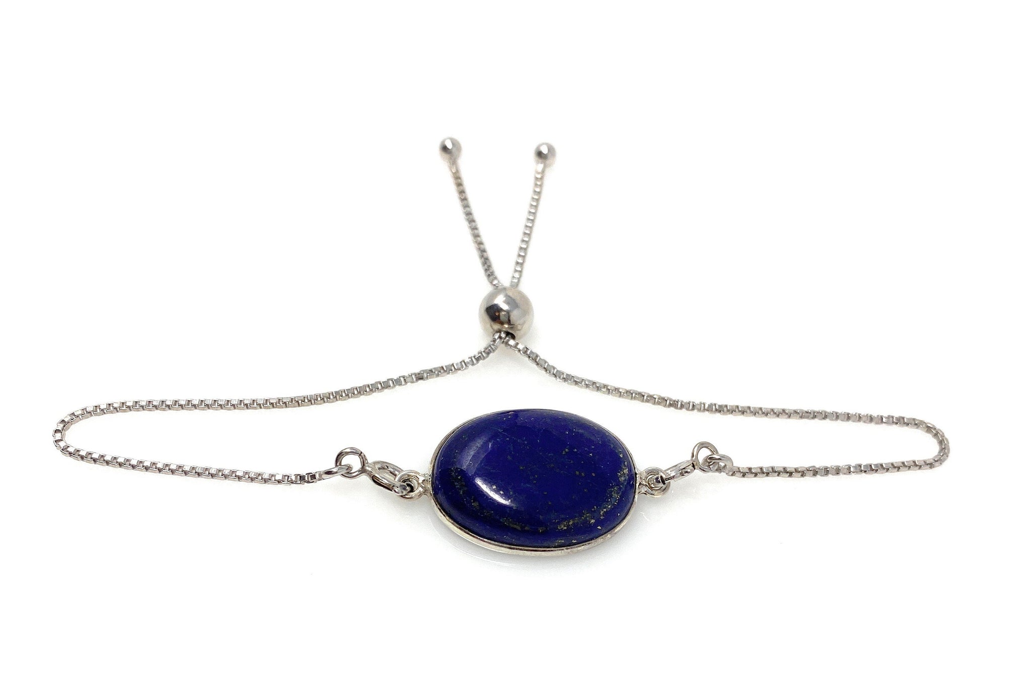 Lapis Lazuli Gemstone Bracelet, Sterling Silver Bolo Bracelet, AAA Quality Lapis Lazuli Bracelet, Gifts for Her