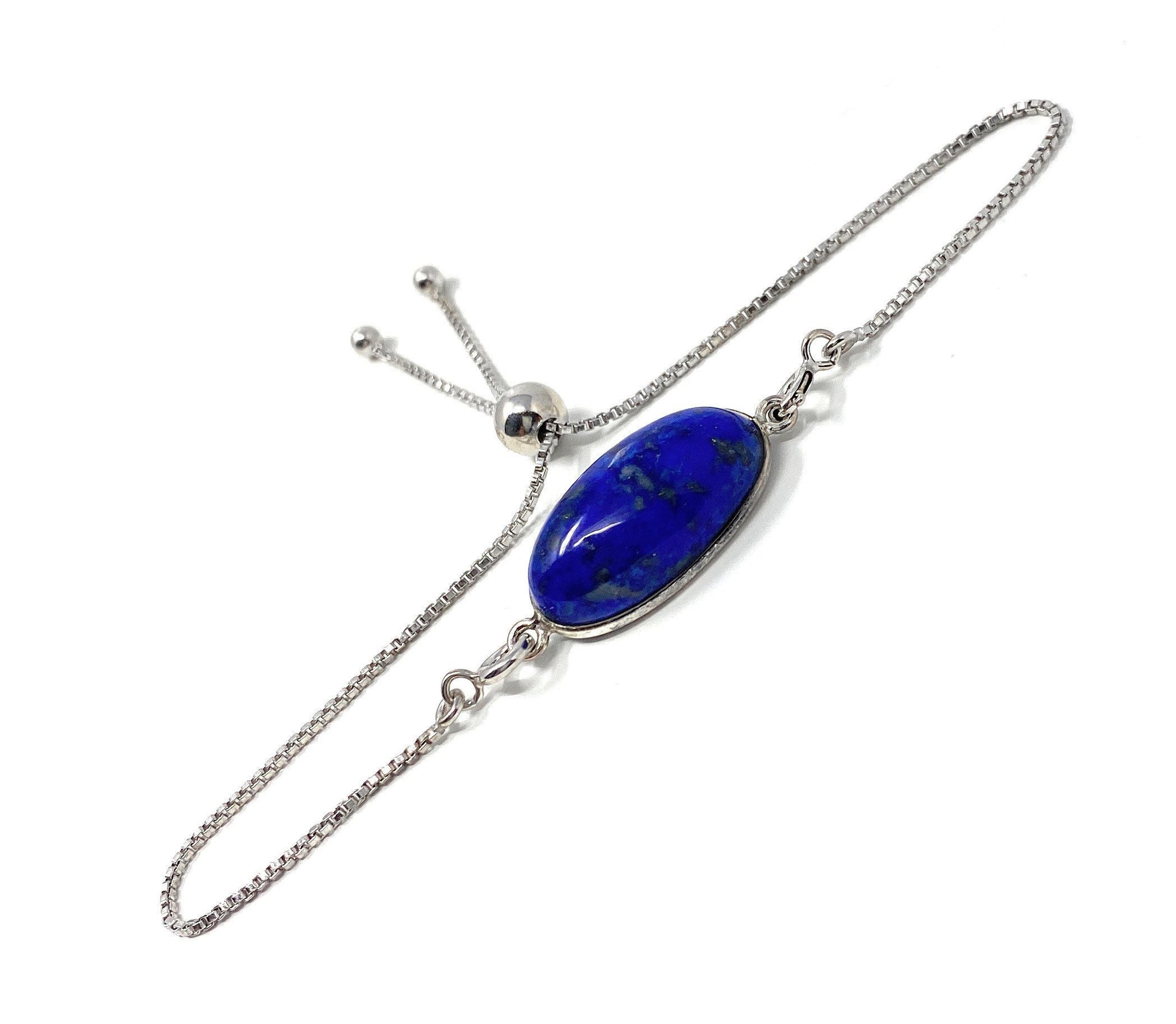 Lapis Lazuli Gemstone Bracelet, Sterling Silver Bolo Bracelet, AAA Quality Lapis Lazuli Bracelet, Gifts for Her